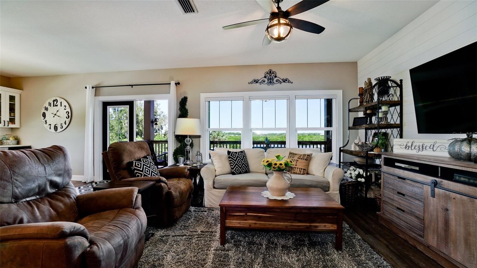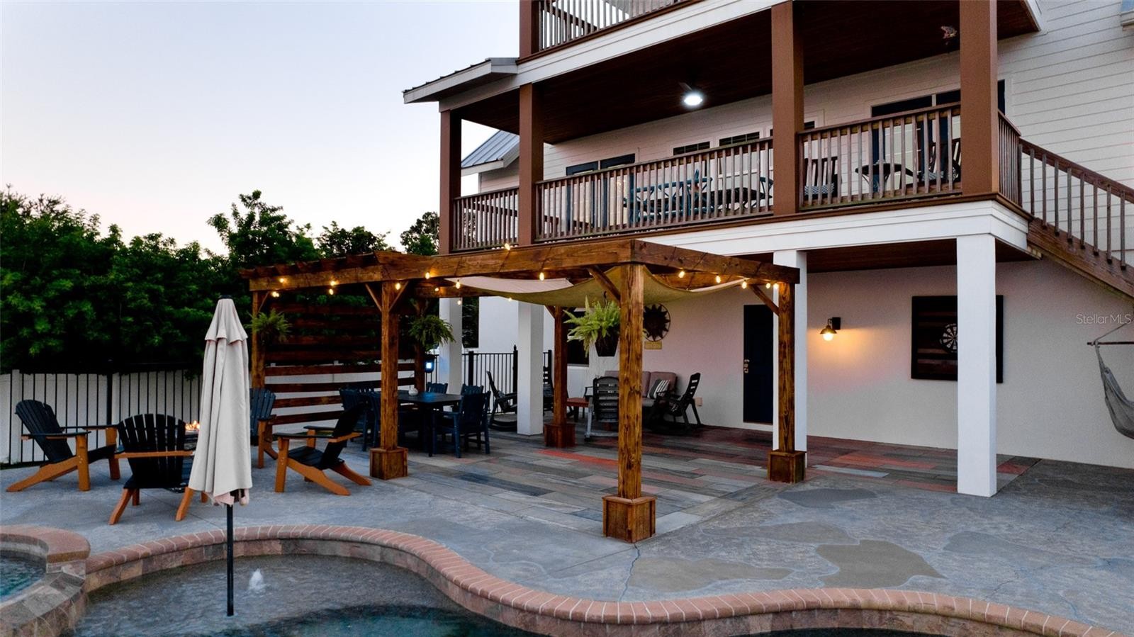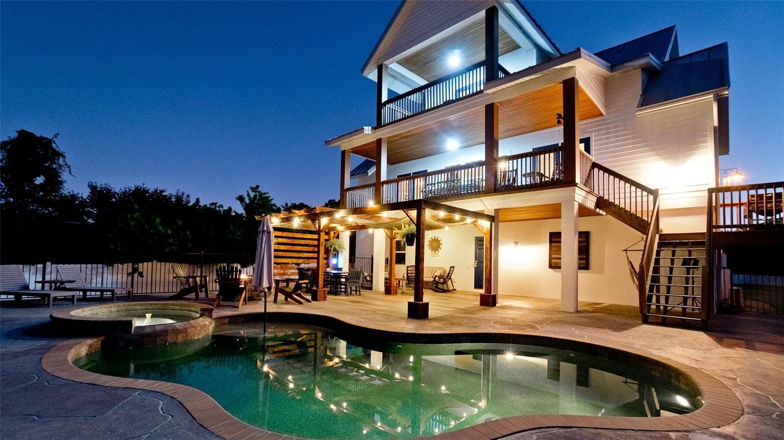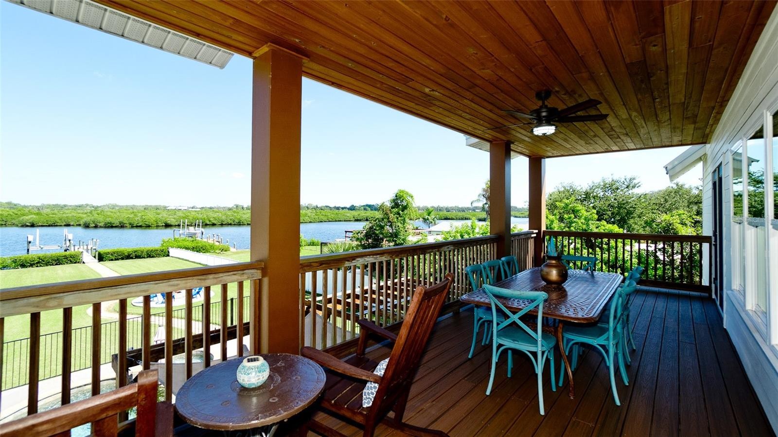 Welcome to this stunning 3-story oasis, perfectly perched on .73 acres, overlooking serene nature islands and offering breathtaking sunrises. This exceptional property features a boat dock with a 10,000-pound lift and a floating jet ski dock, making it a water lover's paradise. Enjoy a lagoon-style heated pool with a spa and a dedicated storage house for pool toys and boat equipment—all without HOA or CDD fees! The meticulously designed interior boasts 9-foot ceilings throughout, with a ground level featuring a completely surrounded concrete block room that can have many uses such as workshop, storage or for safety in case of storms. Don't forget a sauna and a spacious 3-car garage and a home fitness area. Step onto the expansive front and rear decks on the second level, complete with a barbeque deck hooked up to a 500-gallon propane tank that fuels one of two cozy fire pits. The open floor plan highlights a modern kitchen with white shaker soft-close cabinets and a stunning granite island, flowing seamlessly into the living and dining areas. The primary bedroom offers custom wood moldings, an en-suite bathroom with a luxurious 6x5 walk-in shower, double sinks, and quartz countertops. The third floor hosts two additional bedrooms, each with walk-in closets—one also featuring a bonus space perfect for an office or nursery. Additional highlights include all out-swing doors, hurricane impact windows, dual AC units, a beautiful iron and wood staircase, and thoughtfully designed outdoor spaces with cypress ceilings. Spot dolphins, manatees, and various bird species right from your home! With a whole house generator and every inch of this home crafted with intention, this property is a true testament to luxurious living. Don’t miss out on this unparalleled waterfront gem! NOTE: The stairs in this home have been constructed to accommodate stair lifts, both sets were built 4 ft wide with raised railings (stairs from garage to main level are already wired for lift in case of necessity).