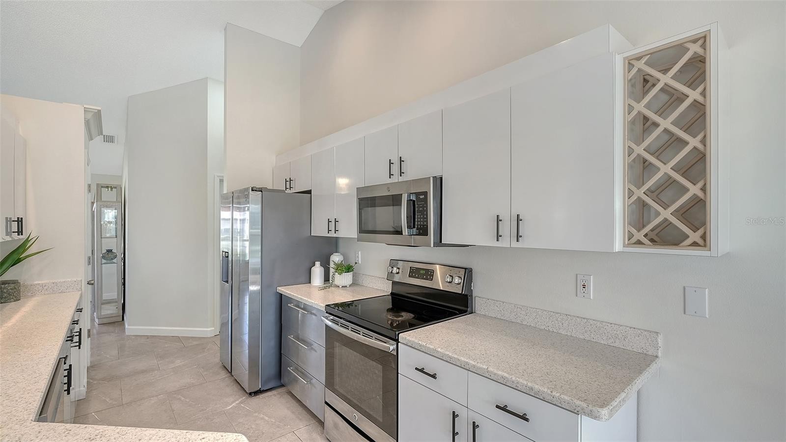 MOVE-IN Ready Home with MODERN UPDATES and ALL Brand NEW BATHS (2) & FLOORING in CALUSA LAKES Golf Community – Optional Membership. Experience the best of Florida living in this light and airy 3-bed, 2-bath home, updated and move-in ready in the maintenance-included Woodland Trails area of gated Calusa Lakes. Set on a generous .3-acre lot, this property offers added privacy, outdoor enjoyment space, and room to breathe — a rare find in a low-maintenance setting. Enjoy NO CARPET throughout: laminate flooring (2025) in all bedrooms and NEW TILE flooring (2023) in the open living, kitchen, and dining areas. Both BATHROOMS are brand NEW, renovated in 2025, plus there's a brand- NEW RANGE and DISHWASER, FRESH INTERIOR PAINT, a 7-year-old roof, and the home has been RE-PIPED— a major long-term value for Florida buyers. Relax on your private lanai with SPA or enjoy the Woodland Trails-only pool is 500 ft away. OPTIONAL golf membership at Calusa Lakes, and the private Mission Valley Golf and Country Club just 1.5 miles away. Located in the sought-after GATED Calusa Lakes Golf Community, where golf membership is optional—not required—residents enjoy the flexibility to choose their lifestyle. This gated community offers lush landscapes, mature trees, and access to an 18-hole semi-private golf course, plus amenities like Har-Tru tennis courts and a clubhouse with dining. Conveniently located just 4 miles to Nokomis Beach, 3 miles to Legacy Trail, 5 miles to Venice Island, 12 miles to downtown Sarasota, and approximately 3.4 miles to Sarasota Memorial Hospital – Venice. Listing agent is related to the sellers.
