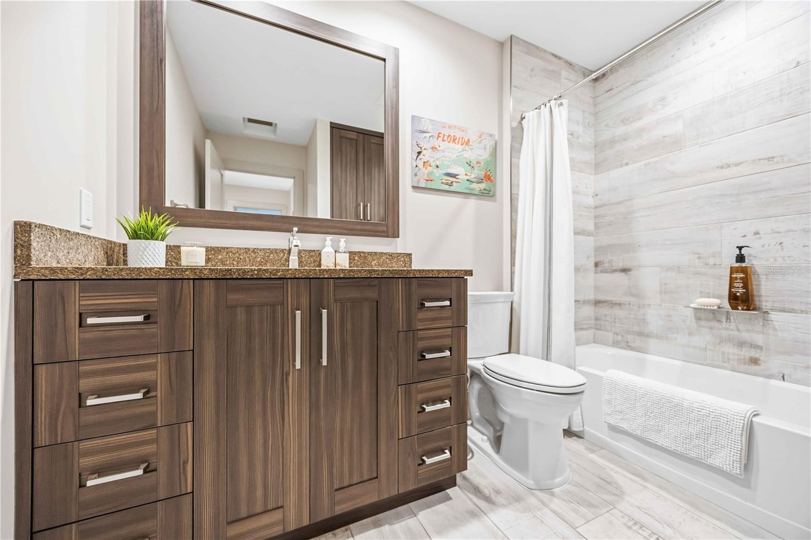This thoughtfully reimagined contemporary Florida single-family home sits on nearly a half-acre at the end of a quiet cul-de-sac in the heart of Sarasota, offering privacy, space, and modern living in a highly desirable location. Effectively rebuilt into a spacious 3 bedroom, 3 full bathroom split floor plan, the home delivers the look, performance, and confidence of newer construction with elevated design throughout. High-end finishes include designer cabinetry with soft close features, leathered Corian quartz countertops, stainless steel appliances, and an open layout that flows effortlessly for both relaxed daily living and hosting gatherings. Luxurious paint selections, level 5 finished drywall, specialty accent wall detailing, and porcelain wood-look tile flooring reflect exceptional craftsmanship and attention to detail. Each bedroom is generously sized, including a secondary bedroom with its own full bath and walk-in shower, ideal for guests or flexible living arrangements. Storage is abundant and thoughtfully designed, highlighted by a rare air-conditioned pantry or storage room in the garage along with additional built-in storage throughout the home. An oversized screened lanai creates a seamless indoor-outdoor experience, overlooking a private backyard anchored by a magnificent oak tree, while the pavered driveway enhances curb appeal. Major upgrades include impact-rated windows, sliders, and exterior doors, a high-efficiency 16 SEER HVAC system, radiant barrier insulation in the block walls, icynene spray foam insulation in the attic, and a tile roof, offering comfort and efficiency year-round. Conveniently located near golf, dining, shopping, Sarasota’s renowned beaches, and the vibrant downtown arts and cultural scene, this move-in-ready home delivers modern quality and the quintessential Sarasota Florida lifestyle. Schedule your private showing today!