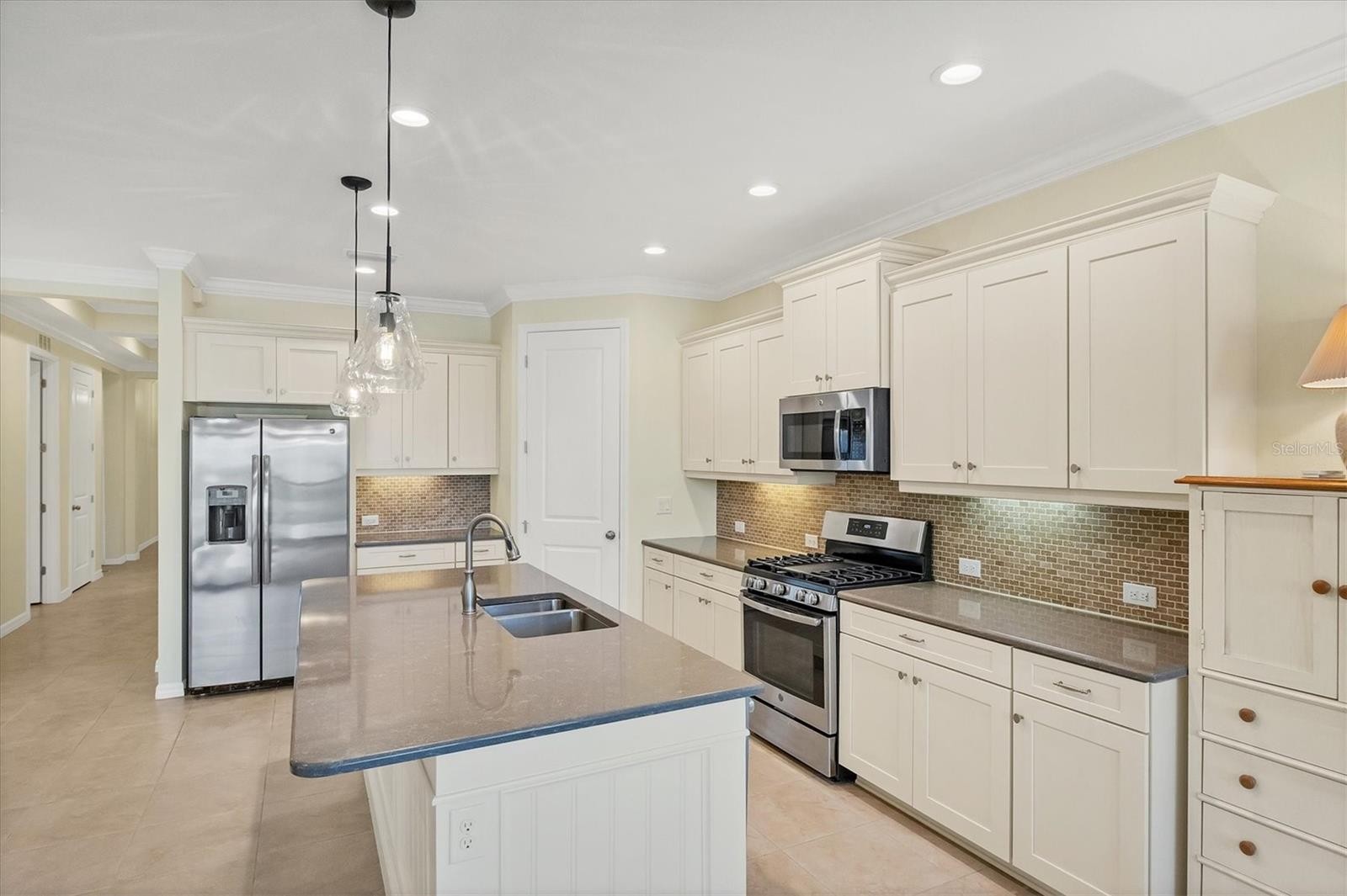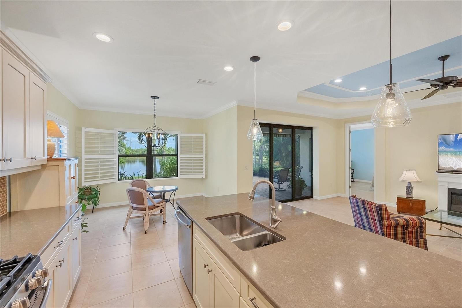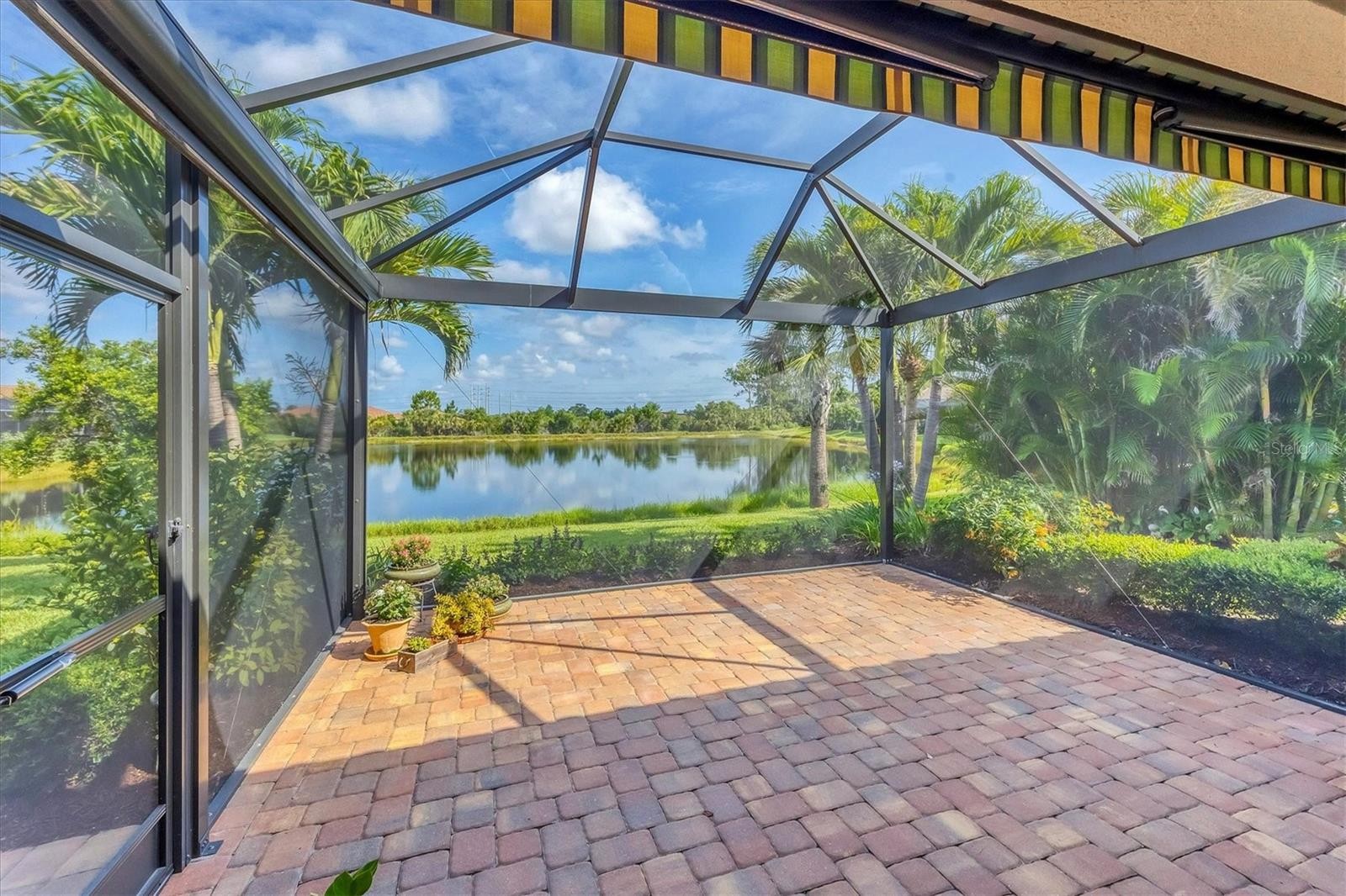 DON'T WAIT TO SEE THIS MAGNIFICENT HOME BEING OFFERED NOW!! Located on a short cul de sac street with little drive through traffic. Boasting a GORGEOUS LAKE VIEW from the extended pavered lanai with SPECTACULAR SUNSETS! Large lot has been transformeed with tropical trees and landscaping to create a peaceful and serene tropical oasis. Perfect for watching wild life. Inside this beautiful home you will find a great room open floor plan with 18" PORCELAIN TILE throughout main areas of home and hardwood in the den up front. Loaded with upgrades this home also features crown molding, tray ceilings, designer fans and fixtures, 4" PLANTATION SHUTTERS and 8' Doors throughout. Kitchen shines with upgraded cabinets, under cabinet lighting, extra recessed lighting, Zodiac counter tops, tile backsplash, stainless steel appliances, and the stove is GAS run for those chefs in the family. Gorgeous Lake views from all main rooms and master bedroom. Let the inside and outside flow together with POCKET SLIDERS TO LANAI. Lanai is pavered ( along with front walk) and extended, with CLEAR VIEW SCREENING to showcase the lake and tropical landscape. Night time is special with outside lighting to make your surroundings glow. If you are tired of the sunshine, there is a RETRACTABLE AWNING WITH LIGHTS, and a RETRACTABLE SIDE SCREEN for shade if desired. Back inside again, property offers 3BD/3BA/DEN. The extremely spacious master bedroom en suite has plenty of room for a king size bed , night stands, and a separate sitting area for reading or watching TV. En suite master bath offers dual sinks, walk in shower, 2 closets and linen closet. Two Guest bedrooms at other end of home for privacy. Guest bedroom 2 has an en suite bath also, perfect for longer staying guests. Separate Den/Office for those who want to work in the home. Eastern exposure in front provides tons of natural light to work with and you can shut the world out with GLASS FRENCH DOORS while still keeping an eye on the comings and goings. Also featured is a whole laundry room with wash sink and hanging/storage racks. 2 Car garage with wall mounts and storage racks. NO REASON TO WORRY ABOUT HURRICANES, HOME WAS BUILT WITH HURRICANE IMPACT WINDOWS AND PROPERTY COMES WITH WHOLE HOUSE KOHLER GENERATOR IF THE LIGHTS DO FLICKER. Electrical system was upgraded. Check out the 3D walk through tour at: https://my.matterport.com/show/?m=vVBf6oLXSd6 Milano is a FANTASTIC GATED COMMUNITY, offering Clubhouse, heated swimming pool, picklball courts, tennis courts, bocce ball, Fire Pit gathering area, dog park, and Myakka River Nature Trails for walking. LOW HOA'S. NO CDD. Located minutes to Downtown Venice, Venice Beach, shopping, restaurants, theaters, outdoor activities, Nokomis Beach, Casey Key, and so much more. The new shops and Atlanta Braves spring training facility is not far away. Up in Sarasota visit the many sights to see at Mote Marine, Selby Gardens, Ringling Museum, and a thriving art center on Main St. Sarasota Airport is just a short drive along with the UTC Mall and shops. Highways are just around the corner. COME SEE THIS BEAUTIFUL HOME NOW BEFORE IT IS GONE!!