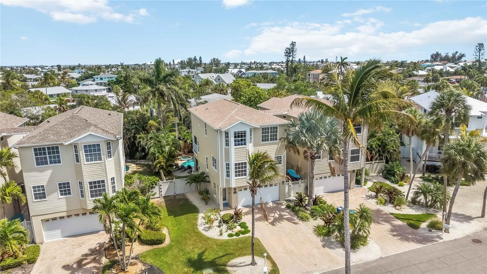 Nestled near the north end of Anna Maria Island, 215 81st Street is a three-bedroom, two and a half bath home boasting over 2,000 square feet of living space—an Airbnb gem zoned for weekly rentals. Just two blocks from some of the island’s most pristine beaches, this property offers a true tropical paradise out back. The fully fenced oasis features a gorgeous pool with a built-in hot tub, while the expansive paver-lined lounge area creates a true island escape. The elevated design includes a two-car garage and a game room—currently set up with a ping pong table but offering ample space to add additional attractions for guests. The second floor invites you into a bright, open living, dining, and kitchen area with a half bath, complemented by a massive, screened-in balcony deck (freshly screened in less then a year ago) overlooking the pool oasis below—perfect for soaking in the tropical ambiance. You will also find a dedicated interior laundry room with full size washer and dryer on this floor as well. On the third floor, you’ll find three spacious bedrooms and two full baths, with the primary suite offering not only luxury but also absolutely gorgeous views from every angle—a panoramic reminder of the beauty that surrounds you on Anna Maria Island. This home is packed with recent updates: a 2022 roof, 2019 AC, and a brand-new water heater. The exterior shines with hardie board siding installed less than a year ago and fresh paint. Beyond the home, you’re a stone’s throw from Pine Avenue’s charm and all that Anna Maria offers—laid-back vibes, local eateries, and coastal culture. Fully furnished and turnkey, this is both a thriving investment and an island escape waiting for you.