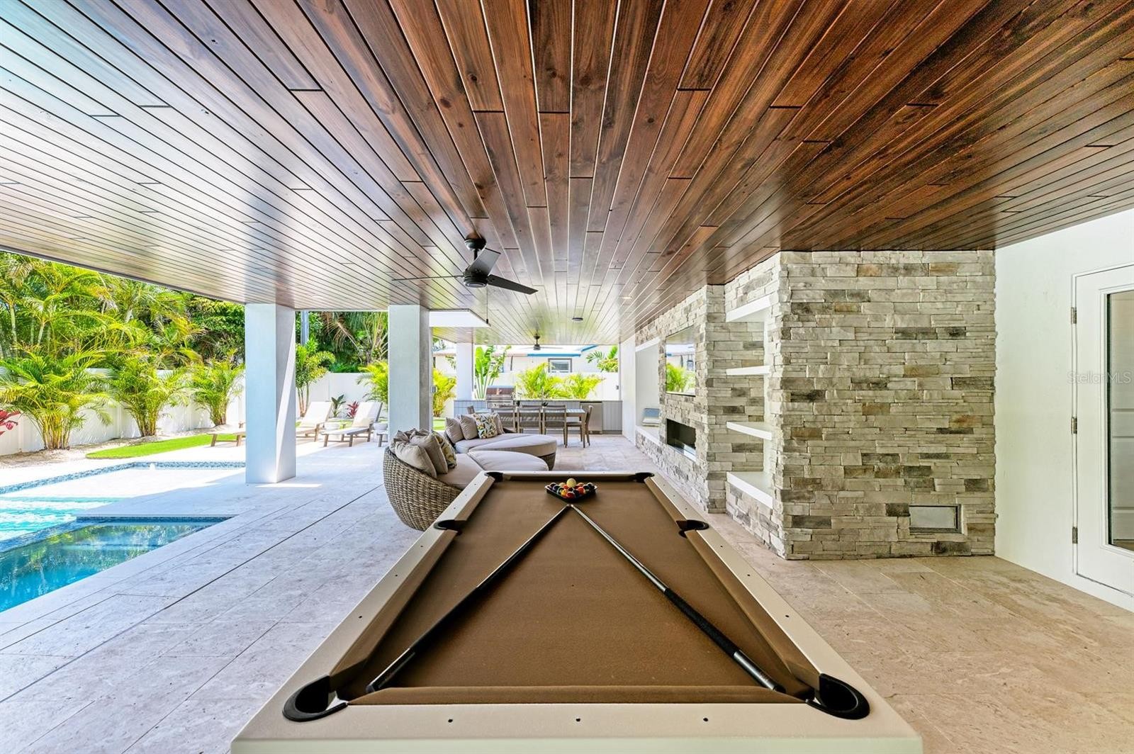 Sunsational is a freshly built & beautiful new home in Holmes Beach! This four bedroom, 4 and half bathroom pool home is impeccably built by Moss Construction and designed by award winning designer Emily Moss Designs. Which will be featured in Design Magazine soon, it's just THAT amazing! The facade of this incredible home feels like luxury and the minute you step inside it won't disappoint. The textures, the colors, the style of each room creates the perfect home for you to live and or continue renting as an investment home. They thought of everything and there is no lack of detail at every turn. So many things to bring to light about this gorgeous home but one of the most prominent is the back yard. It's literally a space full of beauty and fun. It's Florida outdoor living at its finest. Games, heated pool and spa as well as enough balconies for everyone. The great room creates a space large enough for everyone to come together for dining, movies or anything else the family wants to do together. Sunsation also gives you and your family or guests the ability to get away into their own spaces. With a small media room with wet bar upstairs you can spread out to in case you just can't agree on a movie. There are numerous balconies to escape to and enjoy the warm air and great views of Holmes Beach. Every bedroom is large and cozy. Three of the bedrooms are en-suites and ready for and your guests and you must see the bunk room. EVERY youngster will dive into bed and love the feel of fun in this super creative use of space. Just 2.5 blocks to the coveted sugary beaches of Anna Maria Island. Spend the morning walking the beach, collecting shells and feel the ocean breeze. Come back from the beach and spend the day at a home you literally may never want to leave. If you do decide to venture out, you are a golf cart ride or a bike ride away from it all. Hop on the free Trolley and head out to all the hubs of each cities shops and restaurants. This home is amazing and you simply must come see your new home and start living the Anna Maria Life now!