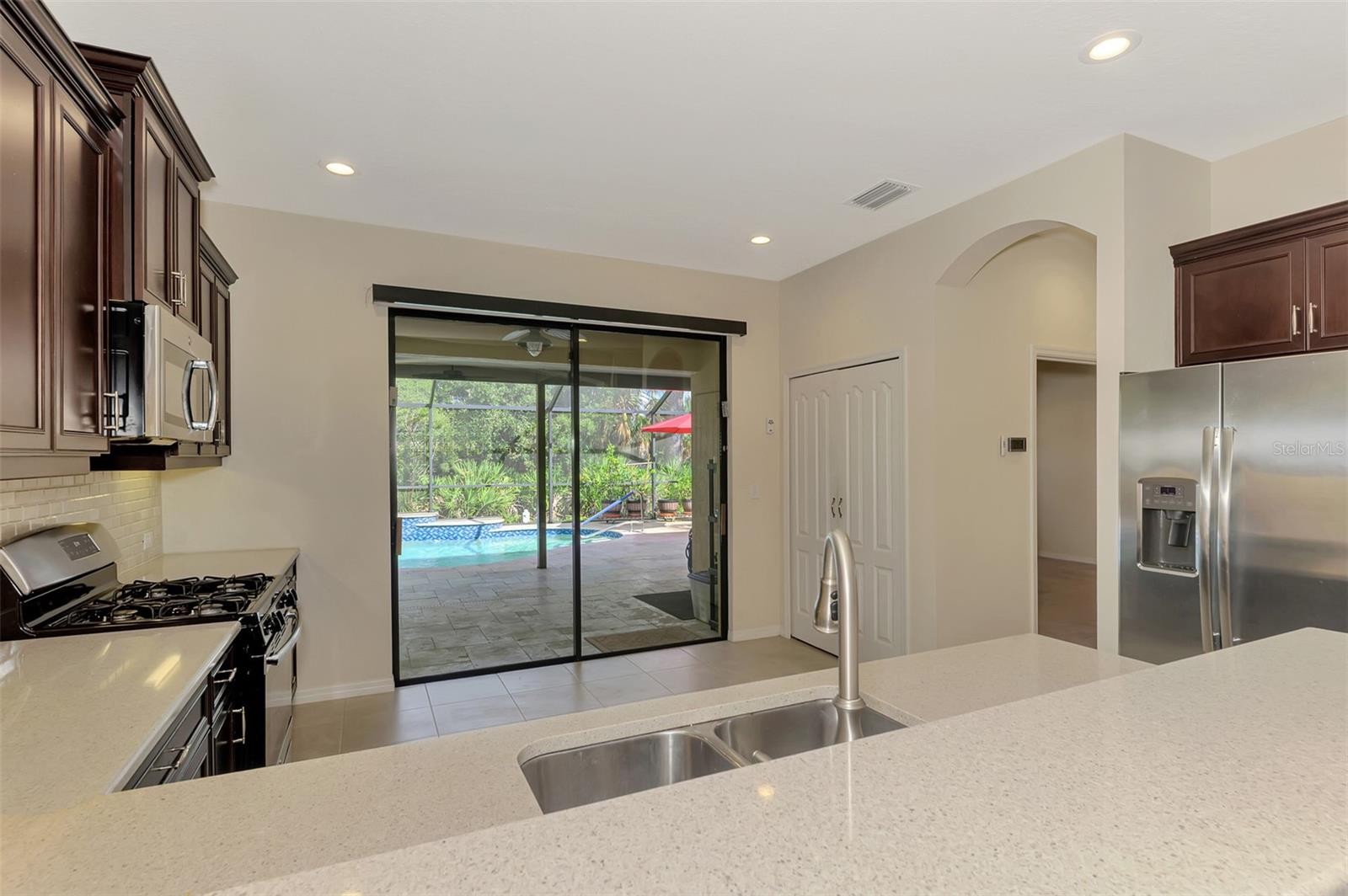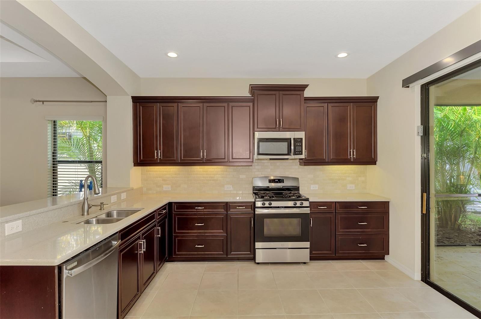 Welcome to this 3-bedroom, 2-bath Neal Communities Liberty 2 model offering 1,515 sq. ft. of stylish living space and a 2-car garage. From the moment you arrive, you will drive up to a beautiful home with lush landscaping which sets the tone for the quality and care found throughout this home. Step inside and enjoy an open, split floor plan designed for comfort and privacy. The great room showcases elegant ceramic tile flooring, a tray ceiling, and abundant natural light. The kitchen is a showstopper with 42" wood cabinetry, under the counter lighting, quartz countertops, a subway tile backsplash, and a spacious pantry. Welcome to the future because this home has solar panels which you will be enjoying lower power bills because of the roof top solar panels. Relax or entertain in your private outdoor oasis featuring a covered and screened-in lanai with travertine pavers, luxurious landscaping, and a sparkling, heated, salt-water pool overlooking a peaceful conservation area. Lanai also has a natural gas hookup for your grill because Milano is a Natural Gas community. You will enjoy grilling and swimming throughout the year. Florida Life! The primary suite includes a spa-like bathroom with a double vanity and large walk-in shower. A secondary bedroom features a convenient built-in Murphy bed, perfect for guests or home office use. Practical upgrades abound—whole-house generator, smart home features (including app-controlled garage door, thermostat, and doorbell), full gutter system, retractable front screen for cross-breezes, and a fully insulated garage with an epoxy-coated floor, suspended storage, and mini-split A/C system. All appliances and the whole-house water softener convey. No CDD fees! Milano is a private, gated community known for its charming architecture and friendly atmosphere. You’ll love being close to Venice and Sarasota’s beaches, boating, shopping, restaurants, and easy access to I-75 for convenient commuting north or south. Call today for your appointment and make this beautifully upgraded home your own!