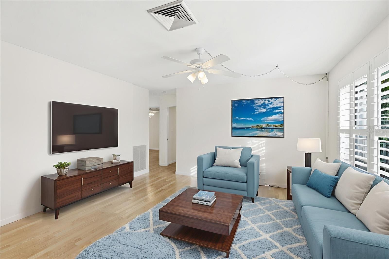 One or more photo(s) has been virtually staged. Enjoy relaxed Florida living in this charming 2 bedroom, 2 bathroom waterfront home set on a generous lot just under half an acre in the established Sorrento East neighborhood, just minutes from Nokomis Beach. A brand-new roof just completed, featuring a third nail, adds immediate value and peace of mind, while the peaceful water view creates a serene backdrop for everyday living. Inside, fresh paint on the interior creates a bright, crisp feel ready to make it your own. The inviting layout is filled with natural light and accented by plantation shutters and warm wood flooring in the main living areas and bedrooms. The living and dining spaces flow into a light-filled Florida room, where sliding glass doors frame calming water views and open to the outdoor entertaining area. The kitchen features white cabinetry, stainless steel appliances, ample counter space, and a window overlooking the backyard and water, making it both functional and welcoming. Both bedrooms are well-proportioned, each with access to a full bathroom, offering flexibility for guests or everyday living. A separate flex space just off the laundry area adds valuable versatility and has been used as a home office, hobby room, or additional storage. Hurricane shutters provide added protection, and a wood-burning fireplace brings warmth and character to the living space. Energy efficiency is enhanced with solar panels currently leased at approximately $65 per month, helping keep electric bills extremely low. The lease has been in place for three years and offers a buyout option for the new owner. Outside, the spacious driveway offers ample room to park an RV, boat, or all the toys you choose to bring, while the expansive backyard invites relaxation with a paver patio, firepit overlooking the water, and space to enjoy the tranquil setting. The large lot provides privacy and flexibility, all within a quiet, well-established community close to beaches, shopping, and dining. **THIS PROPERTY QUALIFIES FOR A 1% LENDER INCENTIVE IF USING PREFERRED LENDER. INQUIRE FOR MORE DETAILS.**
