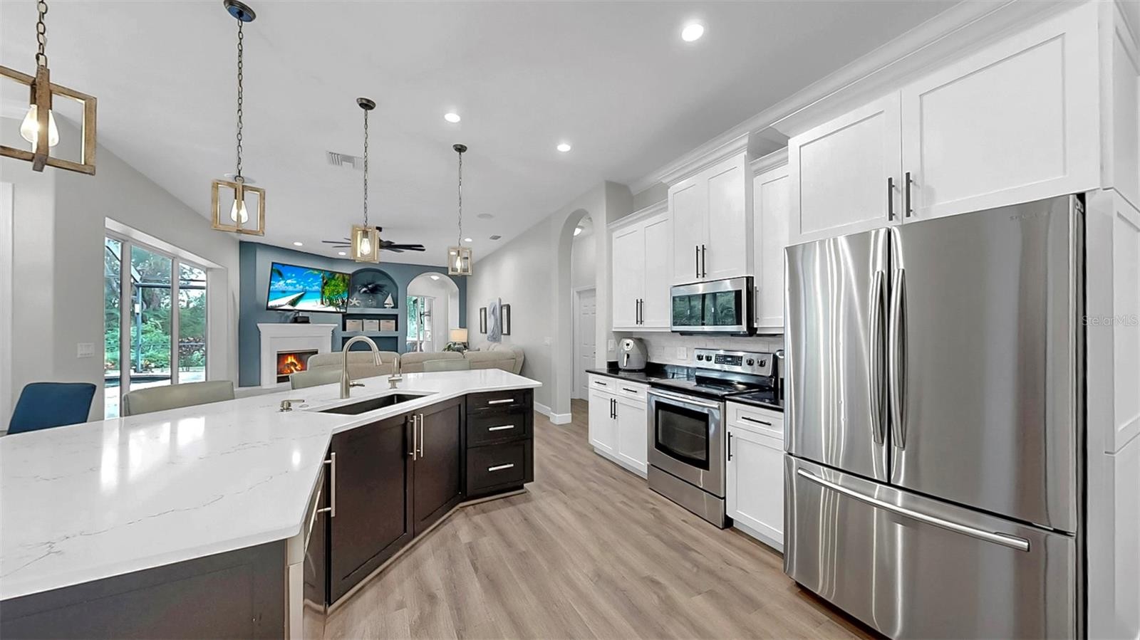 Welcome to your private sanctuary in the Preserve at Panther Ridge! This stunning custom residence is perfectly positioned on a lush 1.07-acre wooded lot, offering serene pond views and the ultimate Florida lifestyle within one of the most scenic communities in the Lakewood Ranch area. The thoughtfully designed floor plan features four spacious bedrooms, three full baths, a dedicated home office, and formal living and dining rooms designed for seamless entertaining. At the heart of the home, the oversized kitchen opens into a bright great room where disappearing sliders lead you to an expansive screened lanai. Recent high-value updates provide peace of mind and modern comfort, including a brand-new roof, a new Trane air-conditioning system installed in 2024, and beautiful luxury vinyl plank flooring throughout. Outdoor living is truly elevated here with a heated pool, a well-equipped outdoor kitchen, and a private fire pit area perfect for starlit evenings. The property is a tech-lover’s dream, boasting a Tesla charger, generator interlock switch, and a comprehensive smart home infrastructure featuring Brilliant controls, Hue lighting, Ring cameras, and Sonos sound. Additional upgrades include a whole-house reverse osmosis water system, custom closet systems, an expanded driveway, and an invisible fence for your four-legged family members. Residents of the Preserve enjoy a peaceful, nature-centric atmosphere with the benefit of low HOA fees and no CDD. While you will feel miles away from the hustle and bustle, you are just moments from the premier shopping and dining of Lakewood Ranch and conveniently located near McNeal Elementary, Nolan Middle, and Lakewood Ranch High School. This home perfectly blends natural beauty with modern convenience.