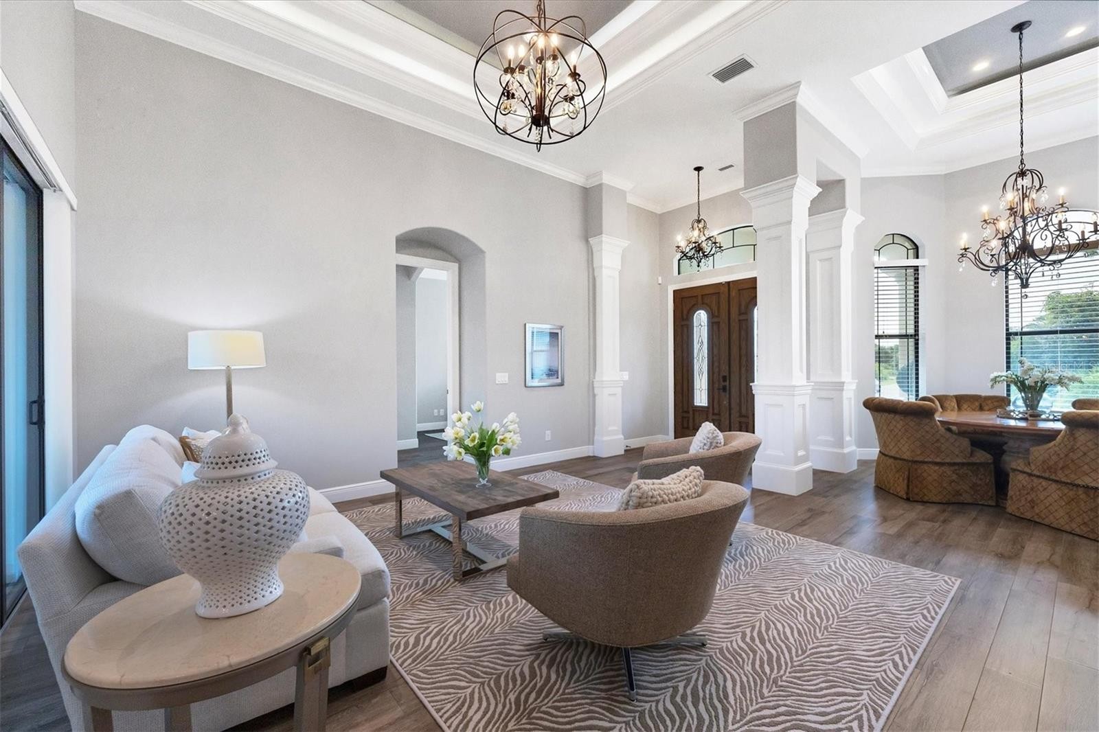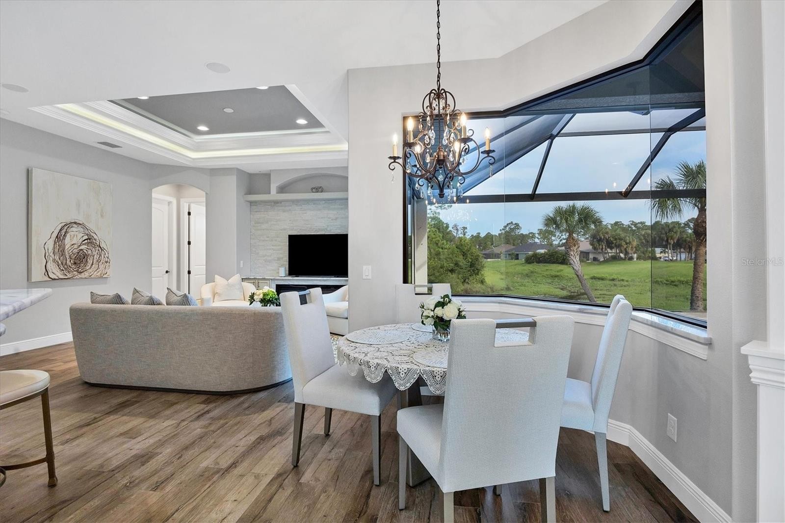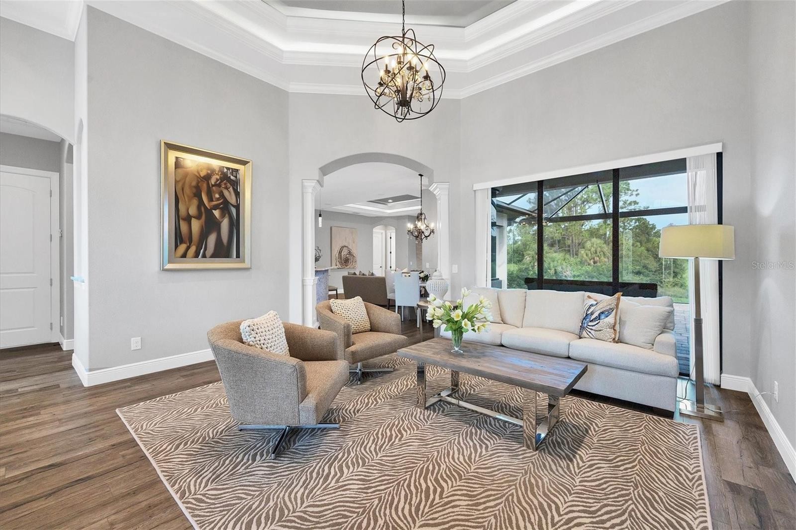 Experience ONE OF THE KIND true luxury in this stunning, beautifully built house in the heart of South West Florida. This house captures a modern, sleek feel with a Brand New Roof 2024 and a magnificent Waterfront view in your very own backyard. The water system is on reverse osmosis, and the owner has a monthly service plan in place to take care of the system. The house is beautifully molded as an open floor plan with high ceilings.This home is built high on stem wall for higher elevation; this home plan offers 2257 sq ft, and the screened patio is 785 sq ft. Home offers PGT windows and sliders, all doors are 8 feet tall, spray foam insulation, Tile flooring throughout the house, home security system installed, central vacuum system, family room has ceiling speakers connected from entertainment center, and whole home has reverse osmosis system for best quality water. This beautiful home has a very nice and modern built-in electric fireplace. Screened Patio has all the hookups for the outside kitchen, including a 220V electrical outlet. There is 1 inch of insulation in the walls throughout the house for better AC and heat efficiency. When you walk into the house, you'll love the high ceilings. The living room and dining room have 12'8 with a tray ceiling to 14', the family room has 10' with a tray ceiling to 11'4, and all bedrooms are 10' with a tray ceiling to 10'8. The kitchen has beautiful granite counter tops and luxurious cabinets.It is a one-of-a-kind house in a very peaceful neighborhood, minutes away from Warm Mineral Springs and the BRAND NEW WELLAND PARK, all major shopping centers the house is a short 15-minute drive from the beach. Situated in a vibrant and thriving community , this property promises a lifestyle filled with abundant sunshine, natural beauty, and coastal charm. NOT FLOOD ZONE! NO HOA OR CDD!GREAT ELEVATION! Nestled in the heart of North Port, this home benefits from its prime location, offering easy access to an array of amenities and attractions. Discover the nearby pristine Gulf beaches, where you can bask in the sun, partake in water activities, or simply relish the tranquility of the ocean. Embark on nautical adventures from the conveniently located marinas, allowing you to explore the region's captivating waterways and nearby islands. Fishing enthusiasts will delight in the world-class fishing opportunities, while golf enthusiasts can indulge in a variety of renowned golf courses. North Port is known for its thriving shopping and dining scene, featuring a diverse range of retail centers, boutiques, and restaurants. Immerse yourself in the vibrant downtown area, boasting charming shops, art galleries, and entertainment venues. The city hosts numerous cultural events, festivals, and community gatherings throughout the year, ensuring there's always something exciting happening. Beyond the city's amenities, this vacant lot offers proximity to breathtaking nature parks and preserves. Myakka River State Park is another nearby gem. North Port also boasts excellent educational institutions, reliable medical facilities, and convenient transportation options. The city's welcoming community and strong sense of belonging make it an ideal place to establish roots and create lasting memories. Experience the best of Florida living, with nearby beaches, golf courses, and outdoor recreational activities just a short drive away. Don't miss out on the chance to own this extraordinary home.