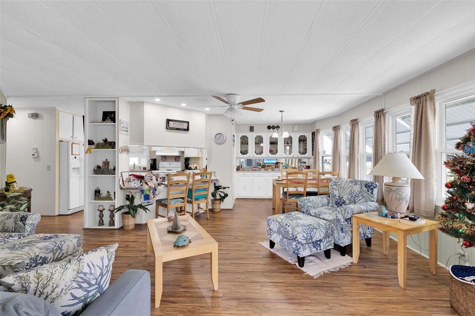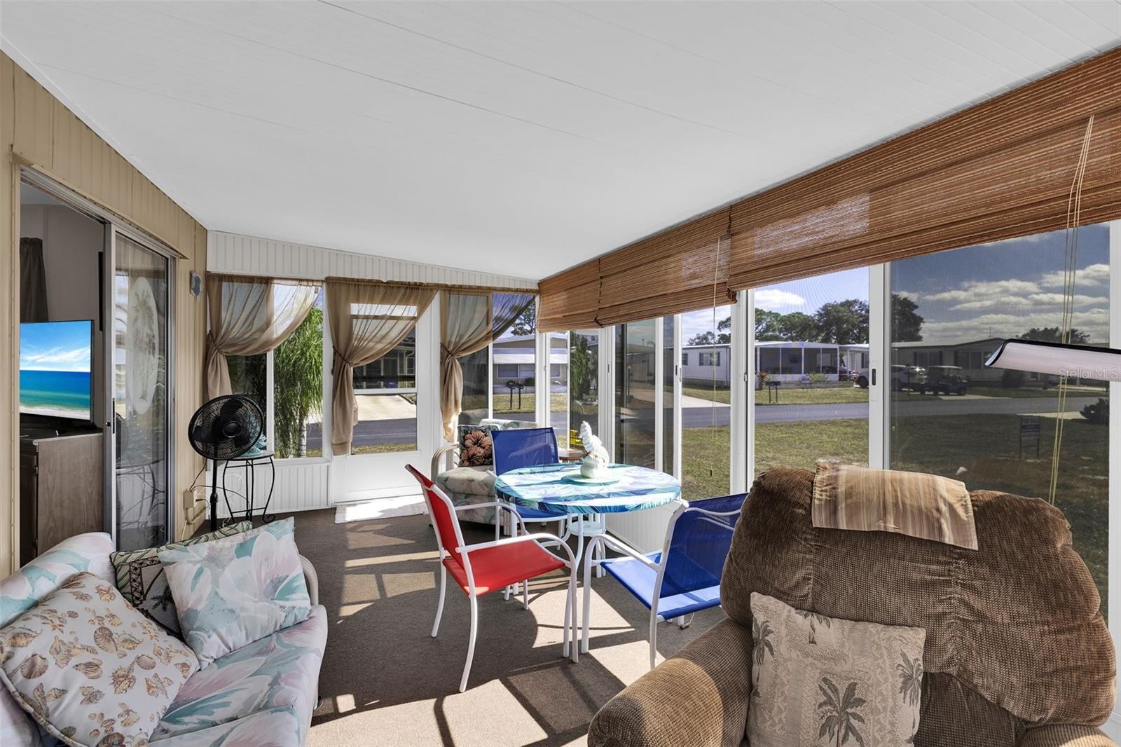 Discover your dream home with a delightful new carport featuring double doors, perfect for storing your golf cart! Step inside to find a beautiful vinyl-enclosed lanai that seamlessly connects to a charming backyard and a cozy patio area, ideal for enjoying the outdoors. The utility room is well-equipped with a washer, dryer, deep sink, and plenty of storage space to meet all your needs. As you enter this inviting La Casa home, you'll be greeted by a stunning new door adorned with a stained glass insert. The bright and cheerful kitchen offers abundant cabinet space, a breakfast bar, and modern appliances, making it a wonderful place to whip up your favorite meals. The dining room, complete with a built-in hutch, flows into a spacious living room that invites relaxation. Enjoy the natural light in the glass-enclosed Florida room, which conveniently opens to the front sidewalk and carport. Retreat to the generously sized guest bedroom featuring a walk-in closet, while the guest bath is thoughtfully designed with a vinyl floor and a soothing tub/shower combination. The primary bedroom shines with its en-suite dressing area and a luxurious walk-in closet. The primary bath includes a granite-topped vanity and a beautifully tiled walk-in shower with a bench, ensuring comfort and convenience. This lovely home is further enhanced with modern upgrades, such as clam-shell awnings, a newer metal roof, laminate flooring throughout, and efficient newer windows and A/C installed in 2015. Welcome to your new beginning! Welcome to La Casa providing the ultimate lifestyle on Florida’s Gulf Coast. We are convenient for shopping, sightseeing, golfing, fishing, and boating, as well as the culture and elegance for which Southwest Florida is noted. Residents and visitors enjoy the warmth of Southwest Florida winters in a relaxed and unhurried environment far removed from the hustle of Florida’s east coast. You’ll be surrounded by hundreds of palms reaching for the sky and beautiful mature lush landscaping which demonstrates the utmost level of care our property receives from residents and management. Wireless Internet (Wi-Fi) is available at the Clubhouse, Activity Building, and Recreation Hall area where our pools & spas are located, so you can catch some rays while you catch up on your email. Sound enticing? La Casa is a friendly, family community. You will be away from the hustle and bustle except when you want to be part of it. When you leave our gates, North Port is only 1.5 miles from the city center, where you will find every kind of retail store and service you could need. Come for a visit to this self-contained oasis and see for yourself why La Casa is the ultimate destination for both snowbirds and year-round residents.