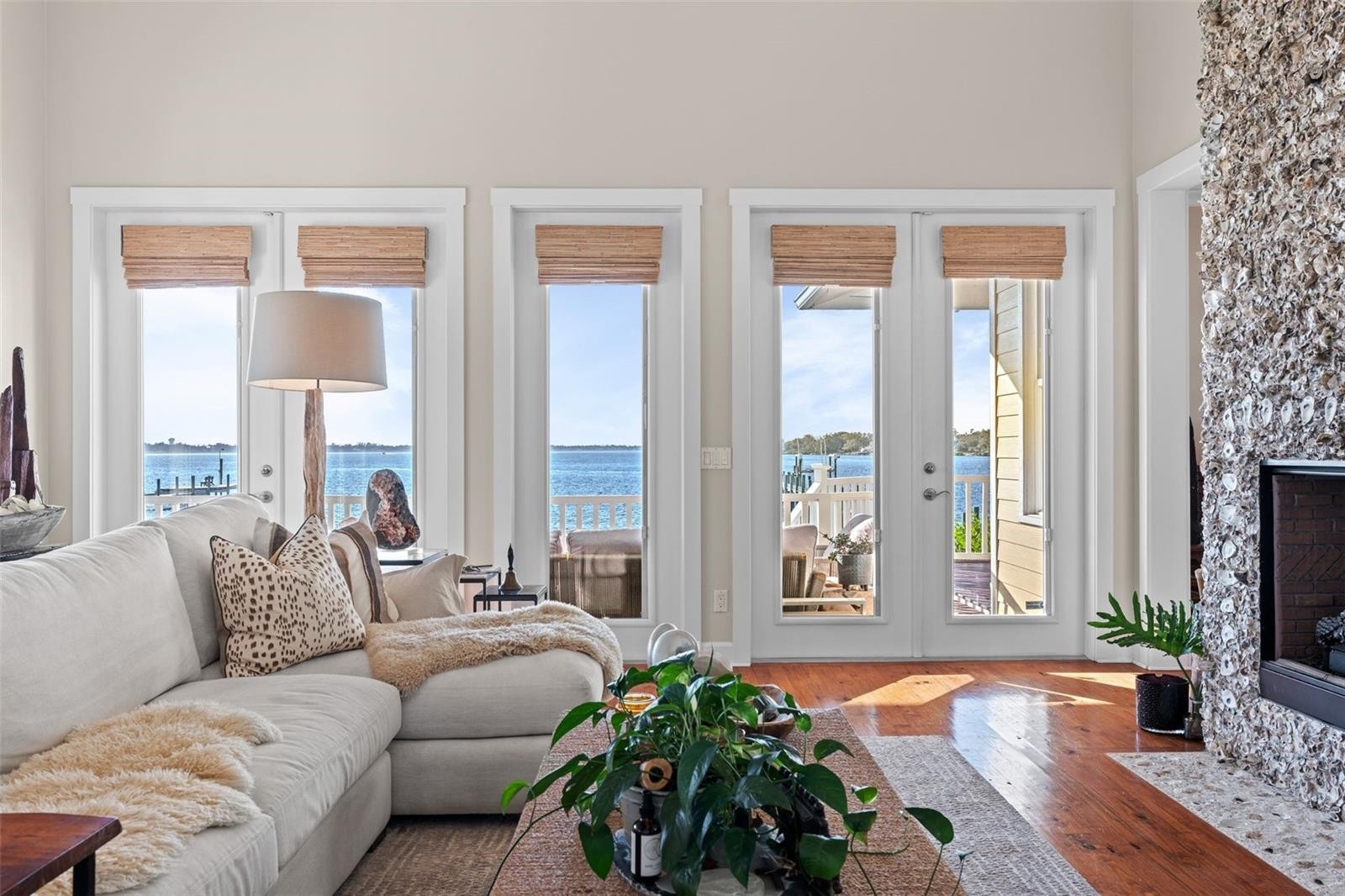 A Riverfront Retreat Where Coastal Living Meets Tranquility.. Immerse yourself in the serene rhythm of riverfront living in this custom-built coastal retreat on the Manatee River. Designed to embrace stillness, nature, and an effortless indoor–outdoor lifestyle, this home offers panoramic water views from nearly every room, whether you’re unwinding on the wraparound porch, greeting the morning from the owner’s suite balcony, or relaxing on the private deck of the guesthouse above the oversized two-car garage. Set on nearly one acre of lush, park-like grounds, the property feels like a secluded Old Florida sanctuary. 100+ year-old live oaks, breezy palms, and tropical gardens create a backdrop that enhances the home’s peaceful, retreat-like atmosphere. Inspired by coastal architecture and elevated with thoughtful craftsmanship, the main home features 3,411 sq ft, 3 bedrooms, and 2.5 baths, while a separate 600 sq ft studio with full bath offers flexible space for guests or a creative hideaway. Over 3,500 sq ft of covered porches invite you to slow down. Inside, a chef’s kitchen with Viking commercial appliances, granite counters, wood cabinetry, and a walk-in pantry anchors the home. A double-sided gas fireplace warms both the living and family rooms, while rich hardwood floors and detailed millwork bring timeless comfort throughout. Guests bedrooms with custom closets and feature either water or garden views. Upstairs, the owner’s retreat offers a spacious bedroom, flexible sitting/exercise/office alcove, two walk-in closets fitted with custom California closet systems, and a spa-like bath with footed tub, separate shower, and dual sinks. A private wet bar with refrigerator and a balcony overlooking the river complete this elevated sanctuary. The property’s resort-style amenities deepen the sense of escape: a saltwater pool and spa added in 2011, whole-home audio, central vac, and modern smart-home features. Built in 1999 to the 2004 code and updated in 2011, the home includes impact-rated windows, doors, and garage doors, plus newer Trane HVAC systems (main house 2020, studio 2019). The elevated design protected this home from severe flooding and a full crawl space for maintenance and storage. Also promoting whole-body wellness with a premium reverse osmosis system, a full-home salt-based water filtration, and a rejuvenating private spa experience featuring both a sauna and cold plunge, all designed to elevate daily living and support optimal health. A 320-foot dock with a 10,000 lb lift extends your living space into the river itself, a quiet place to take in sunrise or sunset, watch dolphins and manatees drift by, or cast a fishing line as pelicans glide overhead. 275 sqft of climate controlled and dehumidified storage space will keep all your gear ready and protected. All of this tranquility is perfectly balanced by proximity to vibrant coastal life: minutes to downtown St. Pete, the Bradenton Riverwalk, and the Gulf beaches, as well as dining, shopping, and cultural destinations. More than a home, this is a true waterfront retreat, and legacy estates like this are seldom on the market.