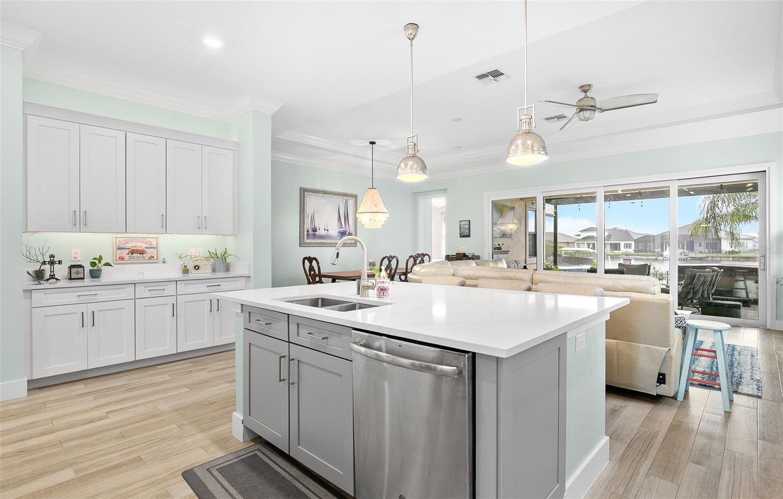WATERFRONT LUXURY IN SANCTUARY COVE! Welcome home to your boater's dream home in the exclusive gated waterfront community of Sanctuary Cove, This custom designed single-family residence has a nautical theme! It offers a seamless blend of luxury, comfort, and Florida costal living. Close to many water front restaurants. Go by boat or car! Bring your boat. There is a dock with a lift right in your backyard! Interior features > Open concept floor plan with tray ceilings and crown molding. > Chef's kitchen with solid surface countertops, gourmet gas cooktop, convection oven, bar area and stainless steel appliances >Smart-home equipped with tankless water heater and modern energy efficient features. >Spacious primary suite with en-suite bath, double vanity, and custom walk-in closet. >High -end tile flooring and premium features throughout. Outdoor Living >Professionally landscaped lot with stucco exterior and beautiful tile roof. >Covered Lanai with outdoor kitchen, hot tub and elegant lighting. Perfect for entertaining! >Waterfront back yard with private boat lift, lagoon views and seawall in a peaceful setting with great sunset views! This is a must see! Schedule your appointment today! Agent is also homeowner.