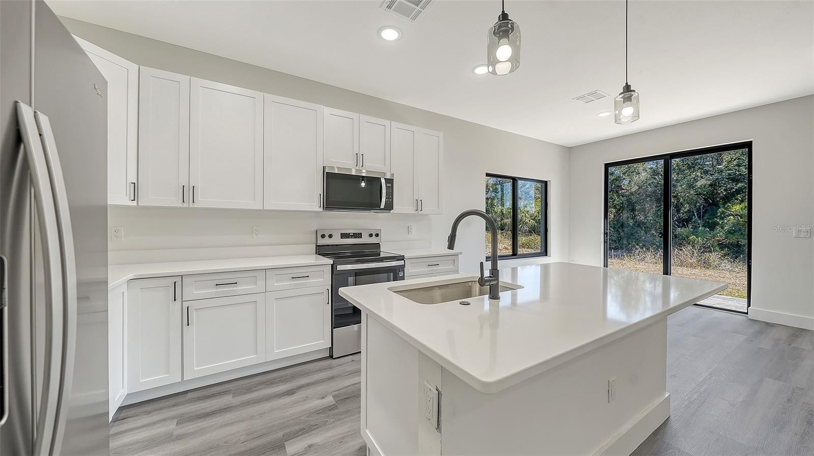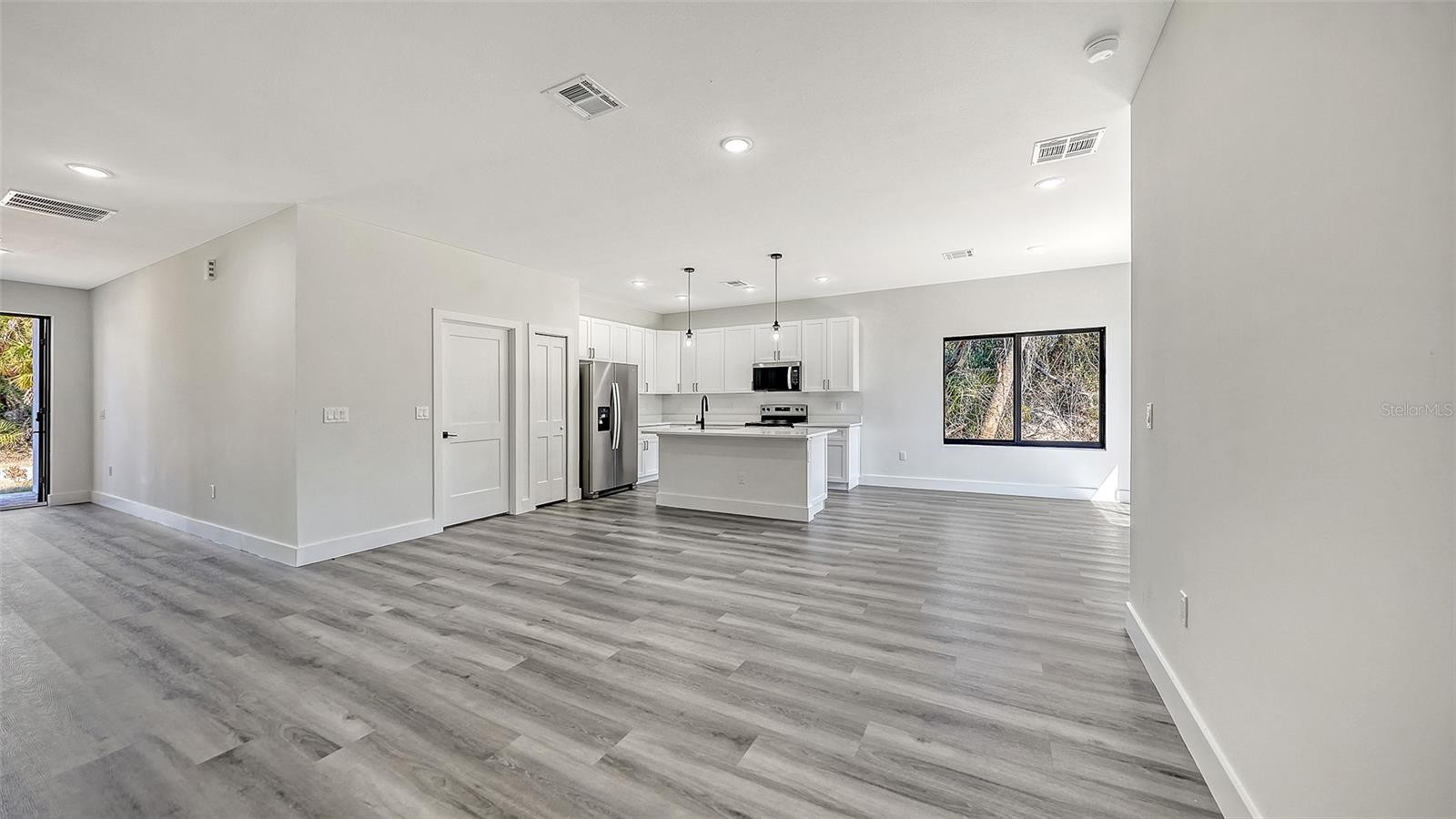 Welcome to this brand-new, never-lived-in 3-bedroom, 2-bath home with a den/office, completed in 2026 and ready for its first owner! Designed with modern living in mind, this stunning residence offers a bright open-concept layout, soaring 9-foot ceilings, and a split-bedroom floor plan that provides comfort and privacy for everyone. The heart of the home is the chef-inspired kitchen, showcasing a striking quartz waterfall island, sleek shaker-style cabinetry, stainless steel appliances, a spacious pantry, and a stylish bar-height counter perfect for entertaining or casual dining. The open living area flows effortlessly, creating a warm and inviting space for gatherings. Retreat to the luxurious owner's suite, featuring a spa-like bathroom with a freestanding soaking tub, dual sinks, marble-style tile finishes, and a generous walk-in closet. Luxury vinyl plank flooring runs throughout the home, blending durability with upscale style. Built with concrete block construction and equipped with a SMART KEY system, this home offers peace.