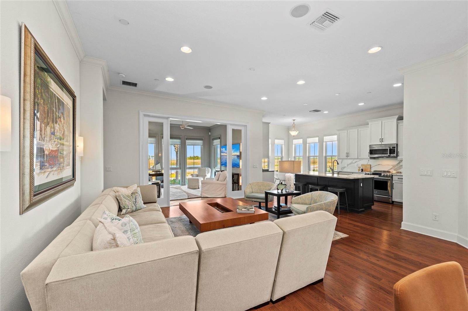 Welcome to your beautiful home with spectacular water views in the luxurious, gated, much sought after, coastal resort community of Harbour Isle on Anna Maria Sound. This spacious three bedroom and three bath Abaco style home has exquisite decor and upgrades galore. (Some furnishings are negotiable.) This light and bright home has expansive water views from the owner’s suite, sunroom (with wall to ceiling windows), kitchen and living area where you can experience unparalleled sunsets and views all the way to Tampa Bay and the Sunshine Skyway Bridge. Focusing on the interior of the property, it features a multitude of upgrades. To name a few, Custom Granite Coffee Bar with built-in warming drawer, back lighting and custom hand made handles, New Quartz countertops throughout, 42” solid wood cabinets, updated specialty Granite (Blanco) sink in the Kitchen, updated Laundry room, Dining room custom built in Book Shelve with back lighting, Custom music speakers throughout the home. Custom window treatments including hunter douglas pirouettes and silhouettes, gorgeous tile and wood flooring in main living area, kitchen and bath, upgraded carpet in two bedrooms, stainless steel appliances in the kitchen, custom window treatments, crown molding and an oversized two-car garage. The building has green LEED certification, block construction with Hardie board exterior siding and PGT impact rated windows. It is strong and built to last. Harbour Isle is second to none. While inside the gates at Harbour Isle, explore two miles of neighborhood walking trails and stroll to the nearby neighborhood pools with outdoor grills, cabanas, fire pit and kayak launch for the 38-acre lake. End the day with an incredible sunset at the 23,000 square foot Beach Club overlooking Anna Maria Sound. The Beach Club features resort-style amenities with the Sky Bar, Lounge, Pavilion, Fitness Center, Yoga Lawn, Event Lawn, resort pool, hot tub and a private beach to launch a kayak in the Sound. Just outside the gates of Harbour Isle you’ll find the Margaritaville inspired Compass Hotel, Safe Harbor Marina with wet and dry storage and Floridays waterfront tiki restaurant. Cross the Manatee Bridge and you’re on Anna Maria Island with its sugar sand beaches and quaint island charm. It’s time to start living your best life. Live, relax, enjoy an active lifestyle in award-winning Harbour Isle. This home is special!