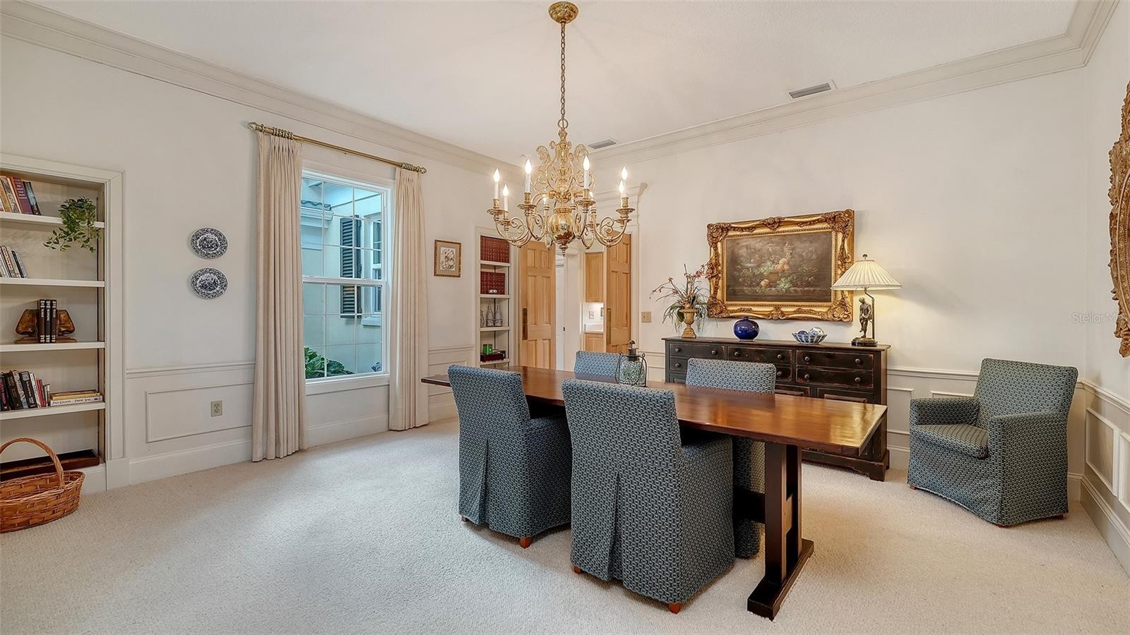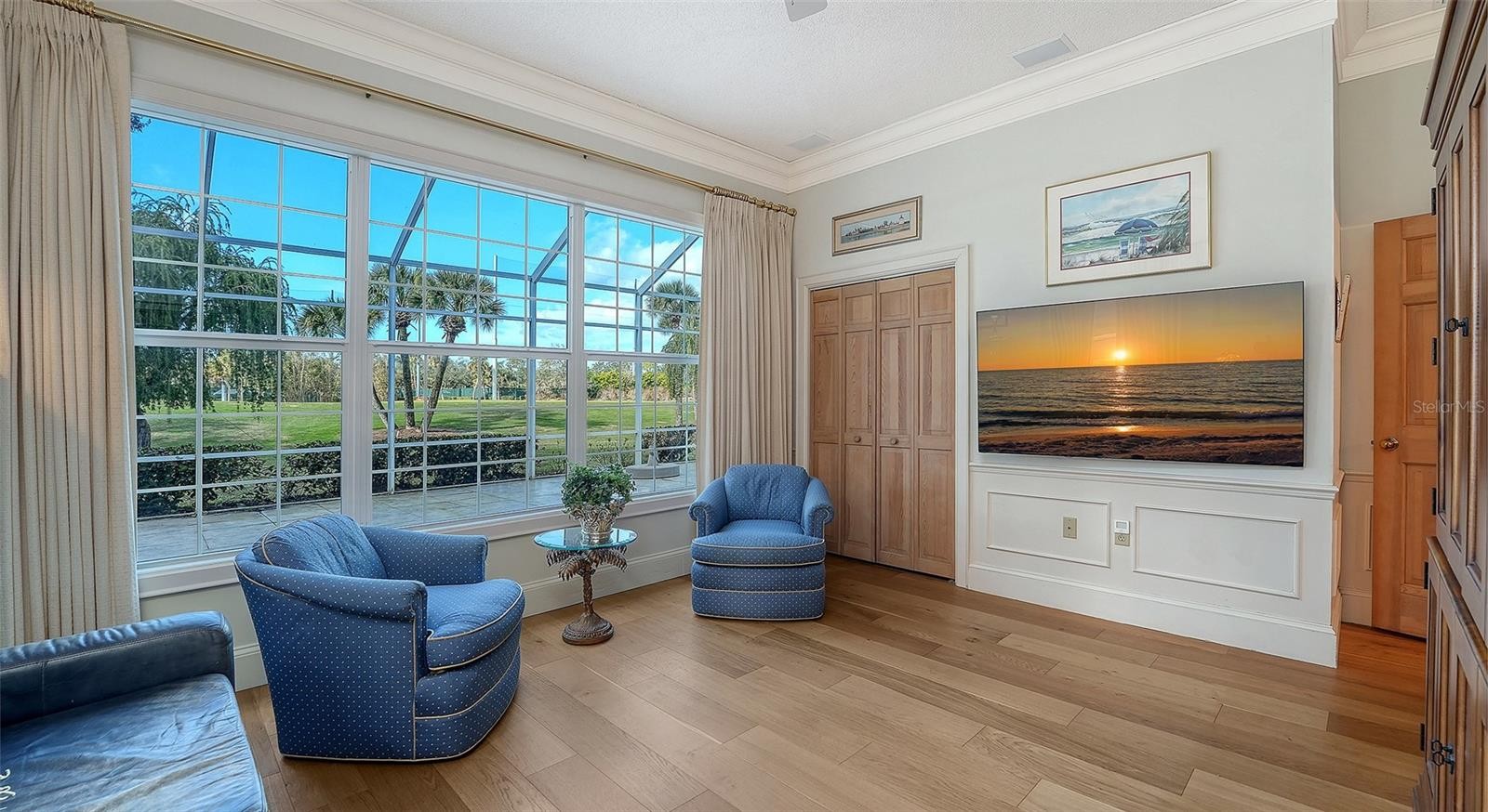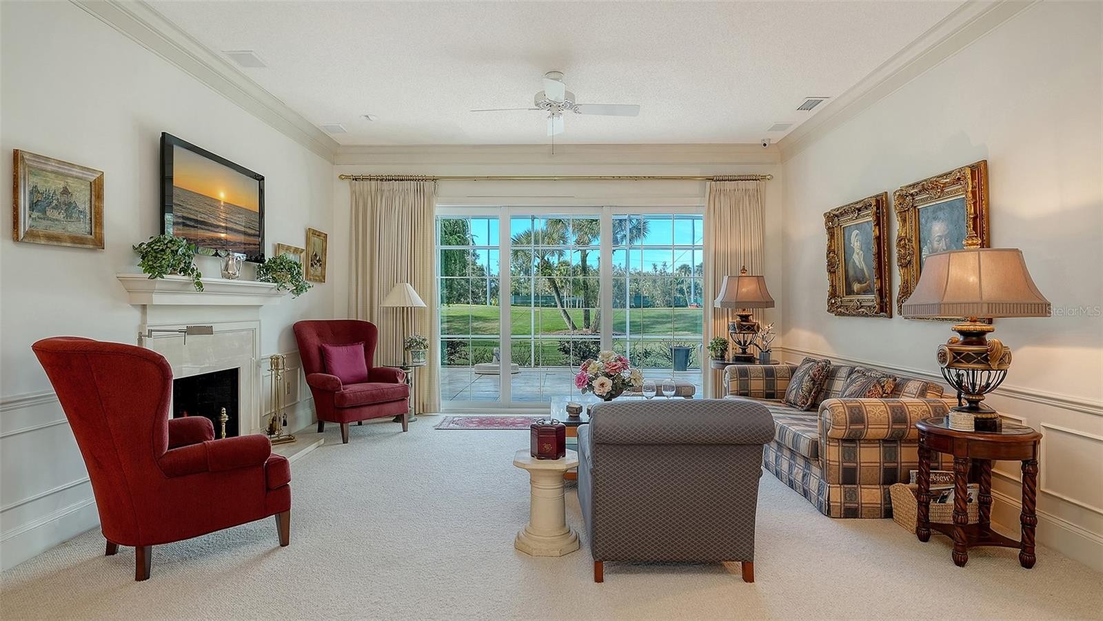 Experience the charm and wonderful location of this golf course home on Saint James Park, the leafy and quiet cul-de-sac where you can walk to tennis, golf, pickleball, croquet, heated pool and state of the art fitness center all within The Oaks Country Club, where the luxury lifestyle awaits! This 2 bedroom, 2 bath traditional home overlooks the first hole of the Eagle Golf course, and is being offered completely furnished, easy to maintain, and is move in ready. The roof is new in 2024, and all windows and sliding doors are newer and hurricane impact. Custom designed by Bo MacEwen, the architect who designed the clubhouse, features include crown molding, wainscoting, built-ins throughout, a wood burning fireplace, split bedrooms, both ensuite with wood floors, and open views from most rooms. The kitchen has a light and bright breakfast area. The expansive screened lanai is 20 feet by 48 feet, and the oversized two car garage has a charging station for your electric car. Saint James Park is the residential area closest to the athletic facilities so residents can easily walk or bike to all facets of the club, including dining as well as a social atmosphere that encourages all to stay engaged in all The Oaks Club has to offer. For those electing golf, the ability to play the two courses is immediate, no waiting period. Also, The Oaks has been designated a Platinum Club of America, and an Emerald Club, signifying it’s standing among the finest in Florida, not to mention 20 minutes to the best beaches in Sarasota County! Membership is required, either Social or Golf. Be sure to see this special home and begin enjoying a well rounded lifestyle!