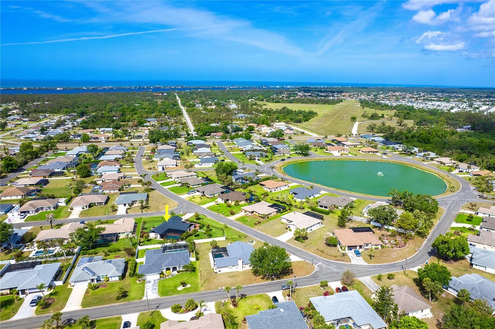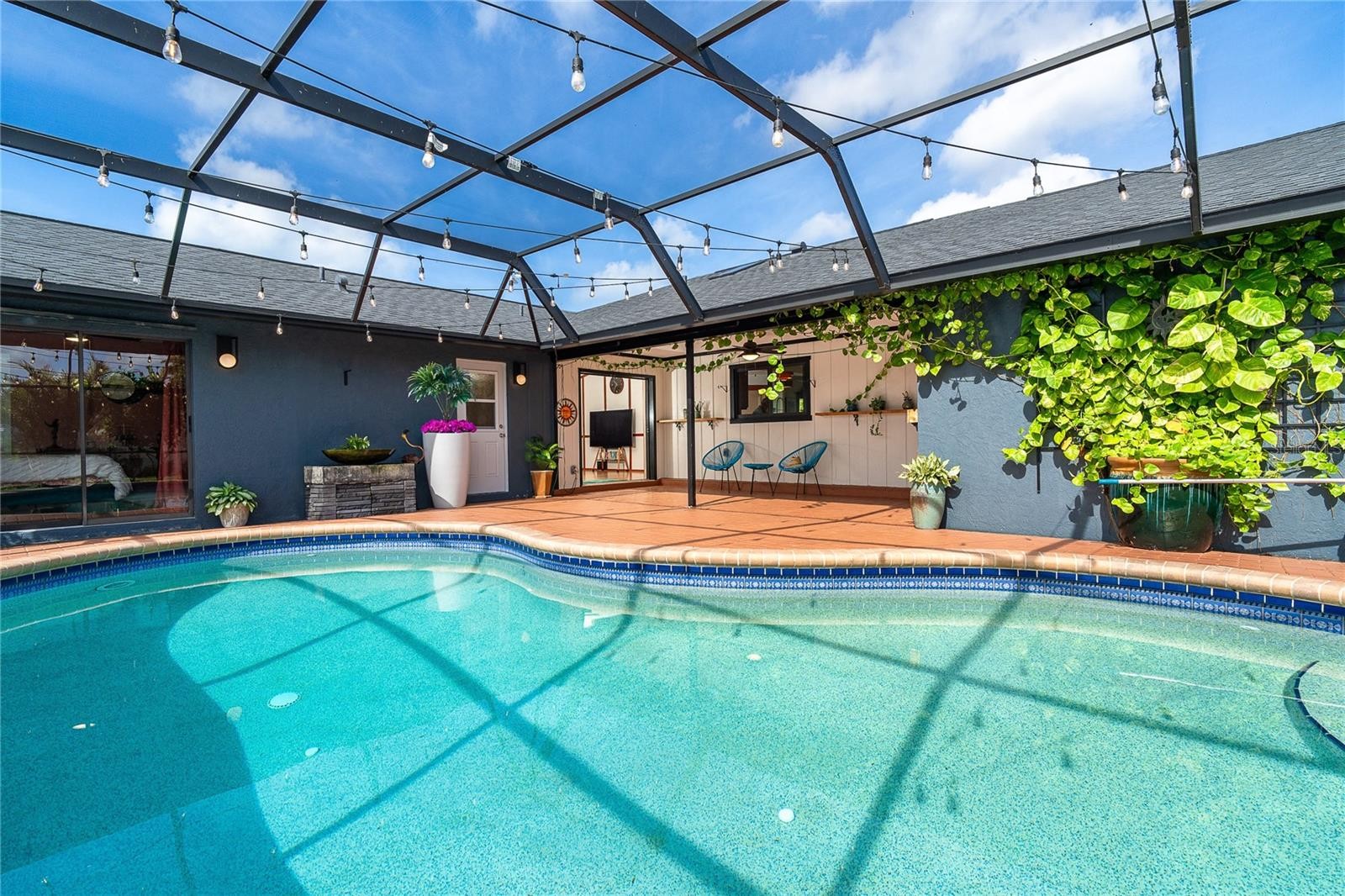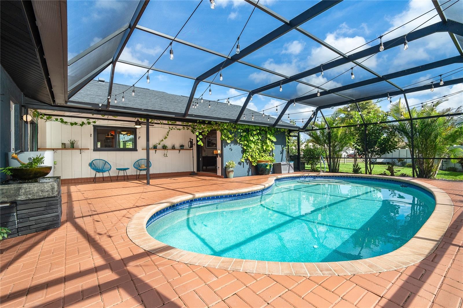 One or more photo(s) has been virtually staged. Welcome to this beautifully upgraded 3-bedroom, 2-bathroom home situated on an expansive nearly half-acre estate-sized lot—offering ample space to create your own private oasis. The fully fenced yard features three tranquil fountains and lush landscaping. This meticulously maintained home boasts major system updates, including a new roof and AC in 2022, a 2023 hot water heater, and a partially rebuilt and repainted pool cage in 2024. The exterior was freshly painted in 2023, and the pool lanai and front patio were refreshed in 2022 with new deck paint. Inside, enjoy luxury wood laminate flooring and new baseboards (2023) throughout the formal areas and bedrooms. The primary suite has been completely reimagined, featuring a reconfigured walk-in closet, a spa-inspired bathroom with custom tile walk-in shower, quartz dual-sink vanity, new cabinetry, designer tile flooring, wood plank ceiling, floor-to-ceiling tile, and updated plumbing and lighting fixtures. The guest bedroom was also fully updated in 2023. The kitchen is a showstopper, featuring elegant cabinetry with pull-out drawers, an extended quartz island, oversized sink with designer faucet, premium stainless-steel appliances, stylish backsplash, and modern pendant lighting. Additional upgrades include designer ceiling fans, new rain gutters, an exterior backflow preventer, and a custom wood slat feature in the family room. Located just a short distance to Lemon Bay Park and historic Dearborn Street, enjoy nearby boutiques, outdoor entertainment, and fine dining. Within 10 minutes, you’ll find pristine Gulf Coast beaches and marinas—perfect for boating enthusiasts. The Gulf offers world-class fishing and endless adventures, right at your fingertips. Pine Lake is a quiet enclave of just 90 homes—a deed-restricted community served by Englewood public water and sewer, offering peace of mind and a true sense of neighborhood charm.