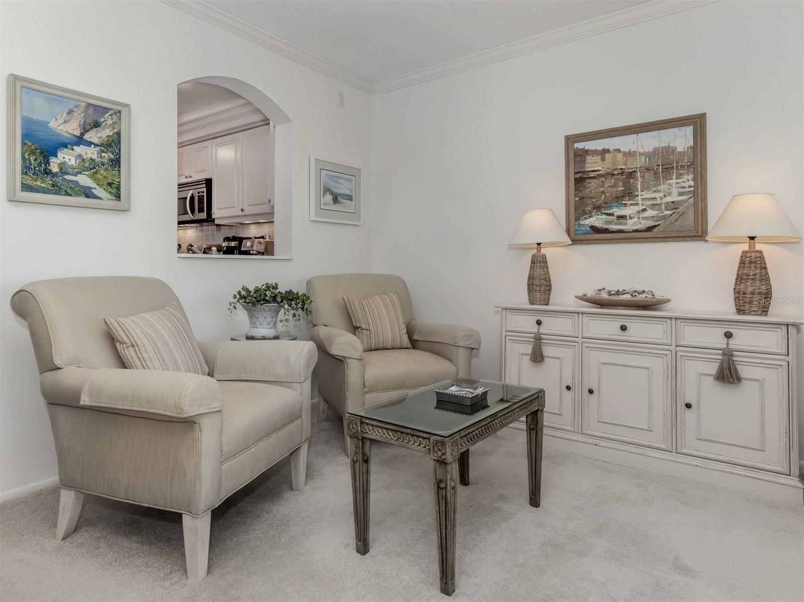 Experience coastal living at its finest in this beautifully updated end-unit residence, showcasing serene water views. In meticulous condition throughout. Nestled within the exclusive and sought-after Bella Costa community on Venice Island, this spacious 2-bedroom, 2-bath condominium offers exceptional comfort and style in one of the area’s most desirable locations. Step inside to a bright, inviting separate dining area. Adjacent find the well-sized kitchen featuring stainless steel appliances, granite countertops, and premium cabinetry overlooking the spacious living room, a great room to entertain and enjoy the wonderful Harbor Bay views. This generous living area flows seamlessly into an enclosed lanai, enhanced by floor-to-ceiling impact-resistant windows that frame lush garden scenery and the vibrant Intracoastal Waterway, perfect for relaxing or entertaining. Elegant plantation shutters and tasteful draperies elevate the home’s coastal sophistication, while the end-unit placement ensures added privacy and natural light. Bella Costa residents enjoy an unbeatable downtown lifestyle, located just steps from the Venice Theatre, charming boutiques, top-rated restaurants, and a short bike ride to Venice’s pristine beaches. With completed structural engineering and strong financials, Bella Costa offers peace of mind and long-term stability. This is an exceptional opportunity to own a move-in-ready waterfront retreat in the heart of Venice Island. Furniture included and most other items to be left as a courtesy to the buyer. Schedule your showing today and make this beautiful place your own.