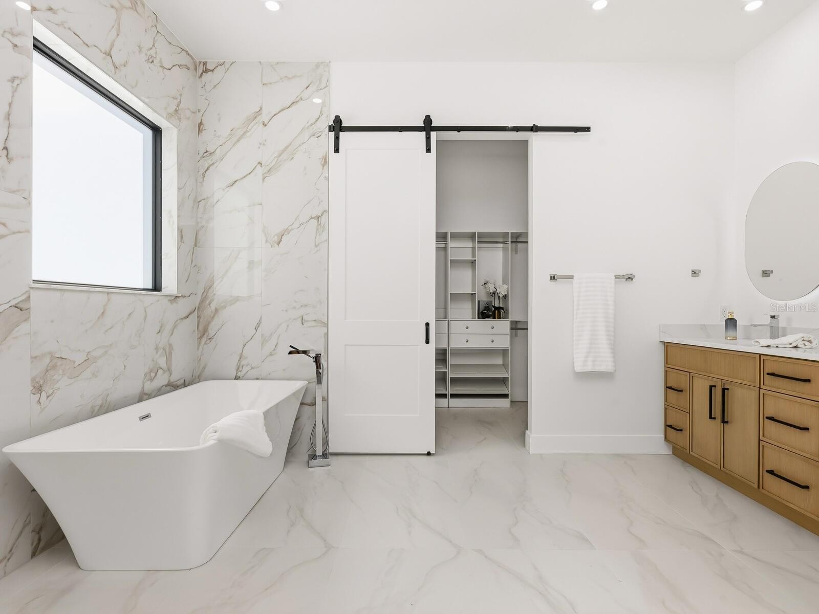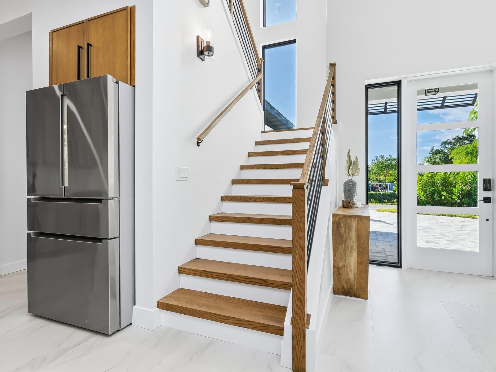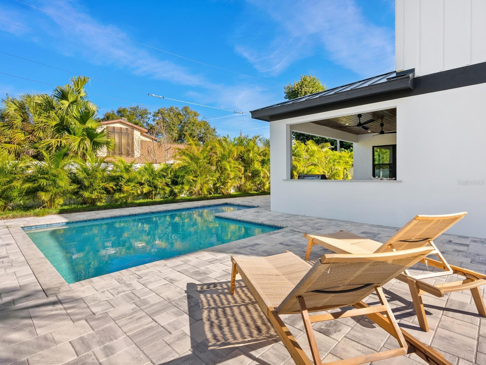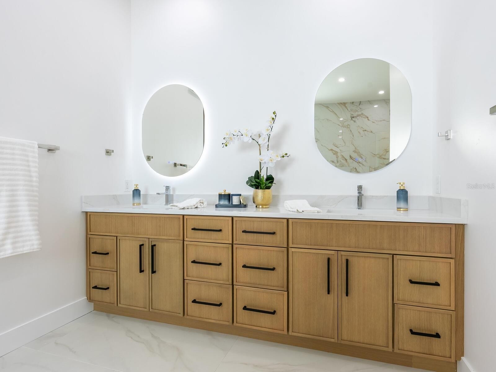In the well-established Loma Linda Park neighborhood in Sarasota, this new construction, Divald Homes custom-built two-story home offers a blend of modern design and traditional elements. The home is ideally near downtown Sarasota, Siesta Key and Sarasota Memorial Hospital, with no deed restrictions or HOA fees. The home features four bedrooms and three baths, including a spacious primary suite on the main floor. The open-concept floor plan featuring a 24-by-48-inch modern floor tile throughout, large sliding doors and windows offers a light-filled welcoming space ideal for entertaining. The main floor includes a gourmet kitchen, dining area, living room, private den/bedroom 4, primary suite with an ensuite bath and a dedicated laundry room. The chef’s kitchen is a centerpiece, showcasing Bosch appliances, an oversized island with waterfall quartz countertop, and custom floor-to-ceiling full-overlay cabinetry in a beautiful honey-stained wood tone. The living room is highlighted by a striking marble tile accent wall with custom wood shelving and modern designed 42-inch linear electric fireplace. The living room opens seamlessly to the lanai, complete with an outdoor kitchen, including a gas grill, refrigerator and sink. You will also enjoy the pool with sundeck, oversized outdoor patio and a beautiful backyard with lush native plantings. A convenient pool bath offers direct access from the lanai and the private den. The dining area is elegant and inviting, featuring a statement iron chandelier and a wall of windows overlooking the backyard. Just off the kitchen, the main-floor primary suite serves as a private retreat with a luxurious en-suite bath featuring a marble stone accent wall, a large walk-in shower with seamless glass enclosure, a sculptural slipper tub, double vanity with quartz countertops, natural wood cabinetry, LED mirrors and a spacious walk-in closet with custom built-ins. The laundry room is conveniently near the oversized two-car garage with 12-foot ceilings, large windows for natural light and direct access to the side yard. Upstairs, an ornate wrought-iron and hardwood staircase leads to two additional bedrooms, a beautifully finished guest bath and a versatile flex room ideal for a game room, study or guest accommodations. This thoughtfully designed home offers refined finishes, flexible living spaces and an exceptional location, ideal for enjoying the Sarasota lifestyle.