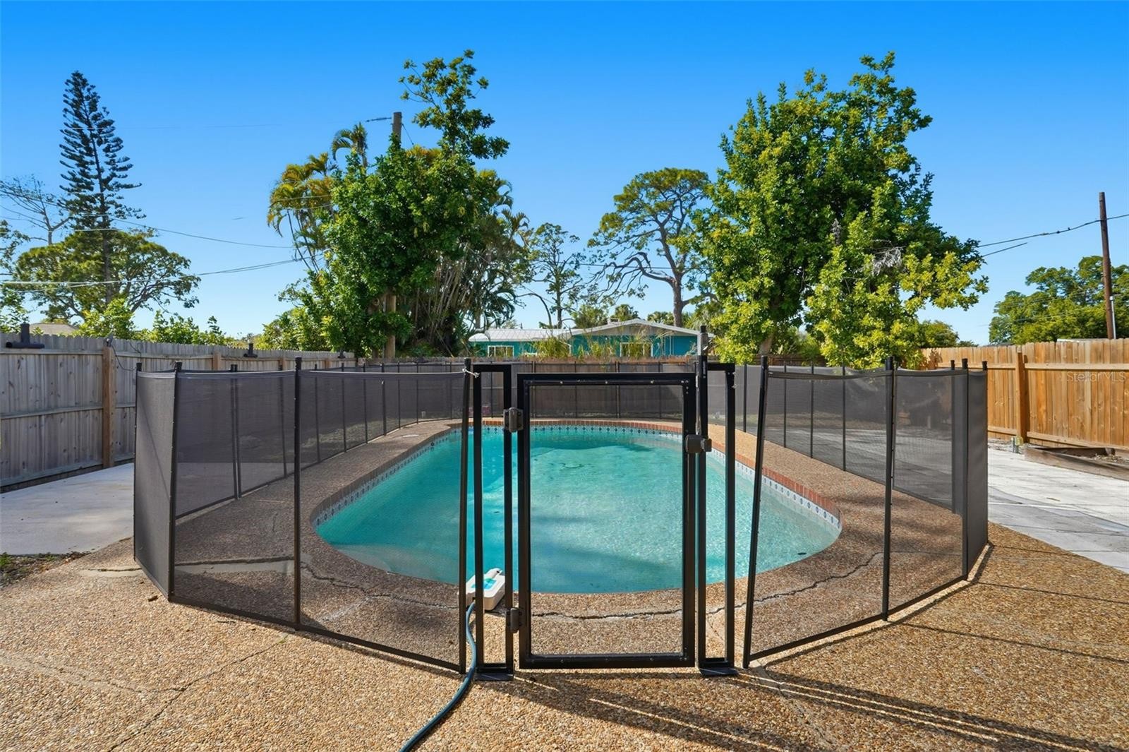 One or more photo(s) has been virtually staged. Charming 1-story home featuring 3 bedrooms and 2 bathrooms with an inviting open layout. The kitchen offers a convenient bar overlooking the living space, perfect for casual dining and entertaining. Step outside to your own private oasis with a fenced-in pool and a spacious wood-fenced backyard, ideal for relaxing or enjoying outdoor fun.