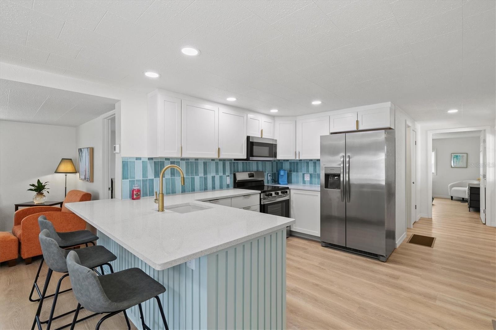 Step into this charming, FULLY FURNISHED 2-bedroom, 2-bath manufactured home with all new furniture, just minutes away from the famous SIESTA KEY BEACH in sunny Sarasota, Florida! Located in the highly sought-after Southwinds 55+ CO-OP community, this TURNKEY beauty has been completely updated and is ready for you to move right in and start enjoying the Florida lifestyle, with NO LOT RENT! From the moment you walk in, you'll notice the spacious and bright feel of this home, with two spacious bedrooms, with the master bedroom featuring a WALK-IN CLOSET. Both bathrooms have been beautifully remodeled in 2025, giving them a fresh, modern vibe. The brand-new kitchen (also redone in 2025) is a showstopper, complete with sleek QUARTZ COUNTERTOPS and shiny NEW STAINLESS STEEL APPLIANCES, making it the perfect place to whip up your favorite meals or entertain guests. The NEW VINYL PLANK FLOORING throughout adds a modern touch that ties everything together perfectly. This home has had all the heavy lifting done for you! With completely NEW PLUMBING and ELECTRICAL (2025), you can rest easy knowing everything is up to current standards. The HVAC system, which was installed in 2018, has been reinspected and is still in excellent condition, keeping you cool during those hot Florida days. Plus, a NEW-METAL ROOF and ALL NEW EXTERIOR SIDING are ready to stand up to whatever the weather throws your way, and the updated HURRICANE IMPACT DOORS AND WINDOWS add extra peace of mind. The NEW WATER HEATER (2025) adds even more efficiency to the home. Need some space for your laundry? No problem! The spacious laundry room located inside of the home has WASHER AND DRYER INCLUDED. There’s also a BRAND NEW CARPORT with a metal roof for sheltered parking and a NEW FRONT DECK that’s perfect for relaxing outdoors with your morning coffee. Plus, there’s a NEW STORAGE SHED for all your beach and outdoor gear. Oh, and did we mention this home is in an X FLOOD ZONE? No flood or water damage from recent storms – just peace of mind. Living in Southwinds means you’re part of an active, friendly community with fantastic amenities like a heated community pool, shuffleboard courts, horseshoe pits, a library, and a recreation hall. There’s guest parking and designated spots for RVs and boats, so you can make the most of your time in Sarasota, all for the LOW MONTHLY HOA fee of only $195! This move-in-ready gem is calling your name – don’t miss the chance to make it yours and start enjoying the best of Florida living today!