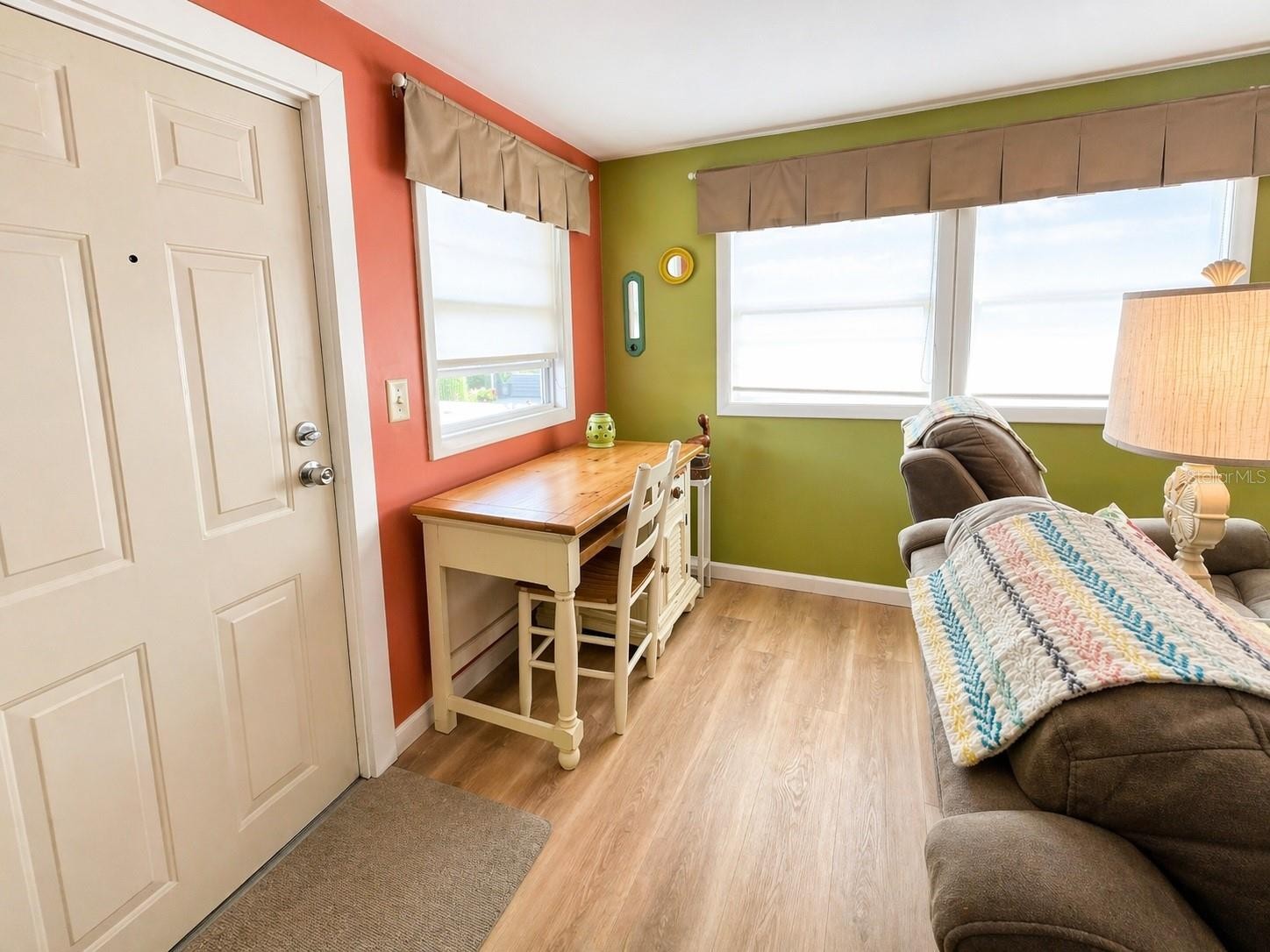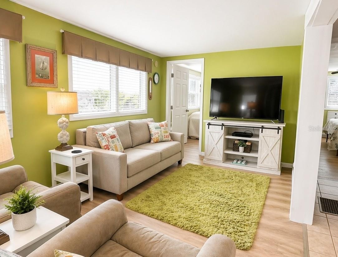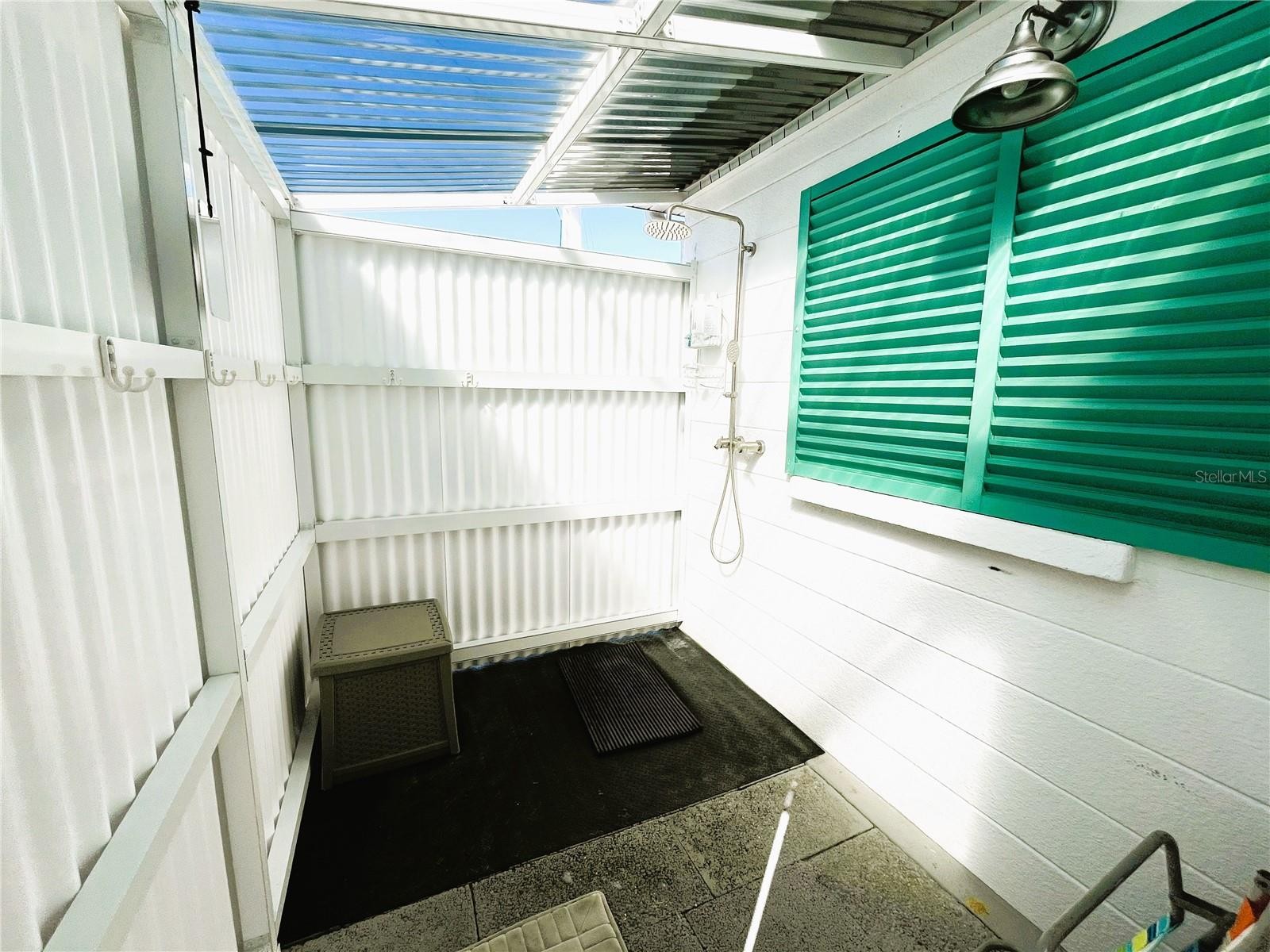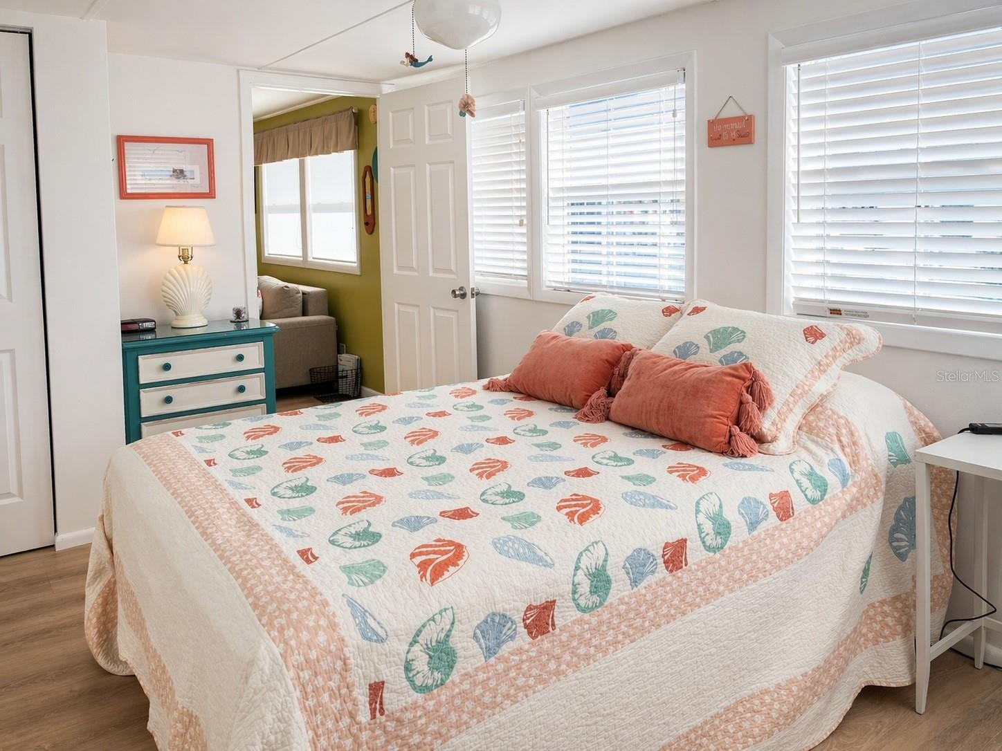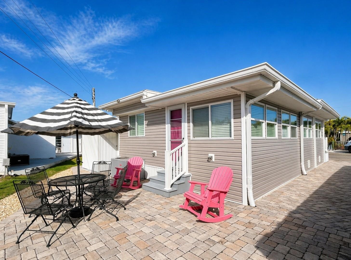 This charming 2-bedroom home features a roll-down garage door leading into a secure, block-constructed carport with metal gates and an epoxy floor—creating a rare and highly functional space for vehicle storage, golf carts, and everyday living. The block design provides privacy and protection and leads to a dedicated half bath and combined laundry area. Inside, this beachside cottage offers warmth and personality throughout. Plantation shutters, updated flooring (approximately 3 years old), and thoughtful details create a comfortable coastal feel. The primary bedroom features California Closets (2025) with a king bed. The spacious guest bedroom has a queen adjustable bed. The home is being sold furnished, including a fun yellow beach bike. While the home features one full bathroom inside, additional conveniences include an outdoor shower room and a separate half bath located within the block utility structure. Outdoor living is equally inviting, with gorgeous paver areas in both the front and back, an elevated front porch with railing and charming shaker-style accents, and a private rear patio perfect for relaxing or entertaining. Additional updates include A/C (2019), ductwork and blower (2025), and a concrete pad beneath the entire home. Located in Trailer Estates, a Special Park and Recreation District governed under Chapter 418, Florida Statutes, residents own their land so there is no lot rent, CDD, or HOA fees. The annual park tax covers cable, high-speed internet, trash pickup, fire and rescue services, and access to outstanding amenities, including a marina with rentable boat slips, private beach, pool, hot tub, fitness center, shuffleboard, bocce ball, pickleball, woodshop, and nearly 60 active clubs and social events. Experience one of Sarasota Bay’s most vibrant and welcoming 55+ communities.