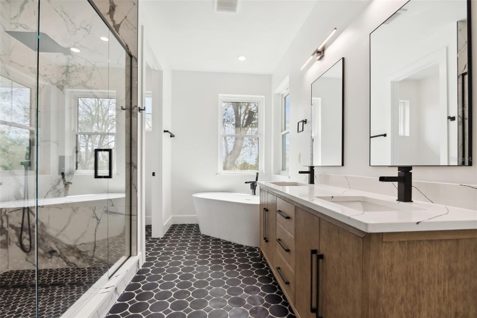 Some Photos Have Been Virtually Staged. HUGE PRICE REDUCTION ! Outstanding opportunity to own a brand-new luxury home in the heart of Sarasota. This Well-Constructed 4-bedroom, 4 full bath custom built 2 story pool home boast 3628 sq ft of living area plus a 2-car garage with epoxy finish. From the paver driveway and walkway with wood ceiling to the elegant hurricane rated Impact glass front door you will feel the quality immediately. The luxury vinyl flooring is carried thru the entire main living area and all 4 baths have upgraded ceramic tile. The gourmet kitchen is very open to all areas of the bottom floor and features quartz countertop, solid wood cabinets with soft closing drawers, high-end Thermador SS appliances including oven, microwave, large refrigerator and gas cooktop on separate kitchen island including custom hood and sitting area also featuring a large quartz countertop. All windows and doors are hurricane rated Impact glass for additional strength and safety. The dining room/living room have high soaring ceilings that adds a feel of spaciousness and there is also a large family room that overlooks the pool and paver deck area. The 2nd bedroom is on the 1st floor along with a guest/pool bath with décorative fixtures and a large shower. A generous laundry room with washer/dryer, upper and lower cabinets with sink is conveniently located adjacent to the garage and has access from the garage and from the main living area. There is storage space under the staircase and includes a tankless water heater. The stylish stair rails lead to a very efficient 2nd story loft area with 2 in-floor electrical outlets and overlooks the dining/living area. The large primary bedroom has a private covered balcony with wood ceiling and overlooks the back yard pool area. The primary bath includes quartz countertop with double sinks, a large glass shower and a free-standing soaking tub and decorative fixtures. Bedroom #3 includes an en-suite bathroom with solid countertop and shower with floor to ceiling tile. Bedroom #4 has private access to bath #4 which includes solid surface counter and tub with floor to ceiling tile. Outside the home is fully fenced with high quality vinyl for privacy and landscaped with large tropical trees. There is a large brick paver courtyard area on the side of the home accessed from the 4 sliding glass doors near the kitchen and includes pre-plumbed for water, gas and electric as well as a pass-thru window from the kitchen. The private backyard is highlighted by the open-air saltwater pool, paver decking and lush landscaping. The exceptional location of the home gives great access to all services including shopping, restaurants, Sarasota Memorial hospital, Downtown Sarasota, Siesta Key and Lido world famous beaches and much more. Call today for your private showing.