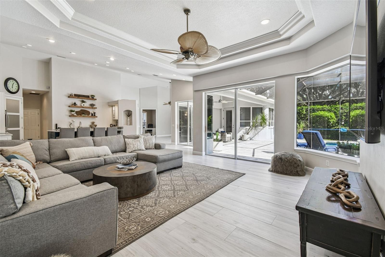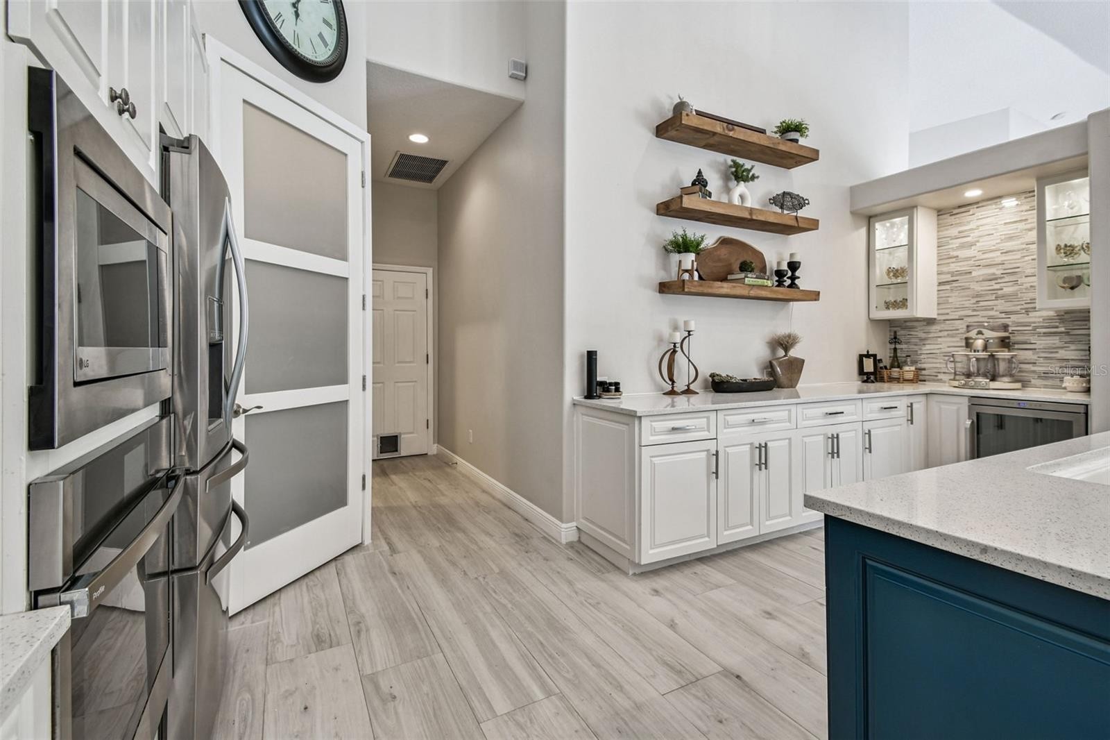 One or more photo(s) has been virtually staged. **A Modern Sanctuary in River Wilderness** This is the one you have been waiting for...Welcome to 2354 Little Country Road, where modern sophistication meets timeless Florida serenity. Tucked away on nearly half an acre of private preserve and shimmering water views, this beautifully remodeled 3–4 bedroom, 3 bath home offers privacy, peace, and effortless luxury within the exclusive, gated community of River Wilderness Golf & Country Club. Inside, you’ll immediately sense the light and openness — 16-foot ceilings, double tray details, and fully retractable glass doors that create a seamless indoor-outdoor flow. The expansive kitchen was completely updated with a grand quartz island seating six, sleek “smart” appliances, including a new cooktop, microwave, remote-start oven, dishwasher, and wine cooler. A large dining area — currently used as a flex space or office — can efficiently serve as a formal dining room, craft room, or 4th bedroom. Throughout the home, large-format neutral tile flooring adds warmth and sophistication. The primary suite, remodeled in (2021), is a true retreat featuring a spa-inspired bathroom with new vanities, a frameless glass shower with Bluetooth sound, a deep free-standing soaking tub with waterfall filler, and luxury finishes. The second bedroom also features an ensuite bath updated in (2022) with new tiles and a frameless shower door, while the third bath, updated in (2023), includes large-format glass tile, modern lighting, and a deep-soaking tub. The living room opens completely to the lanai — perfect for enjoying Florida’s indoor/outdoor lifestyle. Step outside to your private saltwater pool and spa, surrounded by new pavers and lush professional landscaping (2025). The covered lanai was expanded by 500 sq. ft. and enhanced with an outdoor kitchen, updated irrigation system, and new professional lighting, ideal for hosting gatherings or relaxing in total privacy with no rear neighbors. Additional updates include a brand-new roof (2023), Pentair salt cell and power unit (2023), and epoxy-finished 2½-car garage with ample room for a golf cart. Two newer A/C (2025) and (2019) ensures year-round comfort, while a fenced dog run provides a safe place for your pets to play. Every upgrade — from the flooring to the fixtures — was designed for beauty, function, and longevity. Beyond the home, River Wilderness Golf & Country Club offers an unmatched lifestyle. Enjoy an 18-hole championship golf course, a 27,000 sq. ft. clubhouse with dining, events, and a pro shop, a fitness center, tennis and pickleball courts, bocce ball, and a junior Olympic-sized pool complex. Country Club fee is optional --Residents also have access to storage for boat and/or RV and a community boat ramp with river access, walking trails, and gated security — all set within 1,500 acres of pristine natural beauty. This is more than a home; it’s a modern sanctuary designed for those who value peace, presence, and quiet refinement — in one of the most private, scenic water-view settings in River Wilderness.