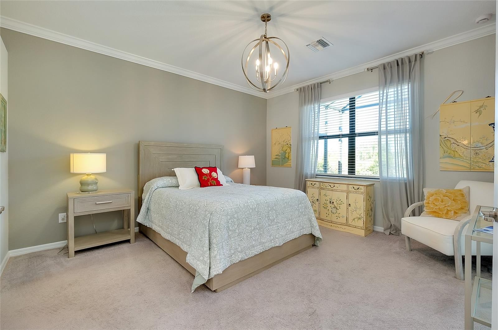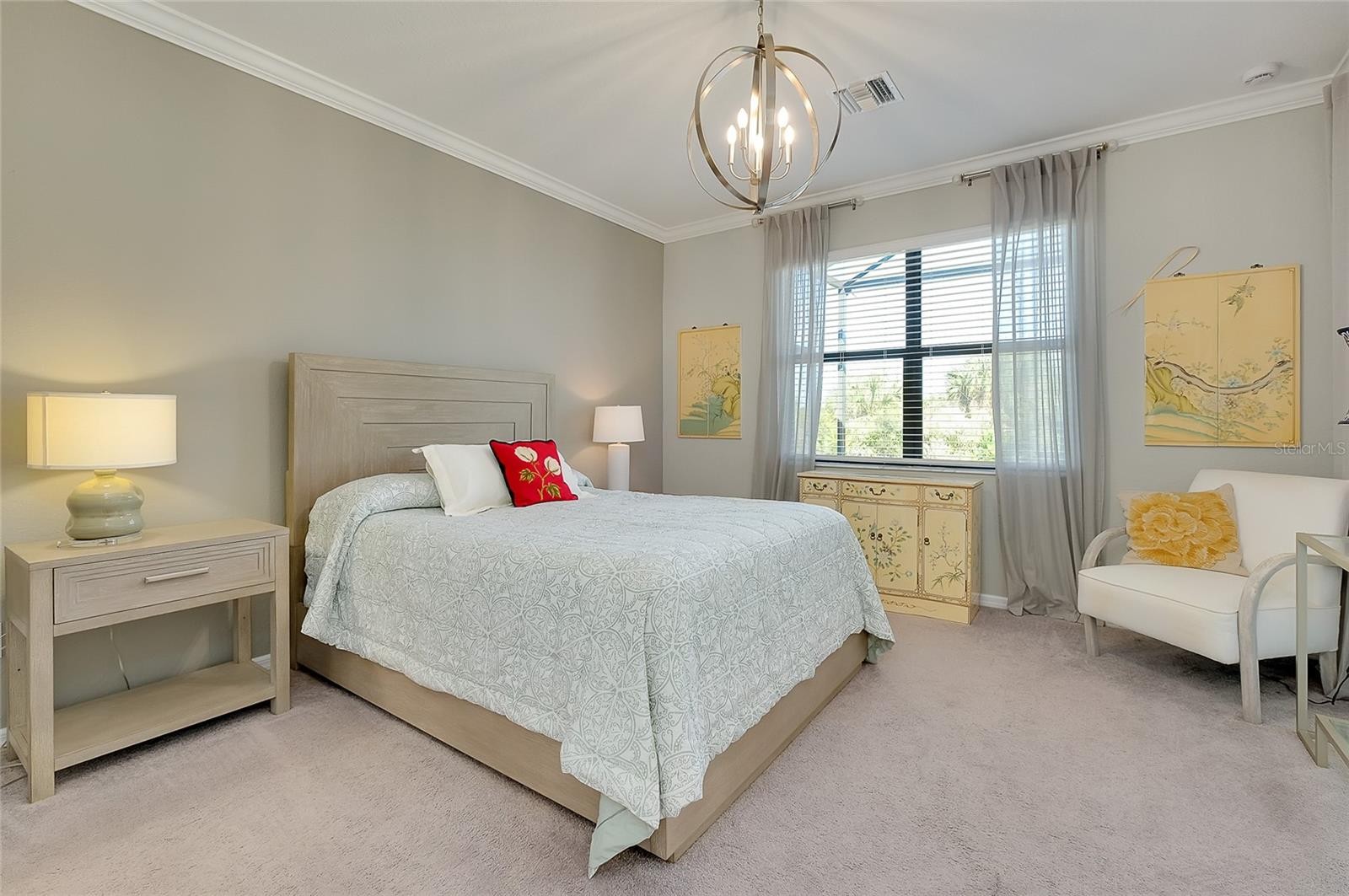 **IS ATTENTION TO DETAIL ON YOUR LIST OF HOME REQUIREMENTS?** Then this exceptional **turn-key villa** is the one you’ve been waiting for. Perfectly situated on a quiet **cul-de-sac**, this home offers a **rare premium setting** with tranquil **preserve views in the back** and a **lake view in the front**. Enjoy convenient access in and out of the community without driving through the entire neighborhood, while still being **minutes from the Clubhouse and amenities**. Located on the **lake side of Sarasota National**, where **golf membership is NOT required**. Curb appeal is immediate, enhanced by the front lake view and lush green space behind. Inside, you’ll discover a beautifully decorated residence that blends luxury with comfort. The welcoming foyer opens to an **open-concept floor plan** featuring **large rectangular tile flooring throughout the main living areas**, with plush carpet in the bedrooms and den. The kitchen is a chef’s delight, offering **granite countertops, stainless steel appliances, tile backsplash, raised-panel cabinetry, under-cabinet lighting, a transom window**, and **custom shelving in the closet pantry**—all designed for both style and function. Dining and living areas are equally impressive with **designer upgrades**, including a **shiplap accent wall, chair rail, framed mirrors, and crown molding** throughout the main living areas and primary suite. **Custom window treatments and upgraded lighting** further enhance the space. Step outside to the **extended, private lanai**, where preserve views, additional landscaping, generous spacing between neighbors, and a privacy screen create the perfect setting for relaxation or entertaining. The **spacious primary suite** features sliding doors to the lanai and an elegant en-suite bath with **dual sinks, a garden tub, and a walk-in shower**. Thoughtful upgrades include **designer lighting, a shiplap accent wall, framed mirrors**, and **custom closet shelving**. A second bedroom and full bath are thoughtfully positioned at the opposite end of the home for guest privacy. The **den/flex room** offers versatile space—ideal for a home office, media room, or overflow guests with a pull-out sofa. The laundry room is well-appointed with **additional cabinetry, a folding counter**, and **direct access to the two-car garage**. **Sarasota National** is a remarkable community spanning over **1,300 acres of preserved land**, lakes, and open space. As an **Audubon International–Certified Sanctuary**, it offers a truly exceptional lifestyle. Amenities include a **resort-style pool and spa, Tiki Bar and restaurant, tennis, pickleball and bocce courts, coffee lounge, library, card and meeting rooms**, and more. A **7,000-square-foot fitness center** with classes and day spa complements the impressive **30,000-square-foot clubhouse** with dining and breathtaking views. The **10-hole championship golf course**, surrounded by native wetlands and preserves, provides a stunning backdrop for both play and relaxation. Ideally located just minutes from **Wellen Park**, the **Atlanta Braves Spring Training Stadium**, beautiful Gulf beaches, and **historic downtown Venice**. **Schedule your private showing today and experience this exceptional villa for yourself.**