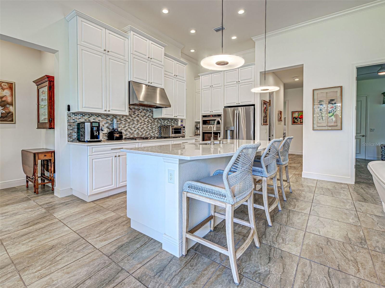 Welcome to ARIA in lovely Nokomis, Florida. Developed by Neal Signature Homes. A deed restricted, gated community with gorgeous resort style amenities including clubhouse, pool, state of the art fitness center, pickleball and entertainment area that overlooks lake and fountain. On-site community manager. Presenting the beautiful Vicenzo Model built in 2022 with 2667 sq. ft., (heated and cooled) 3576 sq. ft. total. 3/BEDROOMS, 3/BATHROOMS, OFFICE, and 2-CAR GARAGE. FEATURING A PRIVATE IN-LAW/GUEST SUITE W/SEPARATE ENTRANCE. BEING OFFERED FURNISHED (or unfurnished-buyers preference). Great room boasts 14 ft. ceilings, crown molding, ceramic tile flooring throughout most of the home (primary bedroom and guest bedroom have carpet). Push back the great room fully collapsing sliders and enjoy the 28ft. brick pavered lanai, overlooking large backyard. Kitchen includes custom pantry, quartz counters, gas cooktop, stainless appliances and ample cabinetry. Larger center island with power w/room for 3 barstools. Dining area adjacent to kitchen. Dedicated office could be tailored to your needs. Primary Bedroom, En-Suite and Walk-In closets are a true trifecta! Crown molding, room darkening shades. En-Suite sports granite, dual sinks, free standing tub and a HUGE shower. HIS/HER closets are amazing. So big it’s like having 2 additional rooms! Large 2nd bedroom w/walk-in closet and room darkening shades. The 3rd Bedroom/In-law suite boasts bedroom with built-in closets that span one wall, custom bathroom, custom kitchenette with quartz counter and a family room. Great area for guests, Mom and Dad, in-laws, college student or a live-in. Don’t forget it’s own dedicated entrance! 2 Car Garage has built-in storage, extra refrigerator/freezer and 2 ceiling storage units. The entire home has IMPACT WINDOWS. Exterior is a handsome combo of block with stone accents. Lush landscaping/ mature plants and trees. ARIA is located close to beaches, Venice Island, I-75, shopping, restaurants and the new Sarasota Memorial Hospital. Make a great decision-come tour this home, IT IS ONE OF A KIND!