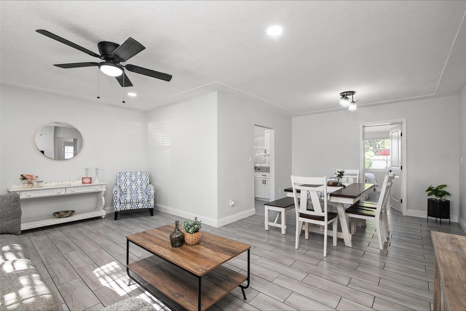 Welcome to this beautifully updated home located in the heart of Bradenton! This charming 4-bedroom, 2-bath residence offers 1,248 square feet of thoughtfully designed living space and is move-in ready. Inside, you’ll find a bright and modern interior featuring wood-look porcelain tile flooring throughout, creating a seamless and elegant flow. The fully renovated kitchen is a true highlight, showcasing granite countertops, wood cabinetry, and stainless-steel appliances perfect for both everyday living and entertaining. Both bathrooms have been tastefully updated with contemporary finishes, adding comfort and style to the home. The split-bedroom layout provides privacy and functionality for families, guests, or a home office setup. Step outside to a spacious, fully fenced backyard ideal for pets, gatherings, or simply enjoying the Florida sunshine. An additional storage shed offers extra convenience and functionality. With no HOA and no deed restrictions, this property provides flexibility and freedom for homeowners. Conveniently located near shopping, dining, schools, and just a short drive to the beautiful Gulf beaches, this home combines comfort, location, and value. Don’t miss the opportunity to make this exceptional property yours!