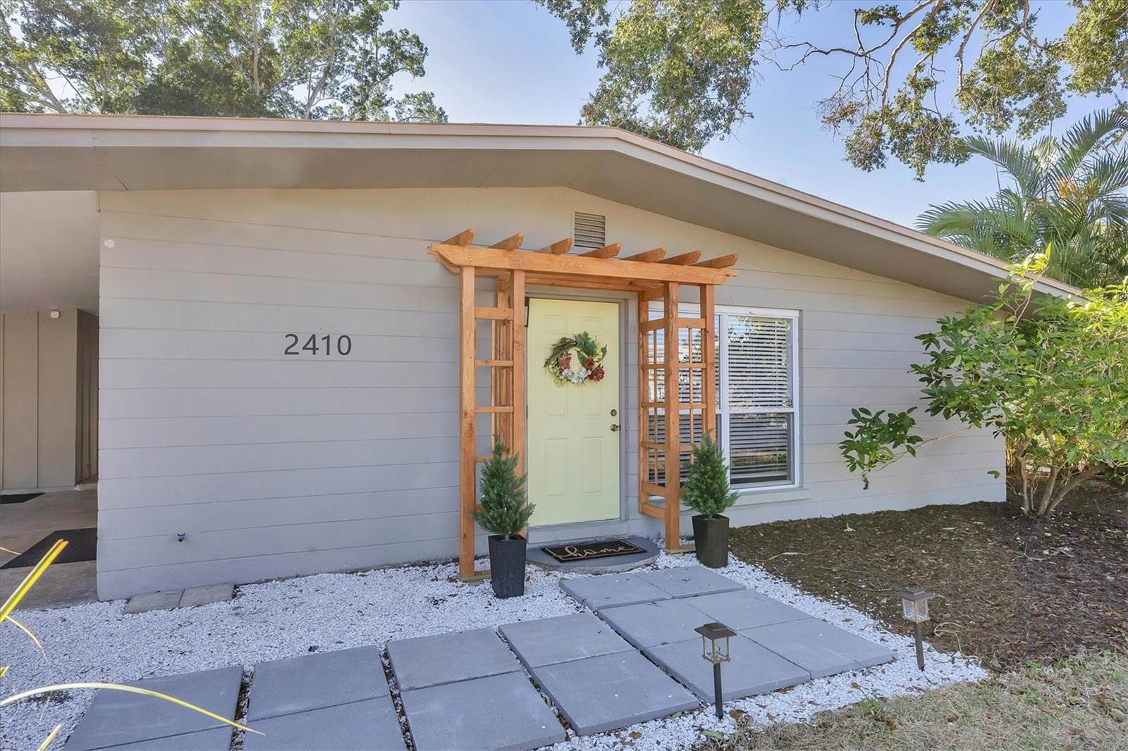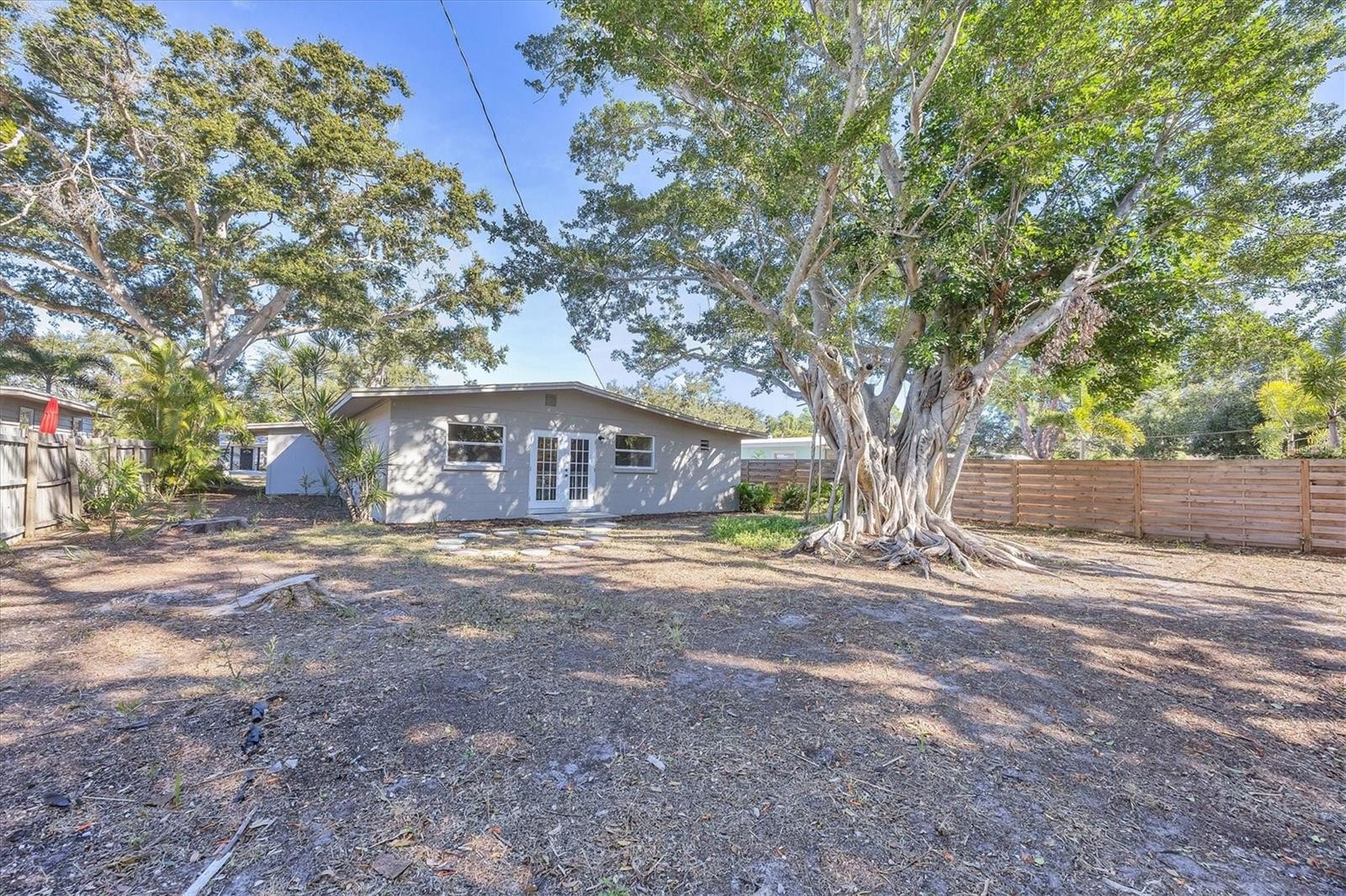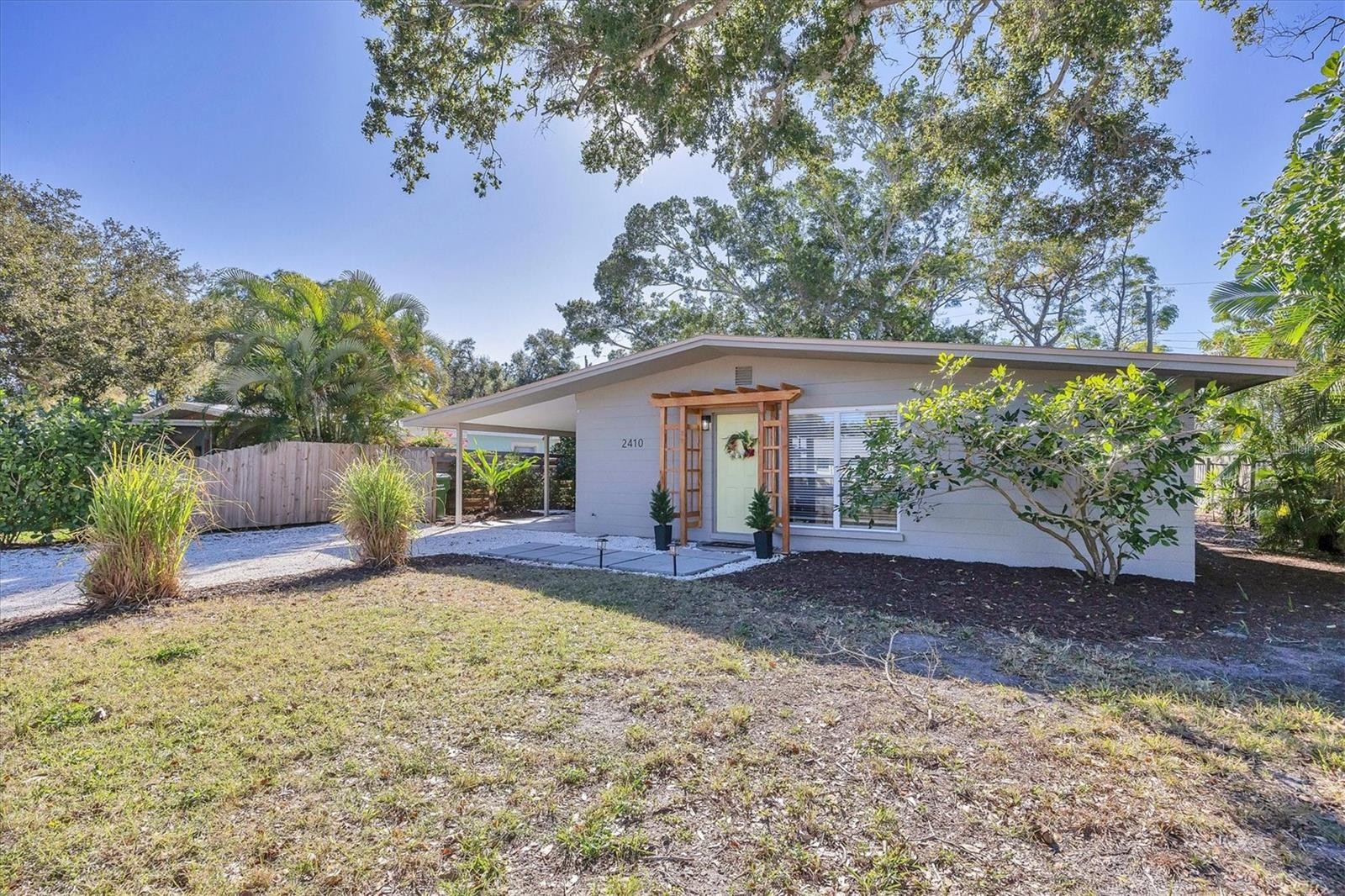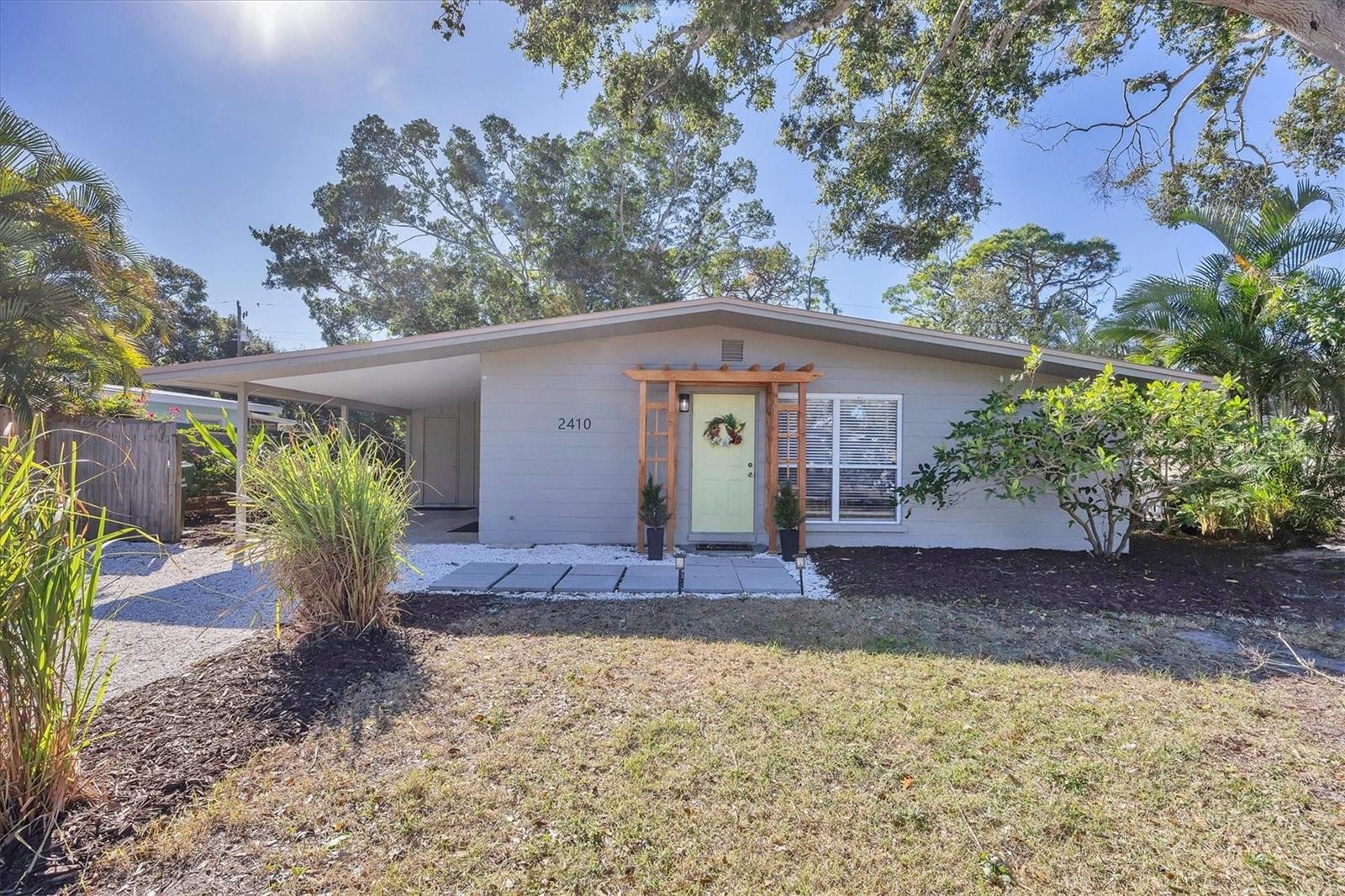STEP BACK IN TIME with this Mid-Century Modern home located in a great mid-century community, very convenient to Downtown Sarasota, Sarasota Memorial Hospital, Publix, Public transportation, Schools, Siesta Key, and 1-75, and just blocks from the Legacy Trail. Come take a tour of this 3 bedroom, 2 FULL bath home with study/office/nursery room off the huge primary bedroom, a Kitchen with a walk-in pantry and breakfast bar, stainless appliances, a LARGE integrated storage room/workshop sporting an outside entrance as well as a laundry/utility room. High ceilings compliment your new home which has a NEW ROOF, NEW luxury vinyl flooring, NEW Electric panel, Replacement windows (Not new or impact but not original windows either), NEW paint inside & outside AND updated bathrooms. As a bonus, we are situated on a large, partially fenced lot with a BEAUTIFUL LARGE Banyan Tree as a focal point of the backyard that is just waiting for your grill, kid’s playard or garden oasis. This property is in a most desirable "X" Flood zone and has an oversized carport. Given the home's central location, great floor plan, large rooms and don't forget the updating...this home will probably go under contract quickly SO, don't wait! Call today! Priced right at $399,000.