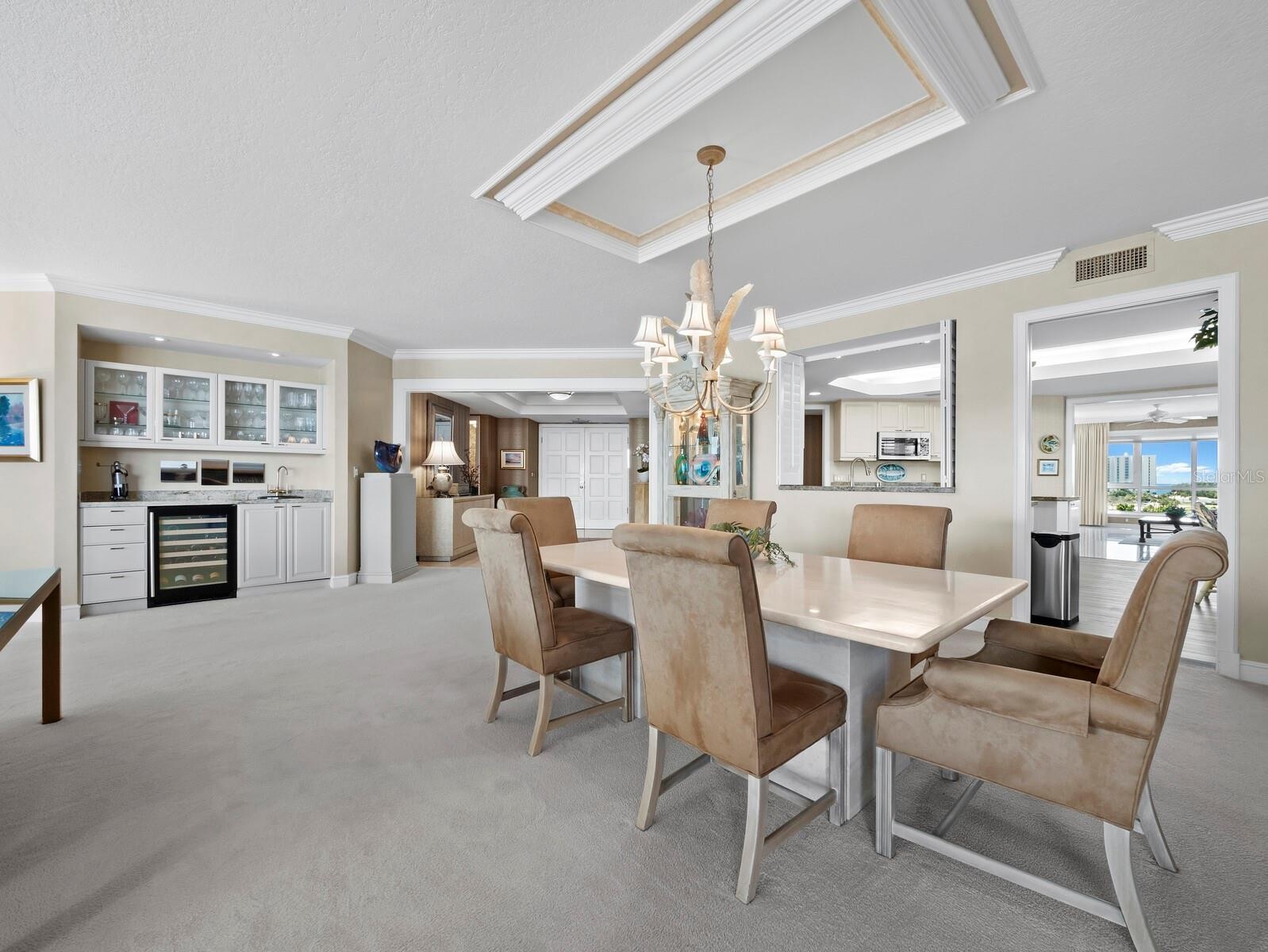 This corner 3 BR / 3½ BA + Family Room Penthouse in Marina Bay on Longboat Key offers 3,825 sq. ft. of comfortable living with exceptional views of Sarasota Bay and tropical landscaping. A private elevator opens to a bright, open floor plan with tray ceilings, neutral finishes, and walls of glass that bring the outdoors in. The spacious living room extends to a wrap-around terrace, ideal for dining or relaxing. The formal dining area with wet bar connects to the updated kitchen, featuring custom cabinetry, stone counters, stainless appliances, a center island, and breakfast nook. The split-bedroom layout provides privacy, with a primary suite that includes bay views, terrace access, a custom walk-in closet, and a bath with dual vanities, soaking tub, and glass shower. Two guest suites each have their own baths and generous closets. Marina Bay has new roofs and includes 2 under building parking spaces. Marina Bay offers tennis and pickleball courts, heated pool & spa, on-site management, and 24-hour security. Ownership also includes deeded access to the Bay Isles Beach Club. For those seeking more, optional membership to the Longboat Key Club provides access to championship golf, a world-class marina, tennis, spa, dining, and social amenities.