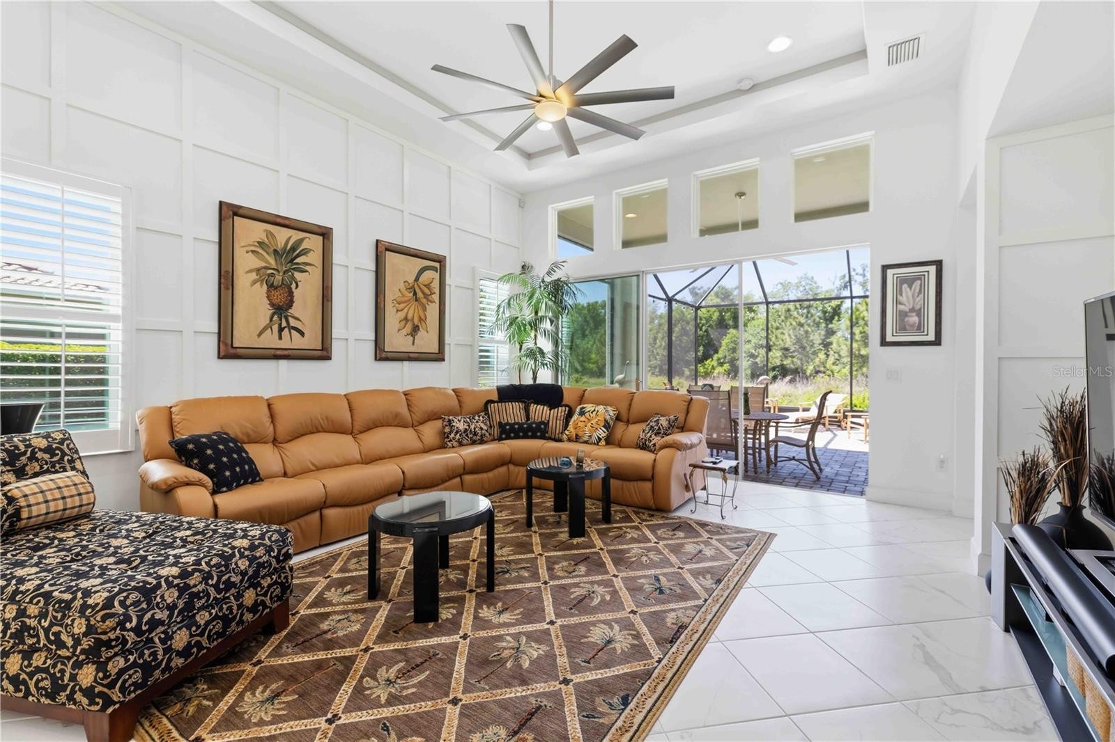 Welcome to an exceptional residence in the gated Arbor Grande of Lakewood Ranch, where timeless design and modern sophistication come together in perfect harmony. Crafted by CalAtlantic, this beautifully appointed 2-bedroom, 2-bath + office villa offers an elevated lifestyle defined by elegance, comfort, and ease. From the moment you enter, you are greeted by stunning plantation shutters, soaring 10-12-foot ceilings, refined tray details, and a seamless flow of natural light through expansive sliding glass doors crowned with transom windows. Bright inviting porcelain tile flooring extends throughout the home, creating a bright, cohesive aesthetic, while custom accent walls in the great room and primary suite add depth and designer character. At the heart of the home, a thoughtfully designed kitchen showcases quartz countertops, 42 inch upper cabinetry, spacious island and gas cooktop—perfectly positioned to connect with the dining and great room spaces for effortless entertaining. The owner’s suite is a serene retreat, featuring elegant tray ceilings, a striking accent wall, and a spa-inspired bath complete with dual vanities and a frameless glass shower. (The fireplace in primary bedroom does not convey.) A private enclosed den with barn doors offers versatility as a functional home office or welcoming guest space. Carefully selected light fixtures and ceiling fans throughout the home also adds to the charm Step outside to your extended screened lanai, where tranquil preserve and nature views provide a peaceful backdrop for everyday living. Pre-plumbed for natural gas, this space is ready to become your dream outdoor kitchen and entertaining haven. An outdoor grill is included for your outdoor entertainment needs. This homesite enhances both privacy and the connection to nature. Residents of Arbor Grande enjoy a curated collection of amenities including a clubhouse, fitness center, heated pools and spa, pickleball and bocce courts, and a private dog park—all just moments away. With direct access to Bob Gardner Park and close proximity to fine dining, shopping, and the Gulf Coast’s renowned beaches, the location is as desirable as the home itself. Adding to the appeal is a truly maintenance-free lifestyle, with the HOA providing exterior maintenance, landscaping, and yard care—allowing you to focus on what matters most, a serene well maintained community and home. Move in ready All measurements to be verified by buyers and their realtor.