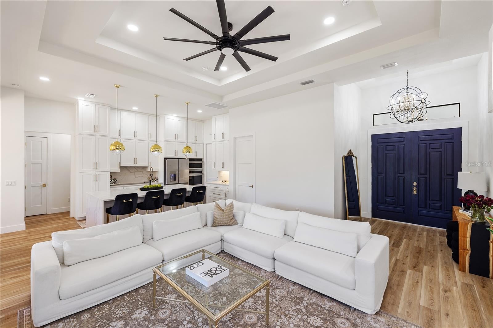 Affordable Luxury in the PRIME LOCATION of North Port, Florida! Discover refined living in this beautifully designed home offering over 2,700 square feet of thoughtfully crafted space. With high-end finishes this property delivers comfort, style, and value all in one. 4 Generously Sized Bedrooms, 2 Well-Appointed Bathrooms and 2-Car Garage! From the moment you step inside, you'll notice the impressive high and tray ceilings that enhance the open, airy layout. The main living area is warm and inviting, featuring an electric fireplace with custom built-ins-perfect for cozy evenings or hosting guests. The chef-inspired kitchen is a true showpiece, boasting sleek quartz countertops and quartz backsplash, a large waterfall island, high end appliances makes perfect space for entertaining. The luxurious primary suite offers a spacious retreat featuring a large walk-in closet, dual vanities, stunning freestanding soaking tub, and a beautifully designed walk-in shower for a true spa-like experience. Two well-appointed guest bedrooms, offering comfort and convenience for family and or visitors. An additional - 4th versatile bedroom provides the perfect space for a private home office, study, or extra guest room to suit your needs. A convenient indoor laundry room adds everyday functionality. Enjoy added value with a whole-house R/O REVERSES OSMOSIS SYSTEM insuring quality water throughout the home. Step out to the & screened lanai and unwind in your private partially fenced backyard retreat. Backing up to a peaceful canal - you'll appreciate the added privacy and relaxing water views. Ideally situated in North Port, FL with an easy access to I-75 you're just minutes from the future Sarasota Memorial Hospital, shopping, dining, Downtown Wellen Park, North Port Aquatic Park, and the beautiful Gulf Coast beaches. No HOA's, no CDD's. This home combines elegance, comfort, and location-don't miss the opportunity to make it yours!