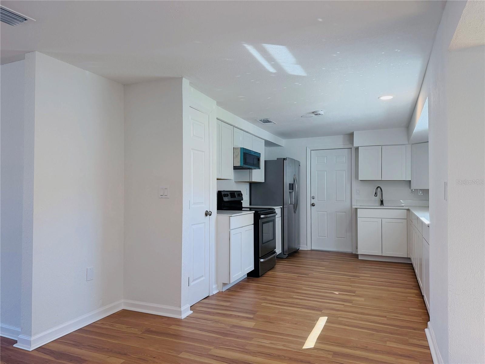 One or more photo(s) has been virtually staged. Welcome to this bright and beautifully remodeled 2-bedroom, 2-bath home with a versatile multifunctional room. Luxury vinyl plank flooring flows throughout, and a clean neutral palette is ready for your personal touches. The kitchen features stainless steel appliances, casual dining space, and an easy flow into the living areas. An enclosed patio opens to a large back yard that could be fenced for added privacy. A circular driveway graces the front of the home. One car attached garage with washer and dryer hookup. Practical updates include newer garage door, some newer windows, and roof replaced in 2022. No HOA; city water and sewer. Less than a mile from Venice East Golf Course and minutes to historical downtown Venice and the Gulf beaches, this well-maintained home is ideal for full-time living, seasonal retreats, or rental income. Move-in ready and priced for value—come see the charm and possibilities.