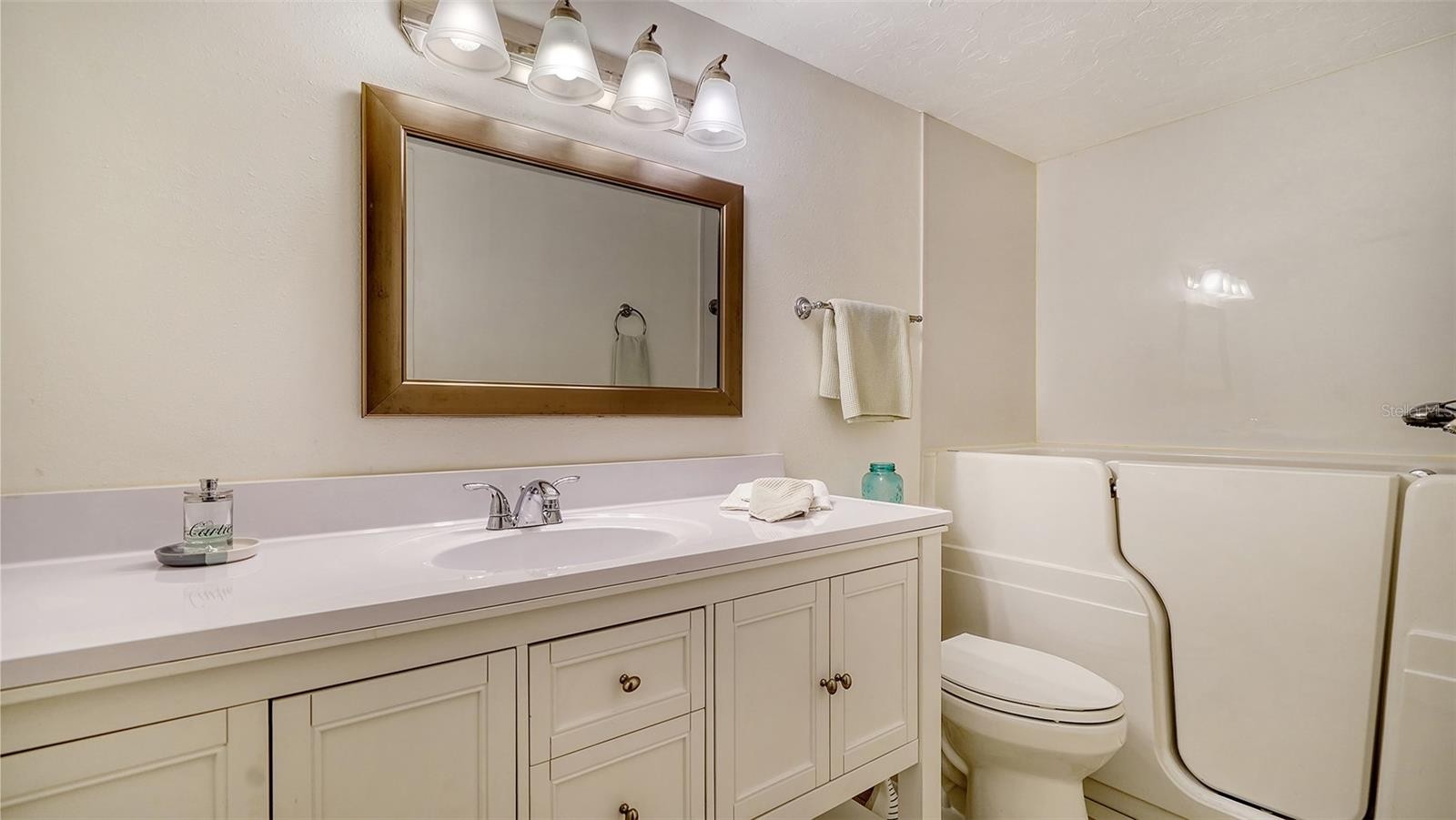Move right in and enjoy the Florida lifestyle in this beautifully updated, turnkey-furnished first-floor residence in Forest Lakes Village, a vibrant 55+ community in the heart of Sarasota. This spacious home features an open-concept layout ideal for both entertaining and relaxing. The kitchen offers ample cabinetry and additional storage space, while the living area opens to a generous all-season lanai with sliders for comfort and security. This peaceful space overlooks a private greenbelt filled with lush foliage, creating a serene backdrop for your morning coffee or evening wind-down. The residence includes many updates for peace of mind: updated electrical and plumbing, a tankless water heater, some hurricane-rated windows, and a luxurious Jacuzzi walk-in tub installed in 2020. The spacious primary suite features an updated en-suite bath and a large walk-in closet. The bedrooms are equipped with ceiling fans to keep you cool year-round, and the newer in-unit washer and dryer add everyday convenience. Your assigned covered parking spot is located closest to the building, and best of all, the property is not in a flood zone—no worries here! Forest Lakes Village is known for its beautifully maintained grounds and active lifestyle offerings. Residents enjoy a recently resurfaced geothermal heated pool with a new paver deck, a fully remodeled clubhouse with a fitness room, sauna, library, full kitchen, and social spaces. Outdoor amenities include gas grills, shuffleboard courts, and shaded seating areas perfect for gathering with friends and neighbors. This unbeatable location offers easy access to downtown Sarasota, world-class beaches, shopping, dining, museums, and medical facilities. Walk to nearby restaurants, bakeries, grocery stores, salons, pet services, and more. The Legacy Trail, a favorite for biking and walking, is just minutes away and connects Sarasota to Venice. A golf course is right around the corner for those who love to hit the links. Whether you’re seeking a seasonal escape or a year-round residence, this well-appointed home in Forest Lakes Village offers the ideal blend of comfort, convenience, and community. Simply bring your suitcase and start enjoying all that Sarasota has to offer.
