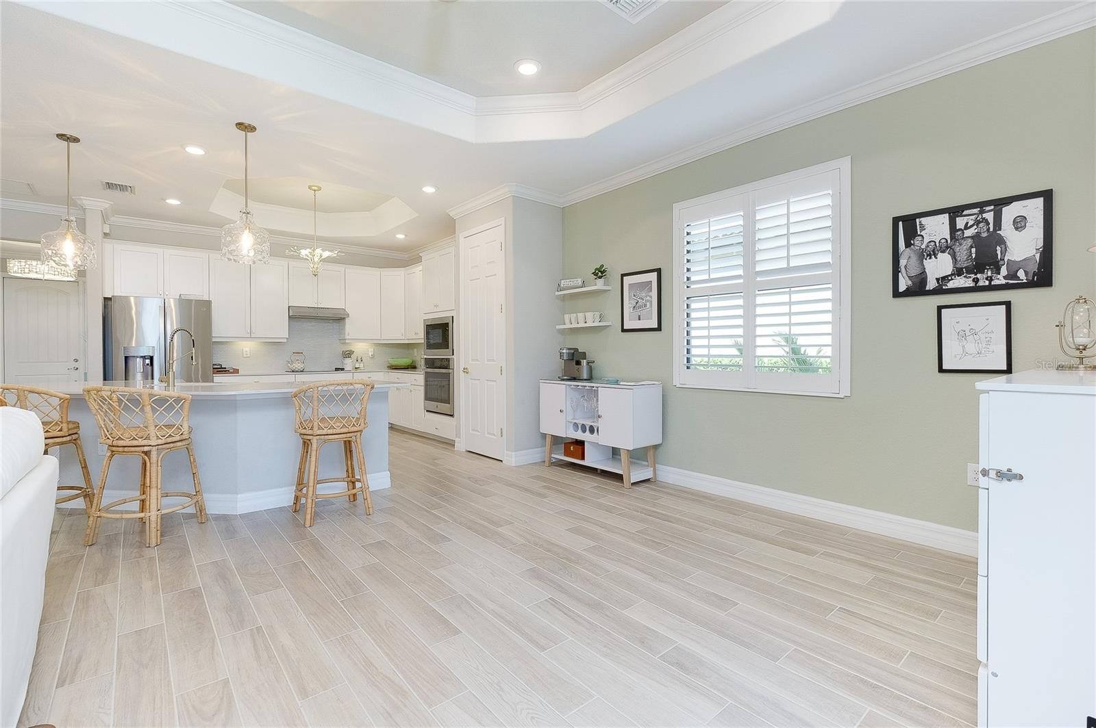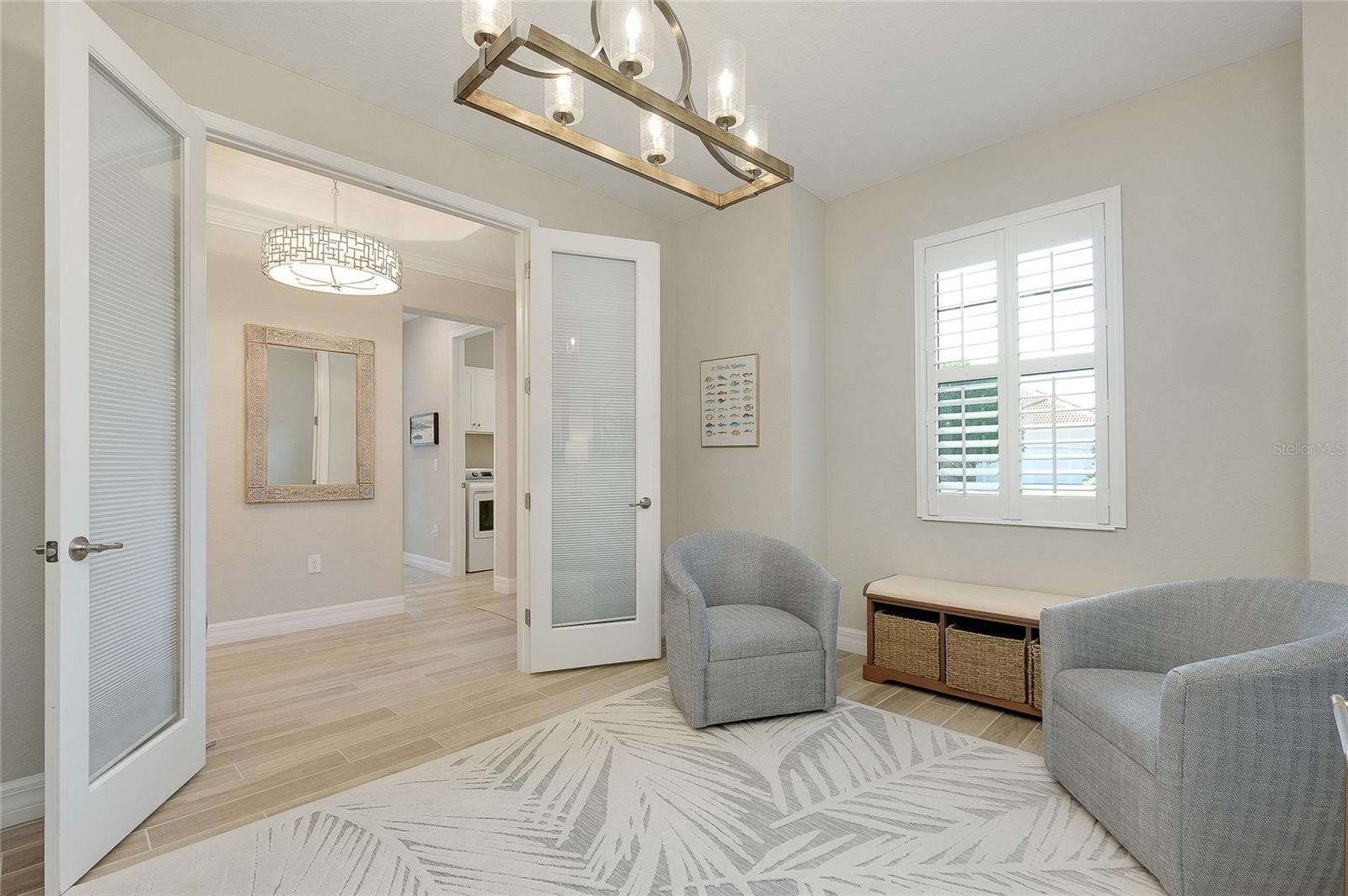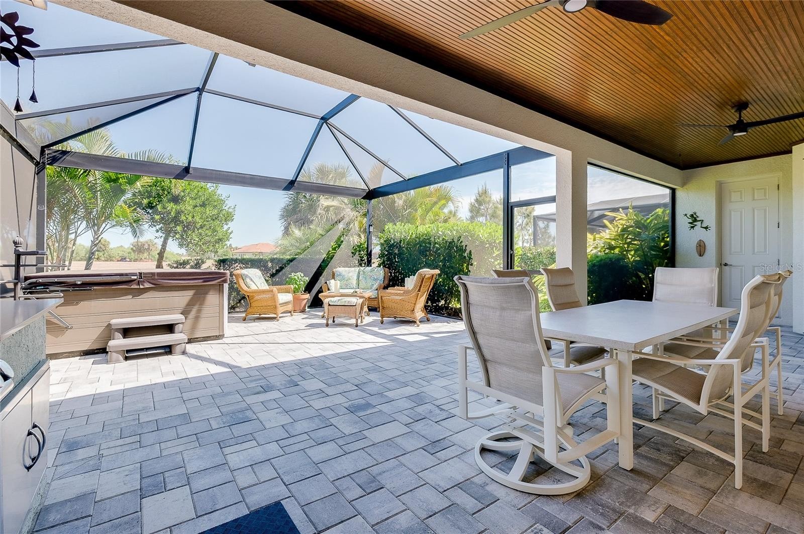 Welcome to your next home! This elegant side load Victoria model in Sarasota National, Venice's premier gated golf community, is truly a "must see," offering both sophistication and comfort in an exceptional setting. The open concept design with high ceilings creates a bright, airy atmosphere and features two bedrooms and a FLEX Room, thoughtfully designed to serve as a guest bedroom or as a cozy TV room. The home includes two full and one half bathrooms, with the convenient half bath located just off the extended lanai for easy outdoor access. The covered lanai is a standout feature, boasting a highly desired panoramic screen with picturesque views of the scenic 5th fairway. The lanai also features City Stone luxury pavers, a Hot Spring Spa,upgraded ceiling fans, and beautiful outdoor kitchen. This inviting space is perfect for entertaining guests, unwinding in comfort, or simply taking in the serene surroundings. If you want to live the indoor/outdoor lifestyle, simply open the impressive 8-foot-high by 12-foot-wide sliding doors and start living your best life. This smart home has many upgrades including 8 foot doors throughout, numerous rooms feature TRAY CEILINGS and CROWN MOULDING, ROUNDED INTERIOR WALL CORNERS, PLANK TILE FLOORS, CEILING FANS in all rooms, wood shelving in all closets, and upgraded lighting fixtures that elevate every space. The kitchen is beautifully appointed with GE PROFILE stainless steel appliances, 42 inch upper cabinets featuring under counter lighting, an executive kitchen package with a microwave/oven combo wall unit and drop in cook-top, elegant quartz countertops and backsplash, and an expansive pantry that provides ample storage. The primary suite is the perfect place to rest and offers a convenient slider to the lanai. Throughout the home, you will also notice the upgraded PLANTATION SHUTTERS which add both charm and functionality. This storm ready house with impact windows is located in a no flood zone, offering peace of mind, and must be seen to be fully appreciated. Included in your HOA fees are TWO UNLIMITED GOLF MEMBERSHIPS to Sarasota National’s 18-hole championship golf course, representing an exceptional value. Residents also enjoy full access to the impressive 30,000 square foot palm club community. The incredible amenities center includes a recreational resort style pool with lap lanes, a separate hot tub, poolside full-service tiki bar, an on-site restaurant, and the ever-popular 19th hole bar/restaurant. Additional amenities include multiple game rooms, a coffee lounge with library, a dog park for both big and little dogs, a playground, multiple pickleball courts, tennis courts, and bocce courts. A full-time activity staff coordinator is available to help you take advantage of the many opportunities for recreation, socializing, and relaxation. Sarasota National is ideally located just minutes from the exciting Wellen Park, a thriving destination filled with terrific restaurants, outdoor vendors, and entertainment. It is also in close proximity to multiple beaches, downtown Venice, and CoolToday Park, the home of the Atlanta Braves. The location offers both convenience and a peaceful sanctuary when desired and most of all, Sarasota National is known for its incredible atmosphere, lively social environment, and soon-to-be incredible Championship level golf experience. Make this home and Sarasota National your next home by reaching out today!