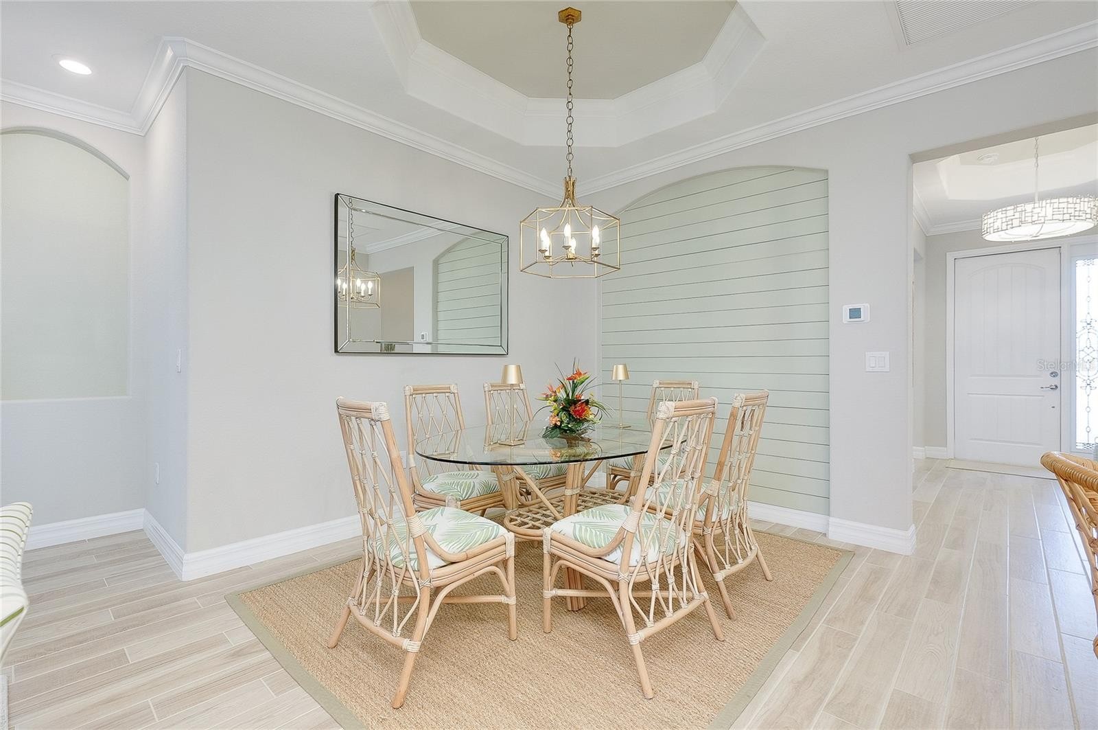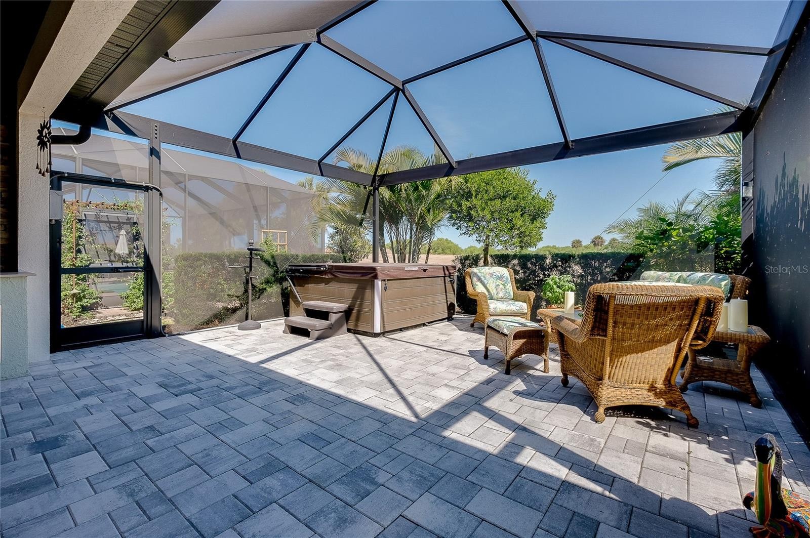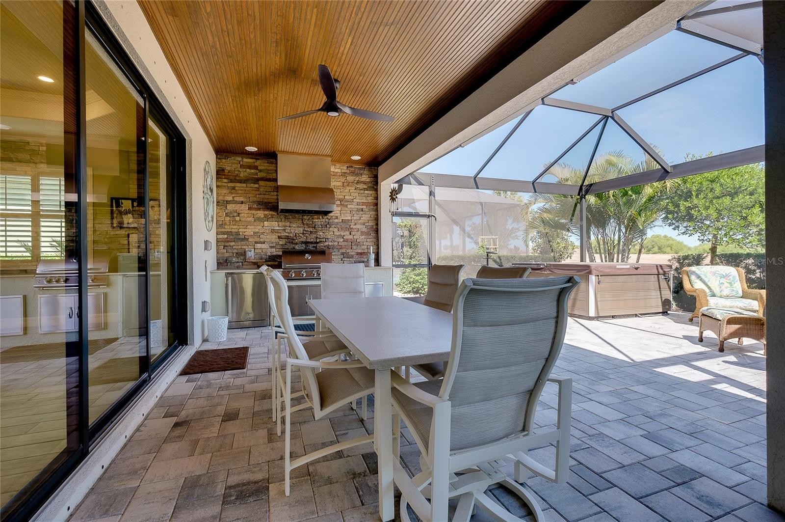 Welcome to your next home! This elegant side load Victoria model in Sarasota National, Venice's premier gated golf community, is truly a "must see," offering both sophistication and comfort in an exceptional setting. The open concept design with high ceilings creates a bright, airy atmosphere and features two bedrooms and a FLEX Room, thoughtfully designed to serve as a guest bedroom or as a cozy TV room. The home includes two full and one half bathrooms, with the convenient half bath located just off the extended lanai for easy outdoor access. The covered lanai is a standout feature, boasting a highly desired panoramic screen with picturesque views of the scenic 5th fairway. The lanai also features City Stone luxury pavers, a Hot Spring Spa,upgraded ceiling fans, and beautiful outdoor kitchen. This inviting space is perfect for entertaining guests, unwinding in comfort, or simply taking in the serene surroundings. If you want to live the indoor/outdoor lifestyle, simply open the impressive 8-foot-high by 12-foot-wide sliding doors and start living your best life. This smart home has many upgrades including 8 foot doors throughout, numerous rooms feature TRAY CEILINGS and CROWN MOULDING, ROUNDED INTERIOR WALL CORNERS, PLANK TILE FLOORS, CEILING FANS in all rooms, wood shelving in all closets, and upgraded lighting fixtures that elevate every space. The kitchen is beautifully appointed with GE PROFILE stainless steel appliances, 42 inch upper cabinets featuring under counter lighting, an executive kitchen package with a microwave/oven combo wall unit and drop in cook-top, elegant quartz countertops and backsplash, and an expansive pantry that provides ample storage. The primary suite is the perfect place to rest and offers a convenient slider to the lanai. Throughout the home, you will also notice the upgraded PLANTATION SHUTTERS which add both charm and functionality. This storm ready house with impact windows is located in a no flood zone, offering peace of mind, and must be seen to be fully appreciated. Included in your HOA fees are TWO UNLIMITED GOLF MEMBERSHIPS to Sarasota National’s 18-hole championship golf course, representing an exceptional value. Residents also enjoy full access to the impressive 30,000 square foot palm club community. The incredible amenities center includes a recreational resort style pool with lap lanes, a separate hot tub, poolside full-service tiki bar, an on-site restaurant, and the ever-popular 19th hole bar/restaurant. Additional amenities include multiple game rooms, a coffee lounge with library, a dog park for both big and little dogs, a playground, multiple pickleball courts, tennis courts, and bocce courts. A full-time activity staff coordinator is available to help you take advantage of the many opportunities for recreation, socializing, and relaxation. Sarasota National is ideally located just minutes from the exciting Wellen Park, a thriving destination filled with terrific restaurants, outdoor vendors, and entertainment. It is also in close proximity to multiple beaches, downtown Venice, and CoolToday Park, the home of the Atlanta Braves. The location offers both convenience and a peaceful sanctuary when desired and most of all, Sarasota National is known for its incredible atmosphere, lively social environment, and soon-to-be incredible Championship level golf experience. Make this home and Sarasota National your next home by reaching out today!