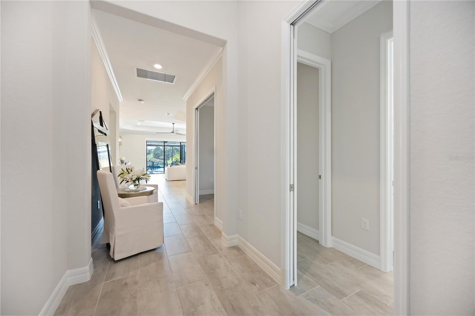 Stunning Maria Model with Resort-Style Pool and Spa in Sarasota National. Welcome to 25119 Spartina Drive, where luxury living meets comfort and convenience in one of the most coveted models in Sarasota National. The Maria Model offers 4 spacious bedrooms, 3 appointed bathrooms, and a 2-car garage, all set within an open, light-filled floor plan that’s perfect for entertaining and everyday living. Snoopy, the beloved Charles Schulz character, has a special spot in this home for the littles in your life. The front bedroom, #1, is set up as a nursery, complete with a fort and bunk bed, built-in storage areas, and stunning wainscoting. No detail was missed. Bedroom #2 shares a Jack-n-Jill bath, and bedroom #3 is an ensuite with a private bath. The primary bedroom #1, has sliding glass doors opening to the lanai, a large shower, and dual sinks in the ensuite bath. The ample closets are professionally organized. Step outside to the lanai, and you have your own private oasis featuring a custom pool and in-pool spa with a travertine deck that elevates this home to new heights of luxury. The expansive pool (33’ x 13’) boasts a sun deck (25' x 7.5') with three lighted bubblers, perfect for lounging or enjoying a refreshing dip. The 8’ x 8’ hot tub is enhanced with ambient lighting, creating a serene space to unwind. A waterfall feature with lighting further enhances the atmosphere, and the entire pool and spa system is controlled via your smartphone for ultimate convenience. The outdoor kitchen is a chef’s dream, designed by Blaze, a leader in premium outdoor cooking solutions, perfect for dining and entertaining. With panoramic screens on the pool cage, you’ll enjoy uninterrupted views as you relax on the spacious lanai (33'x 21'). Two separate pump systems for the pool and spa provide professional-level engineering and performance. Inside, the gourmet kitchen is a true centerpiece, featuring a large 12' island, built- in oven and microwave, refrigerator, cooktop with exhaust fan, and plenty of space to create culinary masterpieces to host friends and family. The open-concept design flows seamlessly. For peace of mind, this home is equipped with hurricane impact windows and a hurricane impact screen, built to withstand high winds and ensure safety in any storm. The home is meticulously organized, with custom storage solutions in closets and the garage, making it ideal for anyone who loves a tidy, well- organized home. Situated in the highly desirable Sarasota National, this home is more than just a property – it’s a lifestyle. Enjoy access to a private, Gordon B. Lewis-designed 18-hole golf course, a 19th hole dining facility, and a wealth of recreational amenities, including pickleball, tennis, bocce ball, swimming, fitness center. The vibrant community offers events for every interest and plenty of opportunities to connect with neighbors. Dine at the Indoor Palm Club or relax at the outdoor tiki bar by the resort-style pool. This gated, guard-secured community ensures peace of mind, while the numerous on- site amenities allow you to enjoy everything you need without ever leaving home. Schedule your private showing today and discover why 25119 Spartina Drive is the perfect blend of luxury, comfort, and convenience.