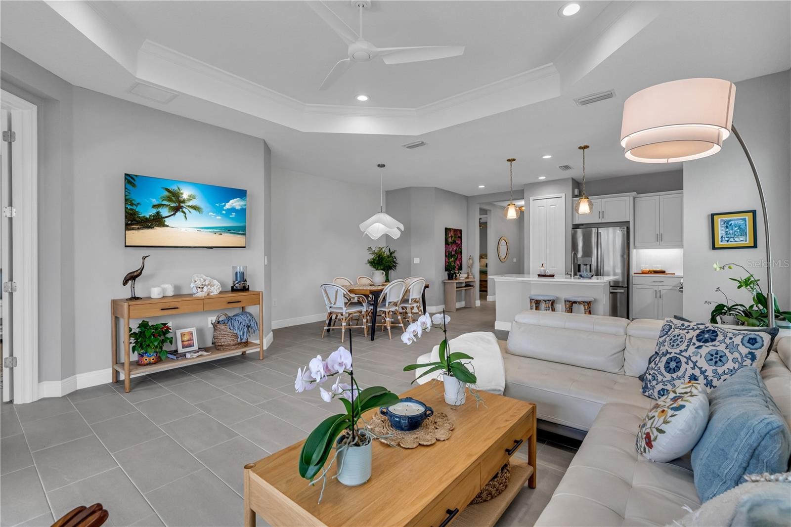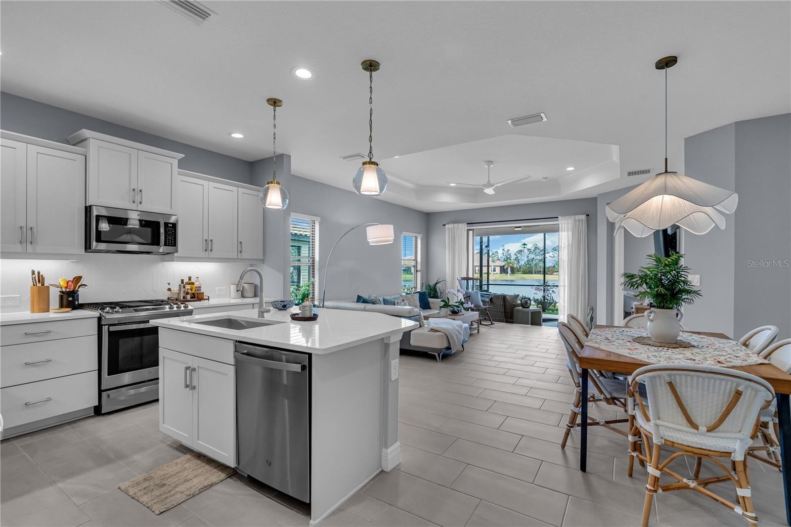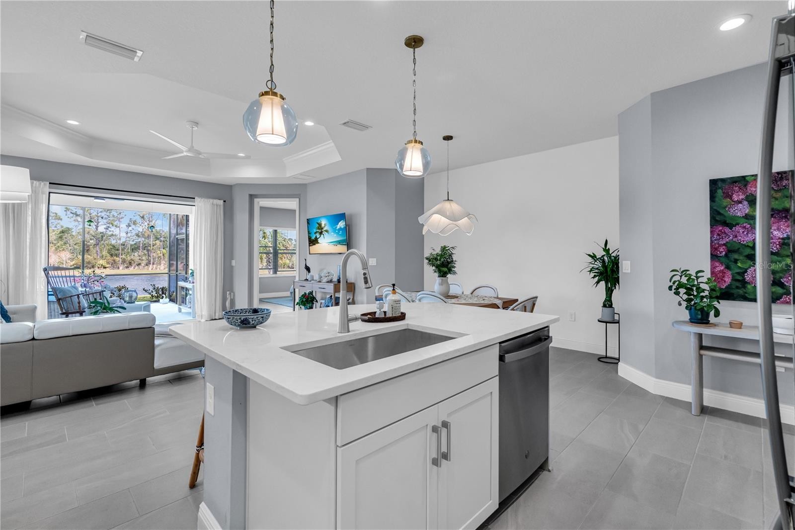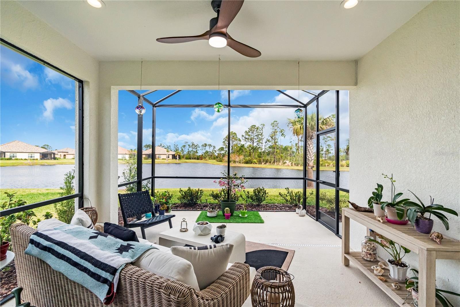 Stunning Villa with Pond and Preserve Views in Gated Vicenza Community Enjoy spectacular sunsets and serene pond views from this beautifully appointed 2-bedroom, 2-bath villa with a versatile den/office. Situated on a premium lot overlooking the preserve and pond this Neal-built home is barely two years old and gently used — offering like-new luxury without the wait. Thoughtful Upgrades Throughout Every detail has been carefully considered. The open floor plan showcases tile flooring throughout, crown molding, and stunning lighting fixtures that elevate each generously sized room. The kitchen features rich wood cabinetry and gleaming quartz countertops, while both bathrooms are beautifully appointed with quality finishes. The living room and primary suite capture those long pond views you'll never get tired of. The primary suite includes a custom-designed closet for effortless organization. Step through the pocket slider onto your oversized lanai — the perfect spot for morning coffee or evening relaxation — complete with a gas stub ready for your outdoor grill or firepit. upgraded 8-foot doors throughout create an airy, elegant feel, and the attached 2-car garage comes ready with custom shelving and a durable epoxy floor finish. The Vicenza Lifestyle This gated community puts resort-style living at your fingertips: a stunning pool with poolside cabanas, hot tub, clubhouse, pickleball and bocce courts, walking trails, and dog parks for pups of all sizes. Venice's beautiful beaches and shopping are just 12 minutes away. Not in a flood zone. Your Florida lifestyle is waiting.