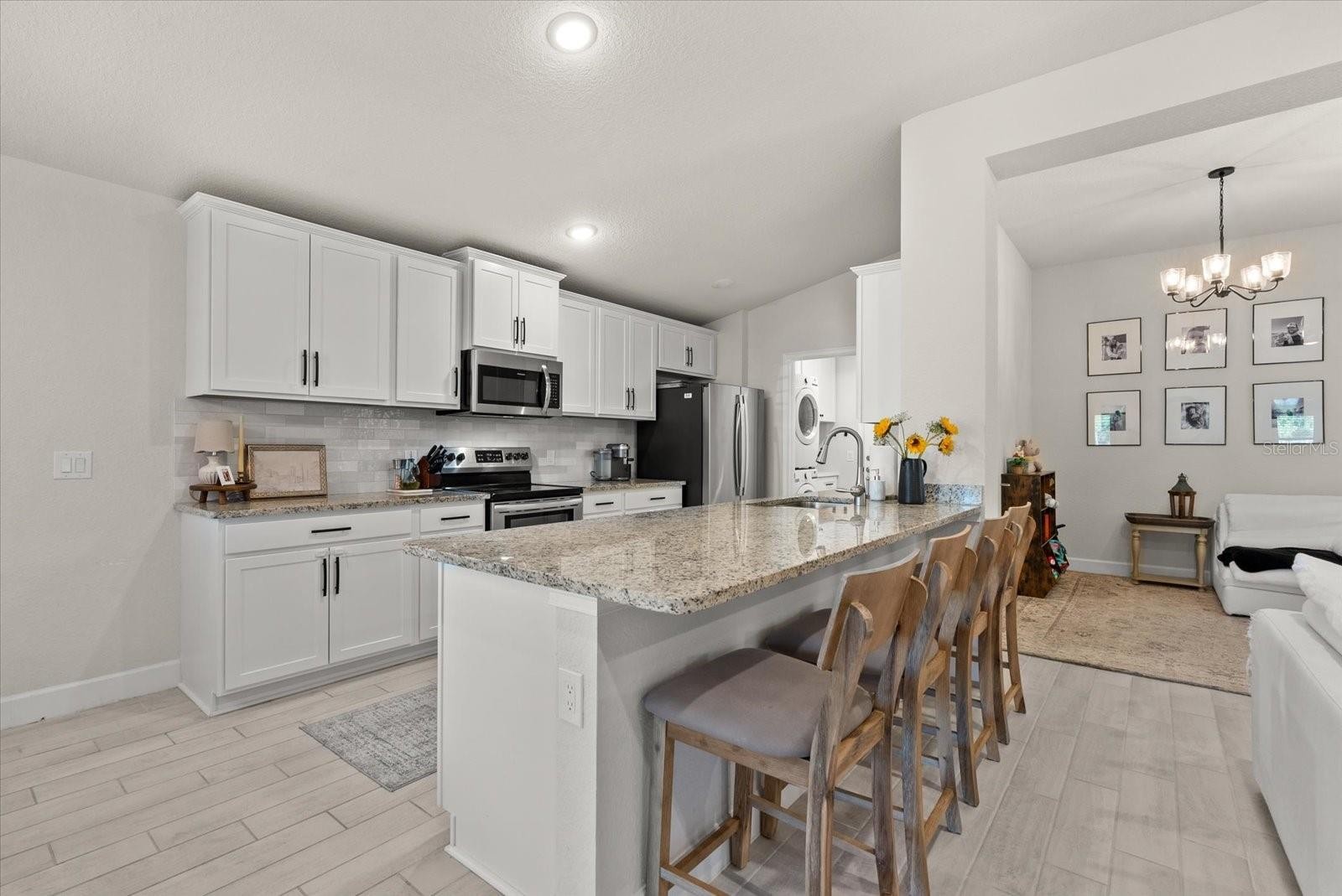 Welcome to the watercress cove community! PRICE REDUCED! Why wait on a new construction home when this home is move in ready and is stocked with ENDLESS UPGRADES waiting for you to enjoy. This home is 1,970 sqft with 3 beds and 2 baths and sits on ONE OF THE LARGER LOTS in the neighborhood. The home has stainless steal appliances and granite countertops. OVER $30K IN IMPROVEMENTS. Updates include RECESSED CAN LIGHTING IN EACH ROOM AS WELL AS UPGRADED LIGHT IN GARAGE, MASTER CLOSET AND GUEST BATHROOM. BUILT IN CABINETS IN MASTER BEDROOM THAT PROVIDES AMPLE STORAGE SPACE AS WELL AS ADDITIONAL CABINETS IN BOTH BATHROOMS. CEILING FANS IN ALL THREE BEDROOMS INCLUDING LIVING ROOM. KITCHEN BACKSPLASH, ADDED PANTRY AND CABINETS IN THE LAUNDRY ROOM, WASHER, DRYER, AND REFRIGERATOR INCLUDED, UPGRADED LIGHT FIXTURES IN DINING ROOMS AND UPGRADED CABINETRY HANDLES, GARAGE DOOR SYSTEM WITH TWO REMOTES, BERMUDA SHUTTERS ON ALL WINDOWS INCLUDING FRENCH DOORS, RAIN GUTTERS, SCREENED IN PORCH AND AN EXTENDED PATIO WITH PAVERS that walk along the side of the home that is perfect for entertaining. This home is the perfect blend of quietness while still being close to everything you need. The home is close by to WELLEN PARK, a BRAND NEW COSTCO, NORTH PORT AQUATIC CENTER and more! Don’t miss out on this incredible opportunity to own a move-in-ready home with exceptional upgrades in a thriving new community. Schedule your showing today.