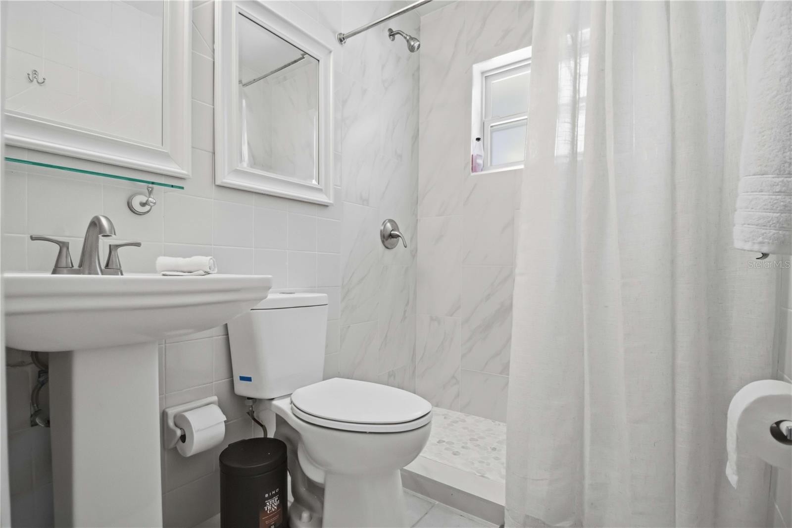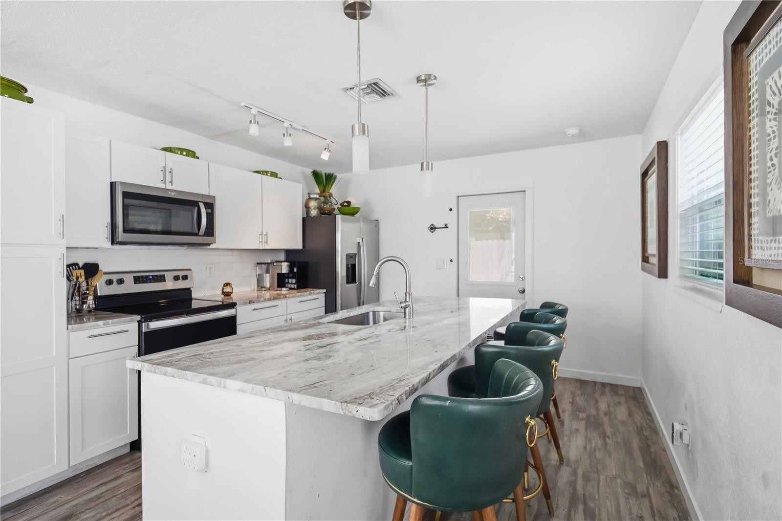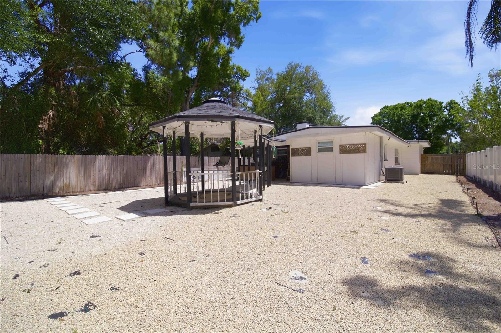 Step into this beautifully updated 2-bedroom, 2-bath home, where comfort meets style inside and out. From the moment you arrive, the peaceful setting at the end of a quiet cul-de-sac invites you to slow down and enjoy the space. Inside, you’ll find a thoughtfully remodeled interior featuring modern laminate flooring, updated windows, and a bright, open layout. The kitchen is designed for both everyday living and entertaining, complete with solid wood cabinetry, granite countertops, brand-new appliances, and a spacious island perfect for casual dining or gathering with guests. The primary suite offers a true retreat with generous space, a walk-in closet, and a stunningly renovated bathroom showcasing designer tile, a walk-in shower, dual vanities, and granite finishes. A unique touch—direct access from the bathroom to the backyard—creates a seamless indoor-outdoor experience. Out back, your private oasis awaits. Enjoy a lush, shaded yard with new fencing, a gazebo, covered patio, and outdoor kitchen—ideal for relaxing evenings or hosting friends and family. Additional highlights include a durable metal roof, newer A/C, indoor laundry, and a covered carport with extra storage. The front patio, finished with slate tile and a pergola, adds even more charm and functionality. Perfectly located just minutes from Payne Park, downtown Sarasota, Siesta Key, and I-75, this home offers the best of both convenience and tranquility.