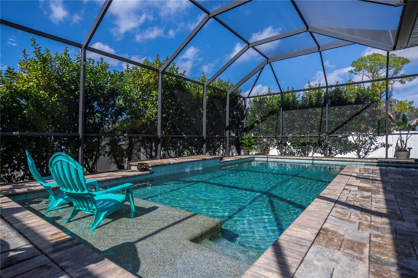 HERE IS THE ONE YOU HAVE BEEN WAITING FOR, huge savings! Welcome to this stunning 2020 custom EcoSun built home in desirable North Port, featuring 4 bedrooms, 3 bathrooms, and a spacious 2-car garage. This ENERGY EFFICIENT solar home boasts over 2,200 sq ft of beautifully designed living space with exquisite stone accents and a soaring entryway that invites you inside. Enjoy a thoughtfully designed split floor plan with elegant tray ceilings, a spacious living room filled with natural light, and a separate formal dining room perfect for all your entertaining needs.The chef-worthy kitchen is a true centerpiece with real wood cabinetry, granite countertops, stainless steel appliances, a convenient breakfast bar, and a cozy adjacent dinette. The serene primary suite offers dual closets and a luxurious ensuite bathroom, creating your private retreat. Two additional guest bedrooms feature full closets, and share a modern bathroom—ideal for family or guests. The fourth bedroom has its own ensuite bathroom with endless options and can double as in-law suite, a hobby room or office. Step outside to your private fenced backyard oasis, where you can SWIM OR SOAK YEAR ROUND in the heated saltwater pool and spa, complete with relaxing sounds accented from a tranquil waterfall. Relaxing is effortless anytime of day or night under the fabulous covered patio area, perfect for seamless outdoor living with family and friends. This fabulous home is packed with smart, energy-saving features including OWNED SOLAR PANELS, injection insulation for enhanced soundproofing, smart irrigation system, and reverse osmosis water filtration, quality of life is forefront.The FULLY AUTOMATED SMART HOME system controls lighting, garage doors, a smart doorbell, thermostat, door locks, and pool/spa functions—all accessible quickly and anywhere effortlessly directly from your phone app for convenience and EXTRA PEACE OF MIND. Additional perks include a full inside laundry, no HOA fees, NOT IN A FLOOD ZONE and a prime location in North Port well situated near to many amenities. North Port has Myakka State Park and Myakkahatchee Creek Environmental Center Park with miles of great trails, horseback riding, hiking, bird watching, biking, water views and access. Close to PG airport, dining, shopping, Stadium and beaches, Warm Mineral Springs and Aquatic Center. Don’t miss out on this luxurious, eco-friendly dream home, schedule your showing TODAY!