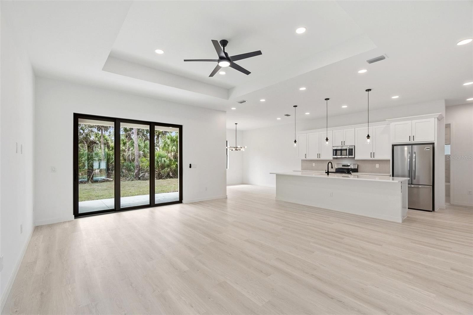 One or more photo(s) has been virtually staged. Welcome to your new home, a stunning 4-bedroom, 2-bathroom haven in North Port with an option to purchase the ADJACENT LOT, one of the fastest-growing cities in the nation! Boasting an open floor plan and meticulous attention to detail, this home is move-in ready and radiates pride of ownership inside and out. Nestled in a prime location on CITY WATER, with NO HOA fees, and NO FLOOD INSURANCE required, this home offers peace of mind and convenience. Step inside to discover the grandeur of the enormous living room, adorned with 12ft high ceilings and expansive windows that flood the space with natural light. The adjacent kitchen is a chef's dream, featuring Quartz countertops, stainless steel appliances, and ample storage space. The spacious master bedroom offers 10ft tall ceilings, a large walk-in closets, and a luxurious en-suite bathroom with his and hers sinks, separate tub, and large shower. From luxury vinyl floors to an oversized driveway, this home is packed with features both inside and out. Rest assured knowing this home is hurricane-ready with IMPACT WINDOWS and doors. Savor your evenings outdoors on the large covered lanai with an outdoor kitchen hookup, perfect for relaxation or entertaining guests. Located in the highly rated Sarasota County school district and close to I-75, shopping, dining, and Gulf beaches, this home offers the perfect blend of convenience and luxury. Don't miss out on the opportunity to make this piece of paradise yours, call today and take the first step towards owning your dream home!