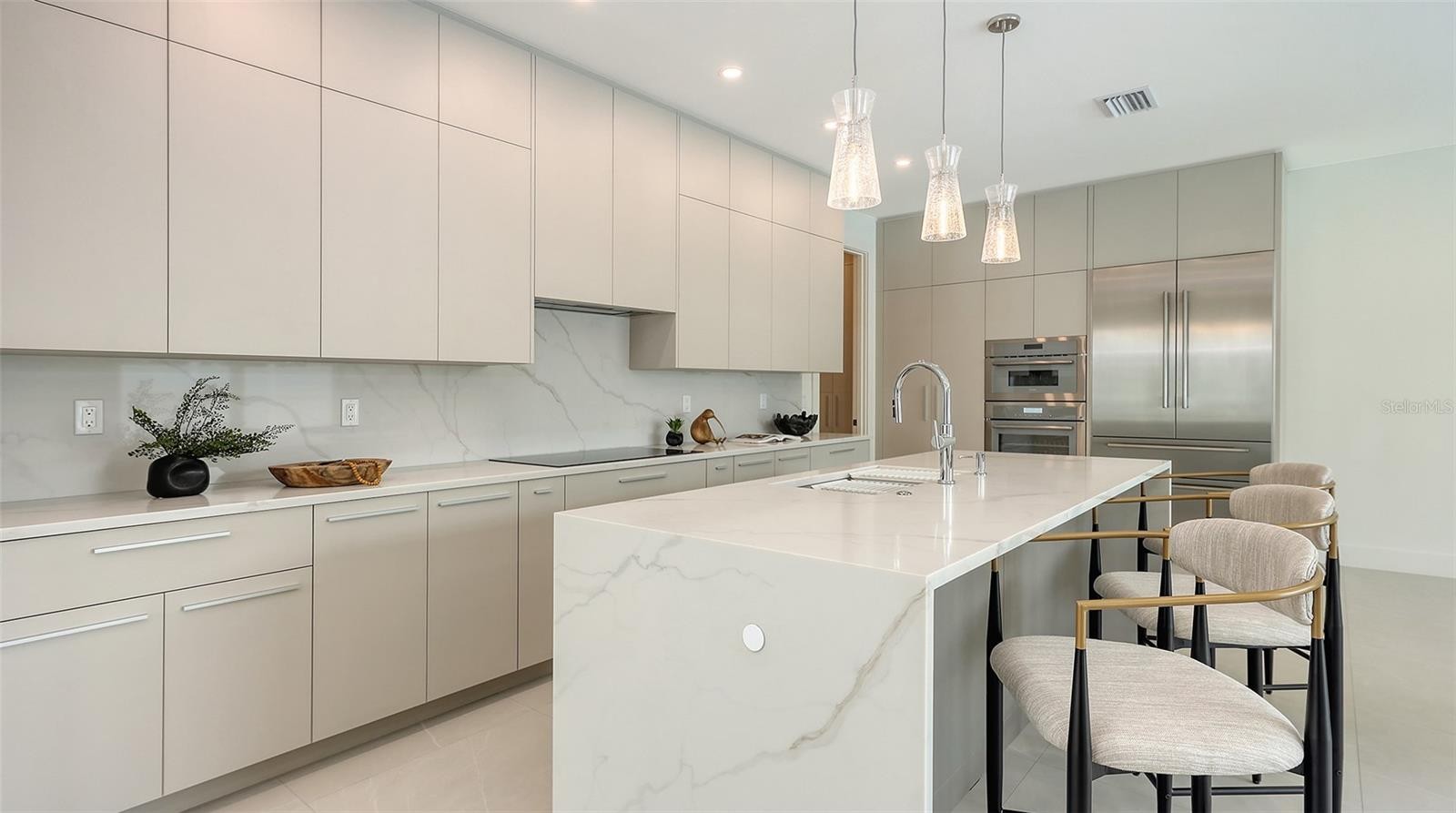 New Construction 2025 – 3 BEDROOM + DEN, 3.5 BATH home in Arlington Park. - Welcome to your dream home, ideally located in Rustic Lodge — one of the most desirable pockets within the sought-after Arlington Park neighborhood in the heart of Sarasota. Enjoy your own backyard oasis featuring a private heated saltwater pool and a fully equipped outdoor kitchen, complete with a Blaze burner grill, granite countertops, and a Zephyr beverage center. Beautiful pavers surround the outdoor entertaining space, while a grassy area offers the perfect spot for a garden or a place for pets to play. Step inside through a welcoming foyer adorned with custom porcelain tile flooring, which continues throughout the home in a large-format style for a seamless, elegant finish. Just off the entryway, you’ll find a spacious and private office. Continue into the open-concept living space, where the kitchen truly steals the show. Custom Studio Luxe cabinetry extends to the high ceilings, creating a stunning visual impact and maximizing storage. Quartz countertops are used throughout, including a full-slab backsplash and a dramatic waterfall island. The kitchen is outfitted with top-of-the-line Thermador appliances, including an induction cooktop, range hood, 42” built-in French door refrigerator, and a combination wall oven. Adjacent to the kitchen is a generous mudroom with built-in cabinetry, conveniently located near the entrance from the two-car garage, which features a durable epoxy-coated floor. Upstairs, each bedroom includes its own en-suite bathroom and walk-in closet with custom shelving to maximize space. The spacious primary suite includes a huge walk-in closet with a dedicated vanity area, while the primary bath offers a dual vanity, oversized walk-in shower, and a freestanding soaking tub. Throughout the home, you’ll find high-end finishes and fixtures, including Kohler plumbing fixtures, Daltile porcelain tile, Franklin Lighting, titanium pavers, a premium PGT window package, PVC vinyl fencing, and a sleek, wind-resistant 5V crimp metal roof. Additional features include a 21-foot-wide driveway, an irrigation system, outdoor lighting, and decorative window shutters. This home includes a one-year builder warranty and is perfectly located just minutes from downtown Sarasota, Siesta Key Beach, St. Armand's Circle, Sarasota Memorial Hospital, Legacy Trail, and top-rated local schools. Positioned within city limits, the property also qualifies as an excellent vacation rental opportunity. Private financing available.
