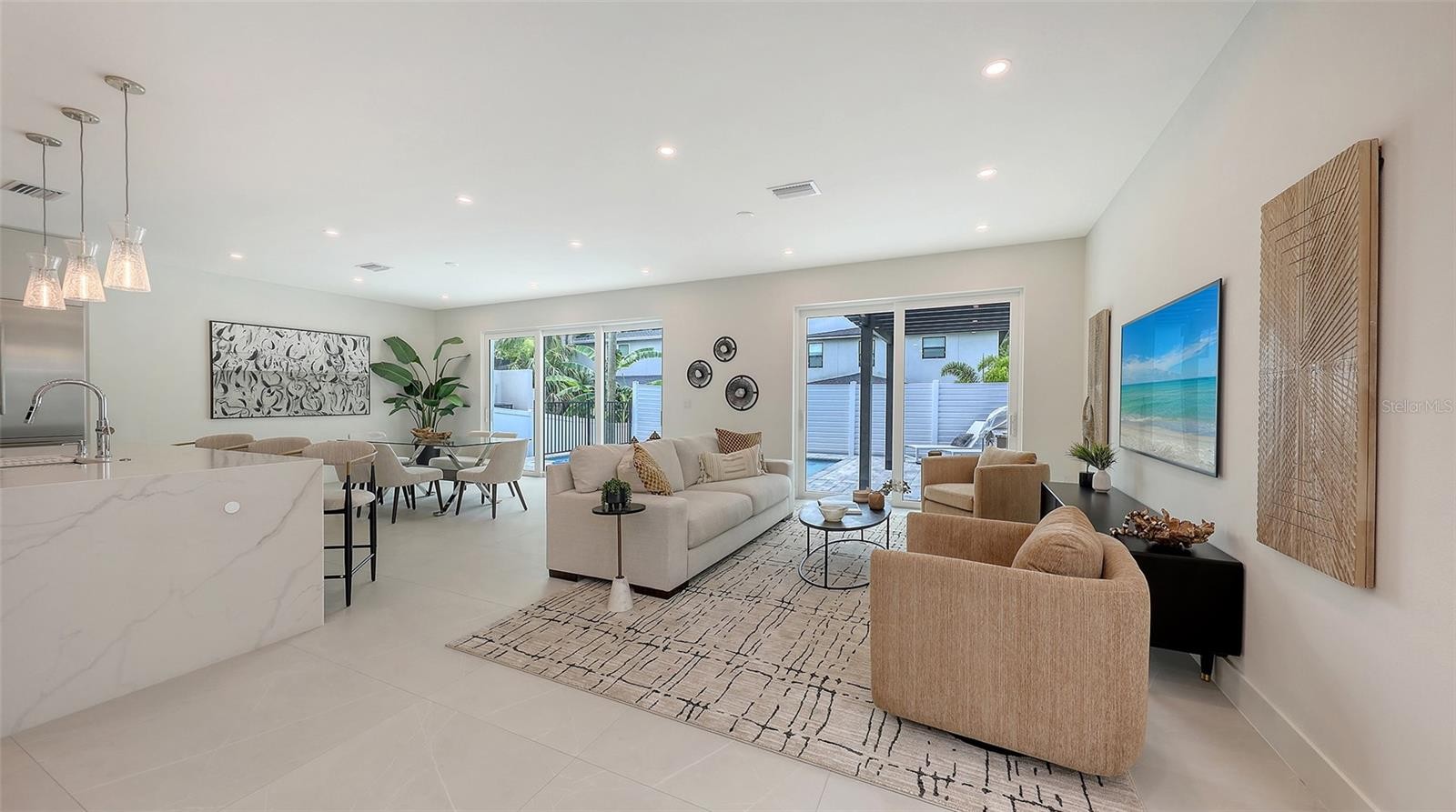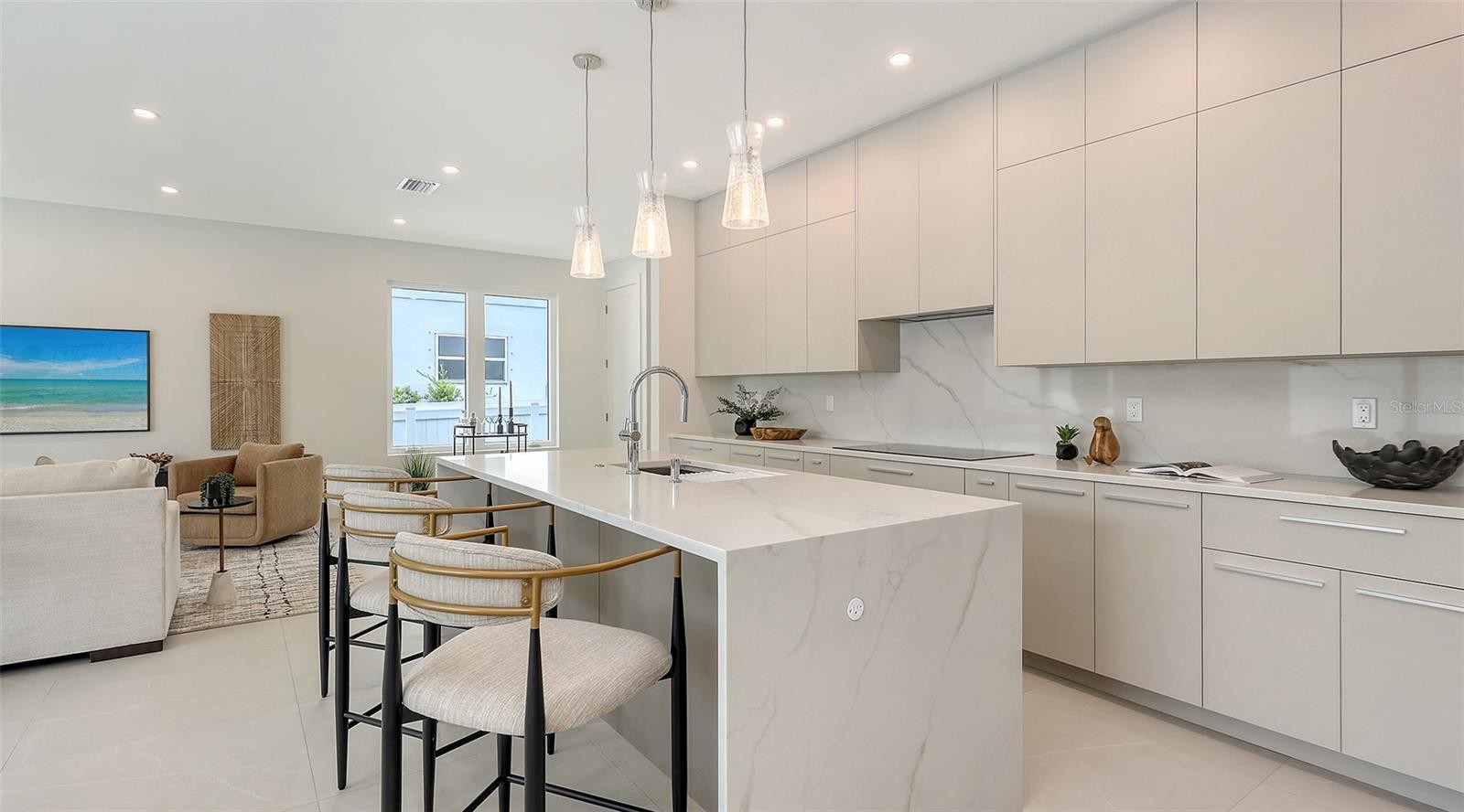 New Construction 2025 – 3 BEDROOM + DEN, 3.5 BATH home in Arlington Park. - Welcome to your dream home, ideally located in Rustic Lodge — one of the most desirable pockets within the sought-after Arlington Park neighborhood in the heart of Sarasota. Enjoy your own backyard oasis featuring a private heated saltwater pool and a fully equipped outdoor kitchen, complete with a Blaze burner grill, granite countertops, and a Zephyr beverage center. Beautiful pavers surround the outdoor entertaining space, while a grassy area offers the perfect spot for a garden or a place for pets to play. Step inside through a welcoming foyer adorned with custom porcelain tile flooring, which continues throughout the home in a large-format style for a seamless, elegant finish. Just off the entryway, you’ll find a spacious and private office. Continue into the open-concept living space, where the kitchen truly steals the show. Custom Studio Luxe cabinetry extends to the high ceilings, creating a stunning visual impact and maximizing storage. Quartz countertops are used throughout, including a full-slab backsplash and a dramatic waterfall island. The kitchen is outfitted with top-of-the-line Thermador appliances, including an induction cooktop, range hood, 42” built-in French door refrigerator, and a combination wall oven. Adjacent to the kitchen is a generous mudroom with built-in cabinetry, conveniently located near the entrance from the two-car garage, which features a durable epoxy-coated floor. Upstairs, each bedroom includes its own en-suite bathroom and walk-in closet with custom shelving to maximize space. The spacious primary suite includes a huge walk-in closet with a dedicated vanity area, while the primary bath offers a dual vanity, oversized walk-in shower, and a freestanding soaking tub. Throughout the home, you’ll find high-end finishes and fixtures, including Kohler plumbing fixtures, Daltile porcelain tile, Franklin Lighting, titanium pavers, a premium PGT window package, PVC vinyl fencing, and a sleek, wind-resistant 5V crimp metal roof. Additional features include a 21-foot-wide driveway, an irrigation system, outdoor lighting, and decorative window shutters. Seller is offering a $15,000 DESIGN CREDIT and 10 free hours of consultation with an interior designer. This home includes a one-year builder warranty and is perfectly located just minutes from downtown Sarasota, Siesta Key Beach, St. Armand's Circle, Sarasota Memorial Hospital, Legacy Trail, and top-rated local schools. Positioned within city limits, the property also qualifies as an excellent vacation rental opportunity. Private financing available.