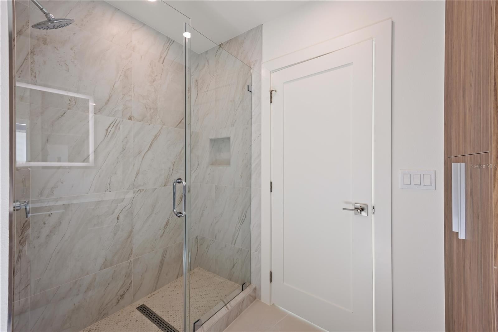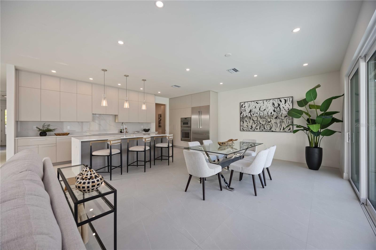 Brand-new luxury home in Arlington Park, located in the highly desirable Rustic Lodge enclave. This 3 bedroom plus den, 3.5 bath residence offers exceptional design, high-end finishes, and a private outdoor oasis. Step into your private backyard retreat featuring a heated saltwater pool and a fully equipped outdoor kitchen with Blaze burner grill, granite countertops, and a Zephyr beverage center. Elegant pavers surround the entertaining area, while a grassy yard provides space for pets or gardening, perfect for indoor-outdoor Florida living. Inside, the foyer showcases porcelain tile flooring, flowing seamlessly throughout the home for a clean, modern look. A private office/den is conveniently located just off the entry. The open-concept living area centers around a show-stopping kitchen with custom Studio Luxe cabinetry extending to the ceiling, quartz countertops, a full-slab quartz backsplash, and a dramatic waterfall island. Thermador appliances include an induction cooktop, 42" built-in French door refrigerator, and combination wall oven. Upstairs, all bedrooms feature en-suite bathrooms and walk-in closets with custom shelving. And a luxurious primary suite with a spa-inspired bath. One-year builder warranty. Located just minutes from Downtown Sarasota, Siesta Key Beach, St. Armands Circle, Sarasota Memorial Hospital, the Legacy Trail, and top-rated schools. With no HOA and weekly rental eligibility within city limits, this home also presents an excellent vacation rental or investment opportunity.