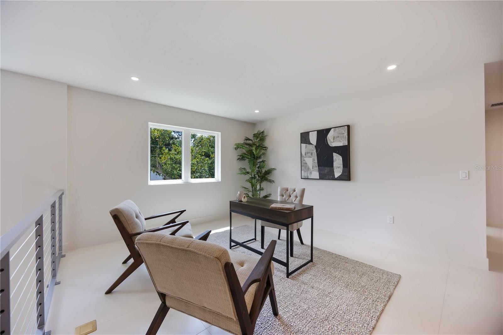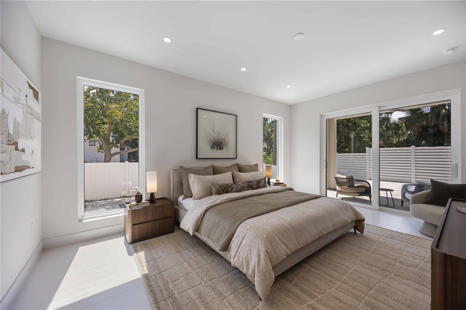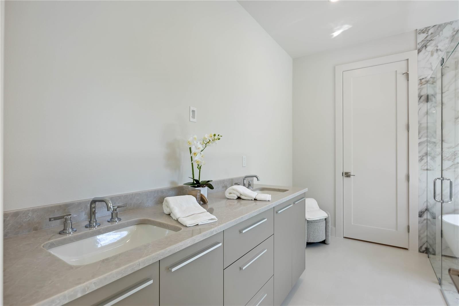 One or more photo(s) has been virtually staged. One or more photo(s) has been virtually staged. Welcome to a Modern Masterpiece in the Heart of Sarasota. This contemporary home was completed in 2025 and offers 4,000 square feet of thoughtfully designed living space in the coveted Rustic Lodge section of Arlington Park. This light-filled, open-concept floor plan blends indoor and outdoor living seamlessly for enhanced living and entertaining. The centerpiece of the home is the chef's kitchen with floor to ceiling custom cabinetry by Studio Luxe, quartz countertops, a full-slab backsplash, and a dramatic waterfall island. Premium Thermador appliances include a 42-inch French door refrigerator, induction cooktop, wall-oven combination, and range hood. Additional bonus cabinetry just off the kitchen and an oversized pantry provides ample storage. Large porcelain tile flooring throughout enhances the clean, modern aesthetic. The primary suite is located on the main level, featuring a spa-inspired bathroom with dual vanities, an oversized zero entry shower, and a freestanding soaking tub. Upstairs, you'll find a bonus room that could be used as a den, reading room or fitness area and generous loft perfect for movie or game nights as well as a large laundry room. There are three well positioned and private bedrooms with en-suite bathrooms and custom closet systems; each with access to a balcony. Outside, you will find a large paver patio with outdoor kitchen equipped with a Blaze grill, granite countertops, and Zephyr beverage center. The heated saltwater pool and spa and fenced yard extend the tranquility this home offers. Additional features include Kohler plumbing fixtures, Daltile porcelain tile, Franklin lighting, titanium pavers, premium PGT windows, PVC vinyl fencing and a 5V crimp metal roof. A 21-foot driveway, two-car garage, irrigation system, exterior lighting, decorative shutters and a two-car garage add to the thoughtful design and effortless living this home offers. This home is located just minutes from downtown Sarasota, Siesta Key Beach, St. Armands Circle, Sarasota memorial Hospital, SRQ airport, Legacy Trail, Arlington Park and in a top-rated school district offering convenience and lifestyle.