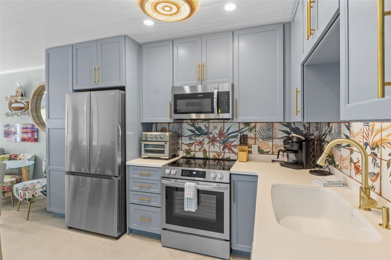 Tranquil waterfront canal townhome on Anna Maria Island in Holmes Beach! Welcome to this beautifully and completely updated 2-bedroom, 2-bath townhome tucked away on a quiet cul-de-sac. Designed with an open floor plan, the home features tile floors throughout, a stylish plank ceiling, and a light-filled living area where charming jalousie windows frame serene canal views. The kitchen is thoughtfully upgraded with stainless steel appliances, a micro hood, custom tile backsplash, and elegant gold accents, making it both functional and eye-catching. Both bedrooms offer private en-suite baths with dual sinks and glass-enclosed showers, while the primary suite enjoys peaceful water views. A dedicated laundry room provides additional storage, and low association fees add to the home’s appeal. Outdoors, a large open lanai and deck create the perfect setting for entertaining. Newer dock with ladder access for a 24" boat, fishing from your back yard or simply relaxing, with easy access to launch your kayak and explore the Anna Maria waterways or Palma Sola Bay. Ideally located on highly sought after Anna Maria Island and close to the Holmes Beach boat ramp, shopping, dining, tennis and basketball courts, baseball fields, dog park, and playground, this canal-front retreat offers the best of coastal living.