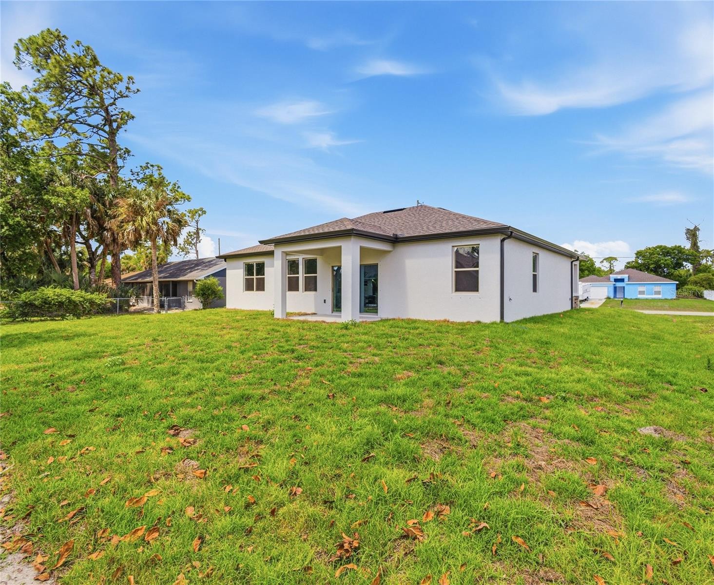 Great price with luxury features and ready now! A newly constructed home with city water and septic system in North Port, with no HOA fees! Great location for quick access to shopping, medical conveniences, parks and schools. This affordable new home is ready for you and is just what you've been looking for...No HOA and with city water! This home has 9'4" tall ceilings, a nice and open layout with a versatile floor plan. The house features 4 bedrooms, 2 full bathrooms, dining room, a living room, an open kitchen and a 2-car garage with 1810 square feet of living space. The living space is well-utilized with high ceilings and many windows providing natural light. The interior features will provide you with the quality and luxury you were looking for in your new home. This home has a split floor plan with the primary suite on one side of the home and the guest bedrooms on the other. The primary bedroom has a tray ceiling and large windows that let in natural light. You'll also enjoy a resort-style bathroom with a spacious walk-in shower with floor-to-ceiling tiled walls and a glass enclosure. It also features a linen closet, double vanity and a large walk-in closet. The living room features large windows and several LED fixtures providing plenty of light with access to the covered lanai. The living room is open to the kitchen, where you'll find a huge center island with extra seating for casual dining and plenty of cabinets. The kitchen features stainless steel appliances, Shaker-style cabinets with crown molding, decorative hardware, subway tile backsplash and granite countertops. The dining room is located at the front of the house, with large windows allowing for plenty of natural light. The home includes luxury vinyl plank flooring in the main living areas and bathrooms for durability and comfort. You'll love these floors! They are easy to maintain and offer a modern design, perfect for new homes. Other features include the same beautiful Shaker-style cabinets with hardware and granite countertops in the bathrooms, 5-inch baseboards, a garage door opener, gutters on the exterior, R38 insulation, a 16 SEER HVAC and much more. Visit our model center and compare the features and quality with other homes and you'll see the difference. We make buying easy for you!