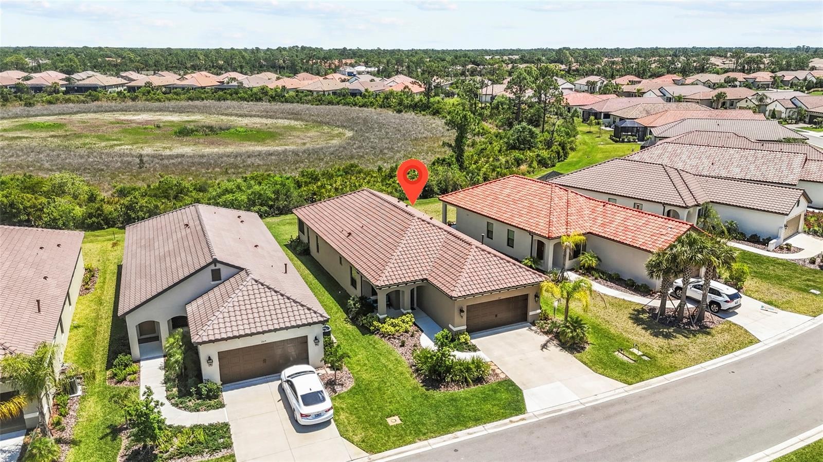 Is there a 3-bed single family home in Venice with PRIVATE, PRESERVE VIEWS, built in 2024, and filled with upgrades? Welcome to 265 Potenza Loop in the GATED Vicenza community, offering RESORT-STYLE LIVING with modern finishes and MOVE-IN READY convenience. This home features wood-look tile throughout (NO CARPETS), tray ceiling detail, an elegant den with double glass doors, and a walk-in pantry for added functionality. A whole house WATER SOFTENER and IMPACT RESISTANT STORM WINDOWS and doors provide comfort and peace of mind. POCKET SLIDING GLASS DOORS open fully to create true indoor outdoor living, leading to a private lanai with serene preserve views and NO REAR NEIGHBORS, perfect for enjoying quiet mornings or relaxing evenings. The EXTENDED GARAGE includes built-in storage, epoxy flooring, and an EV outlet for ELECTRIC VEHICLE CHARGING. Located in a GAS COMMUNITY with NO CDD fees, LOW HOA, and in an X flood zone where FLOOD INSURANCE IS NOT REQUIRED, this property blends lifestyle and smart ownership. Just minutes from Sarasota Memorial Hospital, Downtown Venice, Gulf beaches, dining, shopping, and everyday conveniences, and zoned for Venice High School, this fabulous home in Vicenza offers the lifestyle you are searching for without the wait for new construction. Would you like it furnished? FURNISHINGS ARE AVAILABLE too!