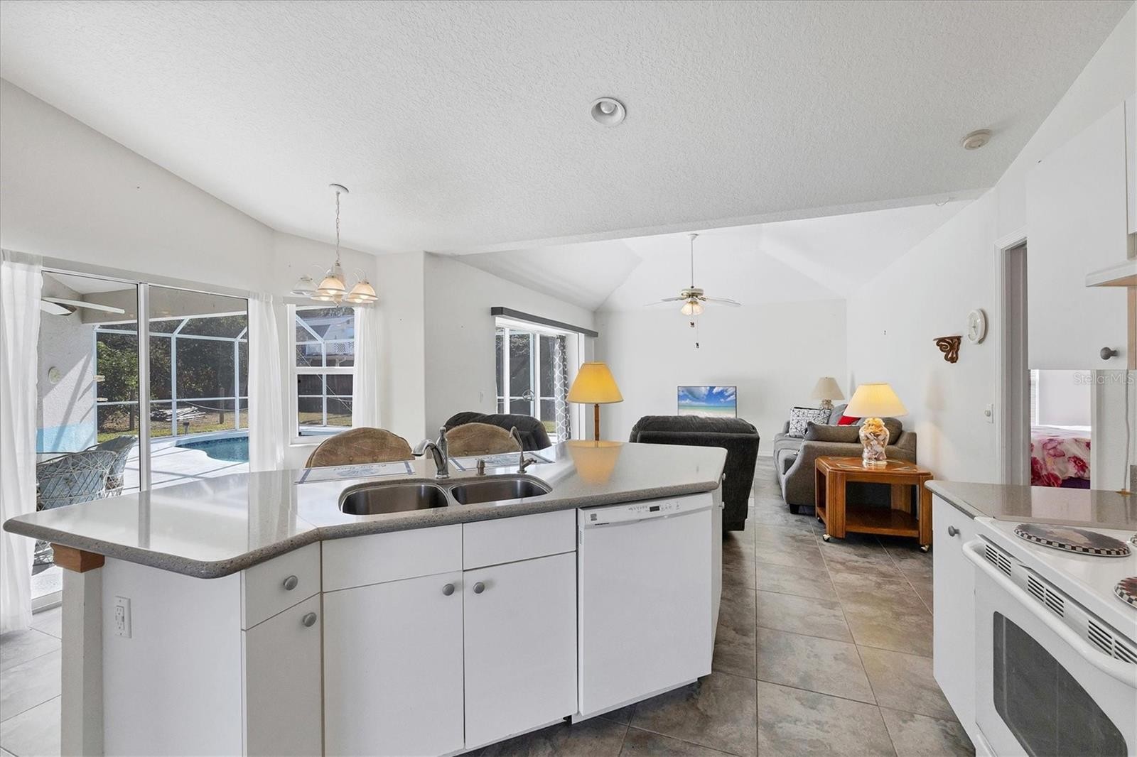 Well-priced pool home WITH CITY WATER in North Port! This 3-bedroom, 2-bath POOL home has space, comfort, and a fun Florida feel. You get a 2-car garage and a screened pool that is great for play or rest. The open layout gives you a living room, dining room, and a family room, so there is room for it all. The kitchen sits in the center of the home, making it easy to stay part of the action while you cook or snack overlooking your pool and family room. Kitchen also has a large pantry area. Indoor Laundry room, leading to Double Car garage. Both the living room and family room open to a covered lanai that leads right to the pool area. It is a great spot for sunny days and cool nights. The home is move-in ready and very clean. There is no carpet. Floors are laminate and tile, which makes clean up easy. While a lot of features are original to the home, they are in great shape and ready for you to bring your style. The lot is 125 by 80 feet and gives you nice outdoor space. Out back, there is a second covered patio that works well for grilling, meals, or just sitting back and relaxing. The rear yard is very private. This home sits in a quiet area close to schools, shops, and places to eat. It is set between I-75 and US 41, so getting around town is simple. Priced to move, this is a solid choice for anyone looking for a pool home in North Port. Schedule your showing and come see it for yourself.