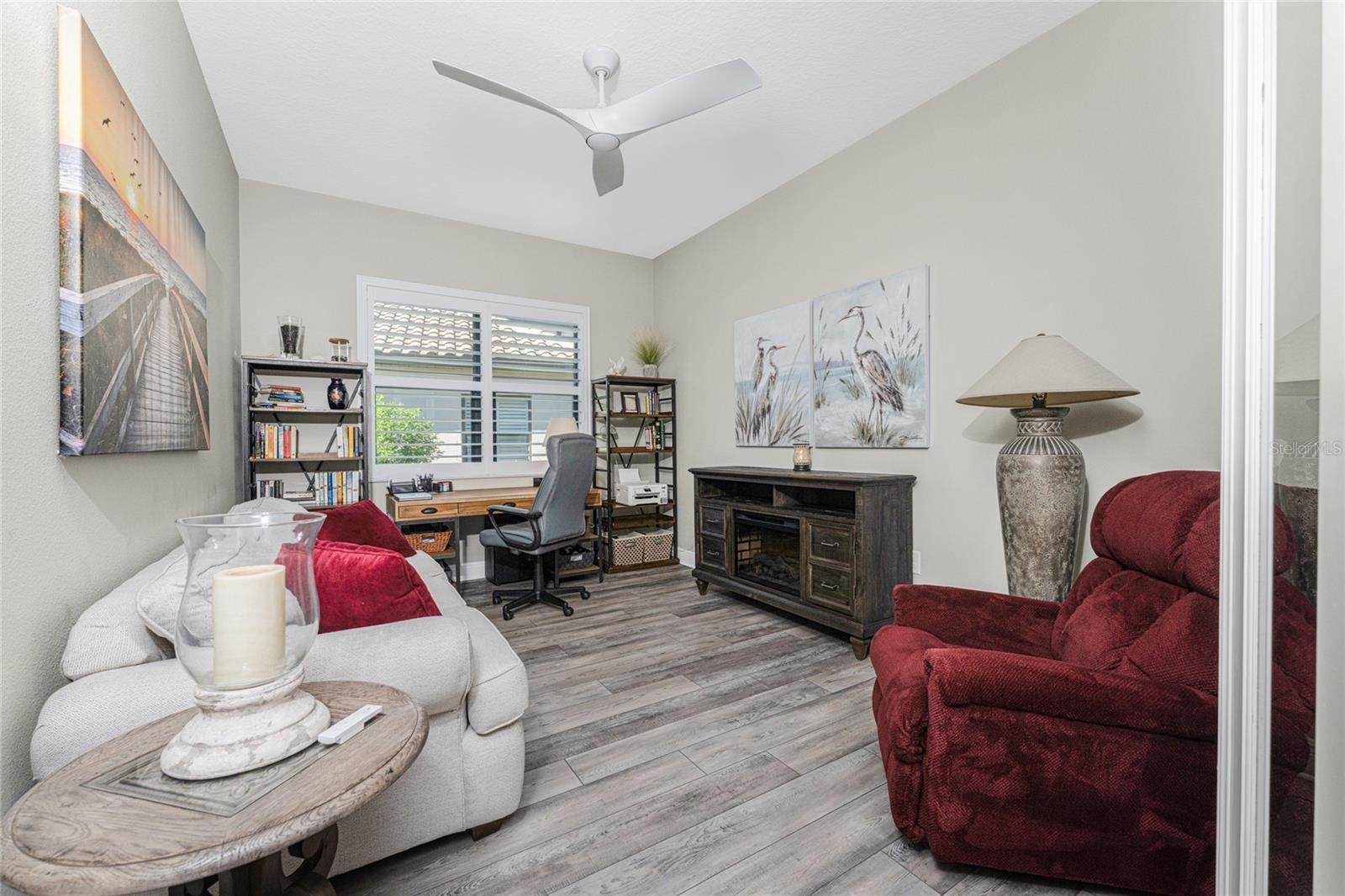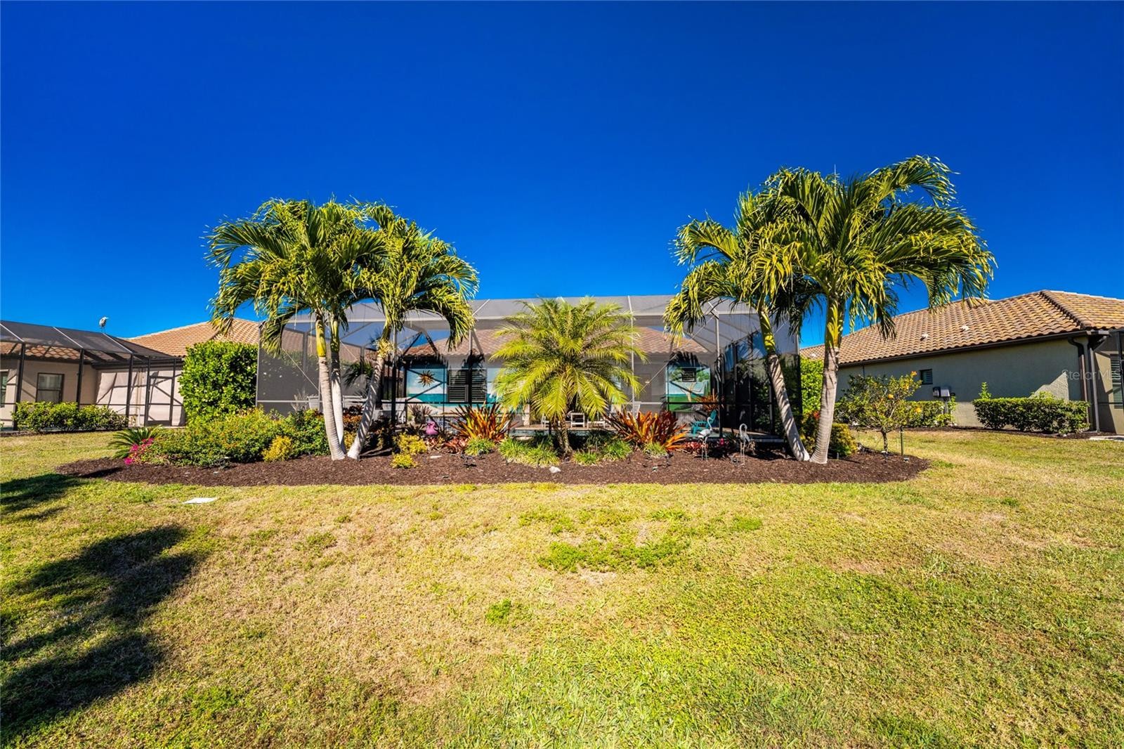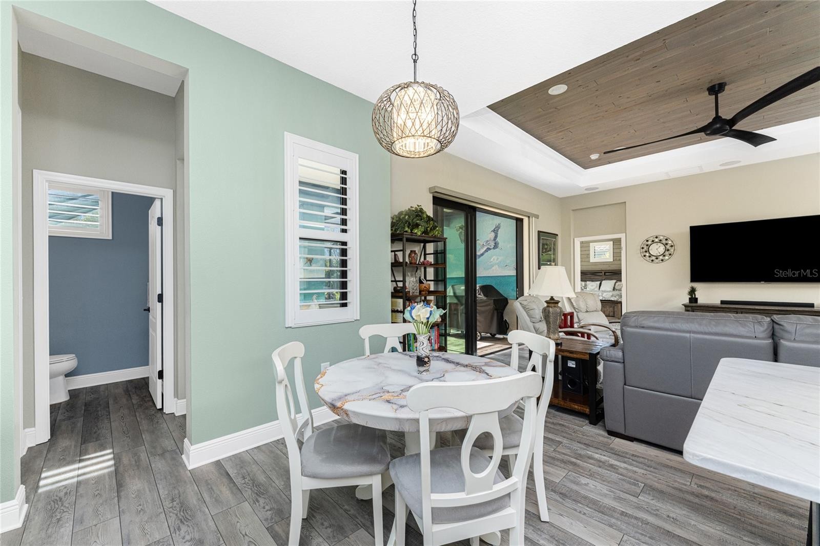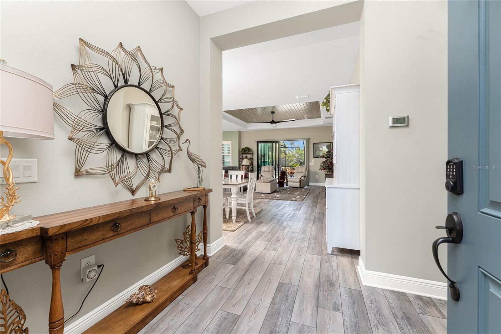 Nestled within the beautiful community of Boca Royale, this exceptional Eventide 4 floor plan offers an ideal blend of privacy, comfort, and refined coastal living. The home features two bedrooms, two full bathrooms, a convenient half pool bath, and a versatile office with French doors that can easily serve as a third bedroom. At the heart of the home, the gourmet kitchen is designed to impress, showcasing quartzite stone countertops, soft-close cabinetry and drawers, upgraded drawer brackets to accommodate up to 75 pounds, a natural gas range, stainless steel appliances, and an oversized island that opens seamlessly to the dining and great rooms—perfect for both everyday living and entertaining. Three-panel sliding glass doors lead to an expansive outdoor living area designed for year-round enjoyment. The lanai features decorative, sealed pavers, a covered patio with ceiling fans and lighting, a natural gas hookup for grilling, and a stunning heated saltwater pool complete with a sun shelf and spa, all framed by a meticulously manicured tropical landscape. Convenient access to the pool bath is provided through a full-light door from the covered patio. Inside, the great room is highlighted by a coffered ceiling with elegant wood shiplap inlay, while upgraded luxury vinyl plank flooring flows throughout, enhancing the home’s clean, modern aesthetic. The primary suite is a serene retreat, accented by a natural wood plank feature wall, crown molding, and two walk-in closets with custom organizers. The spa-like en suite bathroom features dual sinks, quartz countertops, a glass-enclosed walk-in tiled shower, and a private water closet. The bright and airy guest bedroom is thoughtfully separated from the primary suite by the enclosed office, offering comfort and privacy for visitors, and is complemented by a stylish second full bath with a custom sliding glass door, gray vanity, and white quartz countertop. Additional highlights include hurricane-impact windows and doors, a Storm Smart roll-down shutter at the front entry, custom privacy shades in the primary, guest, and den, plantation shutters, front door retractable screen, recessed lighting, an expanded walk-in pantry, and a professionally installed epoxy-finished garage floor with a dedicated breaker for a refrigerator and an EV charger. Residents of Boca Royale enjoy an array of resort-style amenities, including pickleball, tennis, golf, a fitness center, and a resort pool, along with dining and social gatherings at the clubhouse, the 19th Hole, and the Fairway Dining Room overlooking the practice green and driving range. Just minutes away, Manasota Key offers three public beaches with pristine Gulf waters, along with world-class fishing and boating. This is your opportunity to experience the very best of Florida’s Gulf Coast lifestyle.